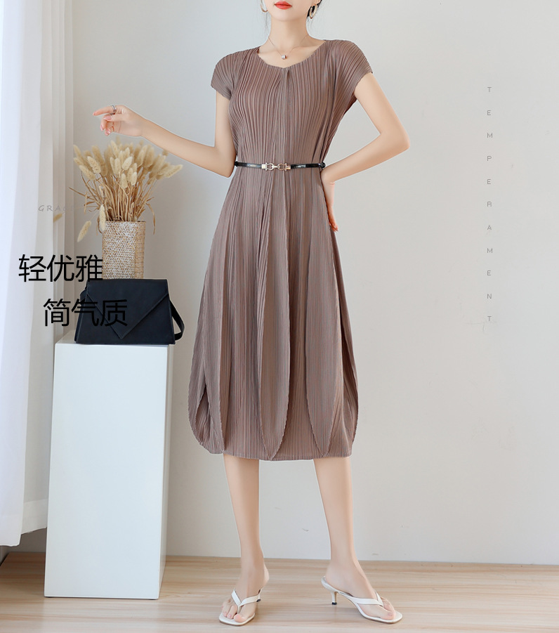 褶皱连衣裙是经久不衰的流行款式,显瘦视觉感十足,层次错落有致,特别显时髦感,不管是胸前还是腰部的褶皱感,特别显显淑女气质
