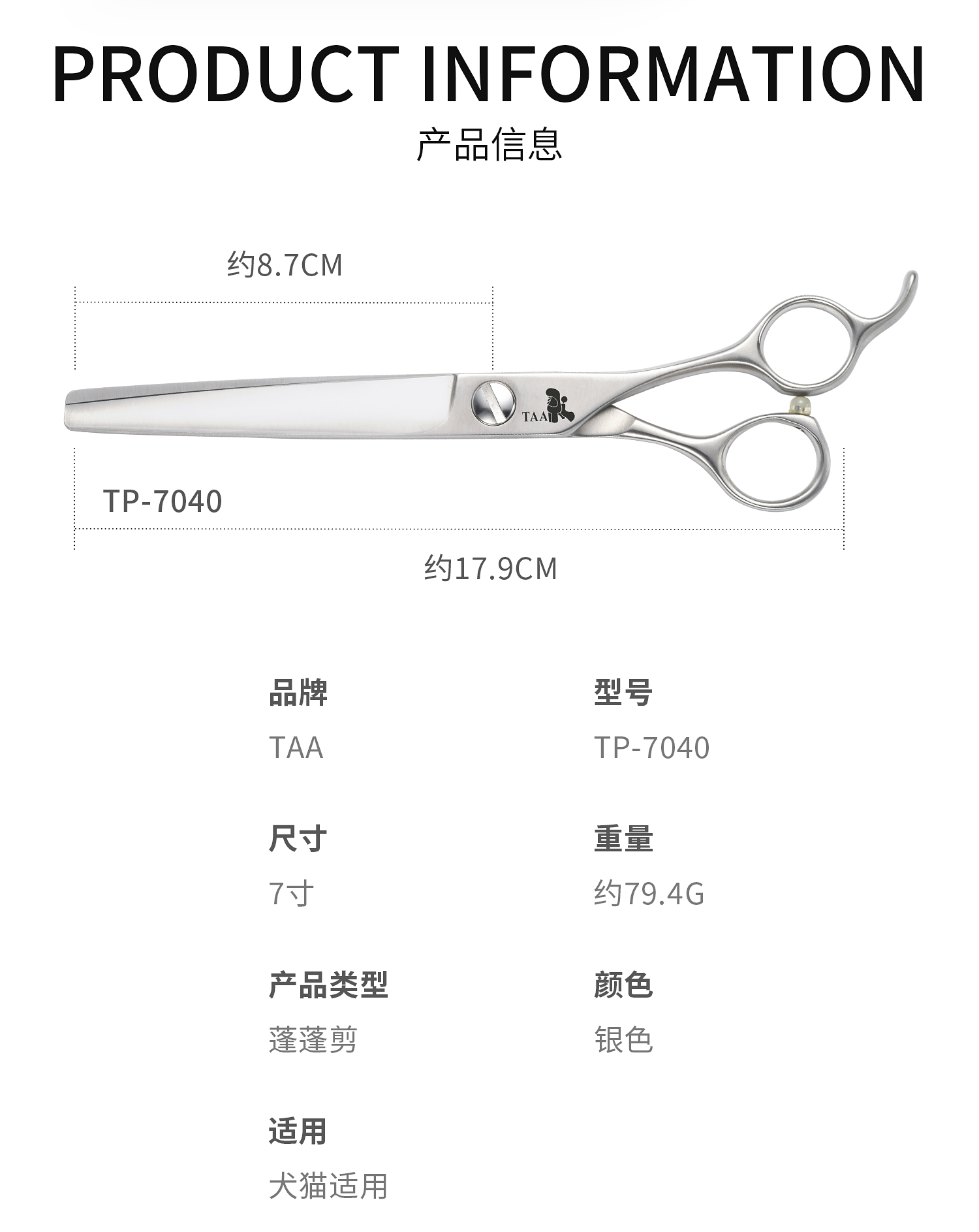 TAA它它宠物美容7寸蓬蓬剪TP-7040狗猫泰迪精修蓬松