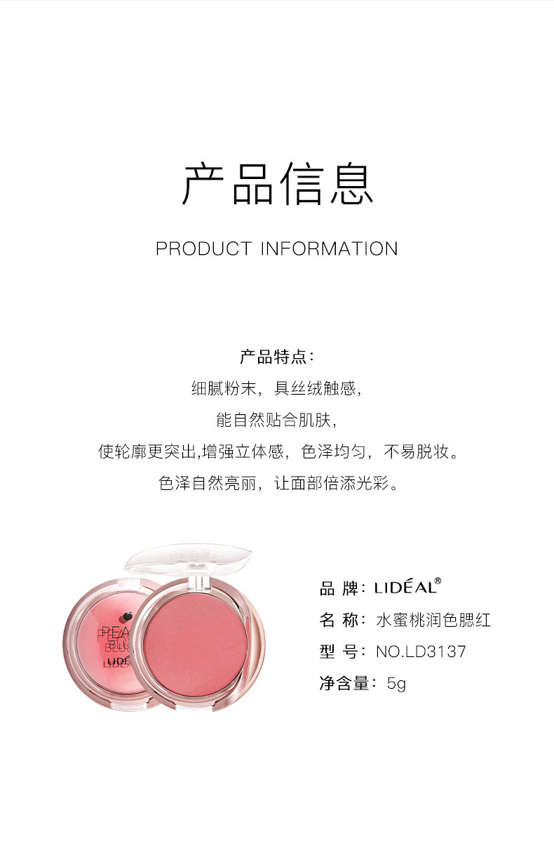 【好货上线!买1送1】灵点水蜜桃润色腮红,带你穿越时光,拥有完美的修容效果,女性般绒滑的触感,均匀自然亮丽出街不脱妆