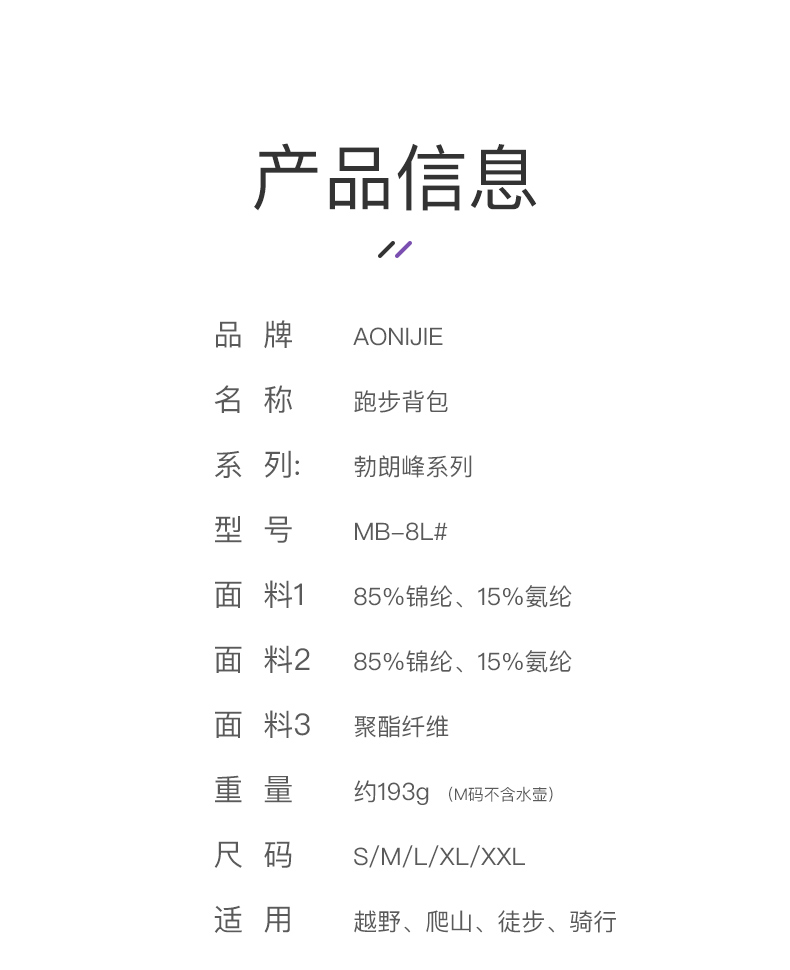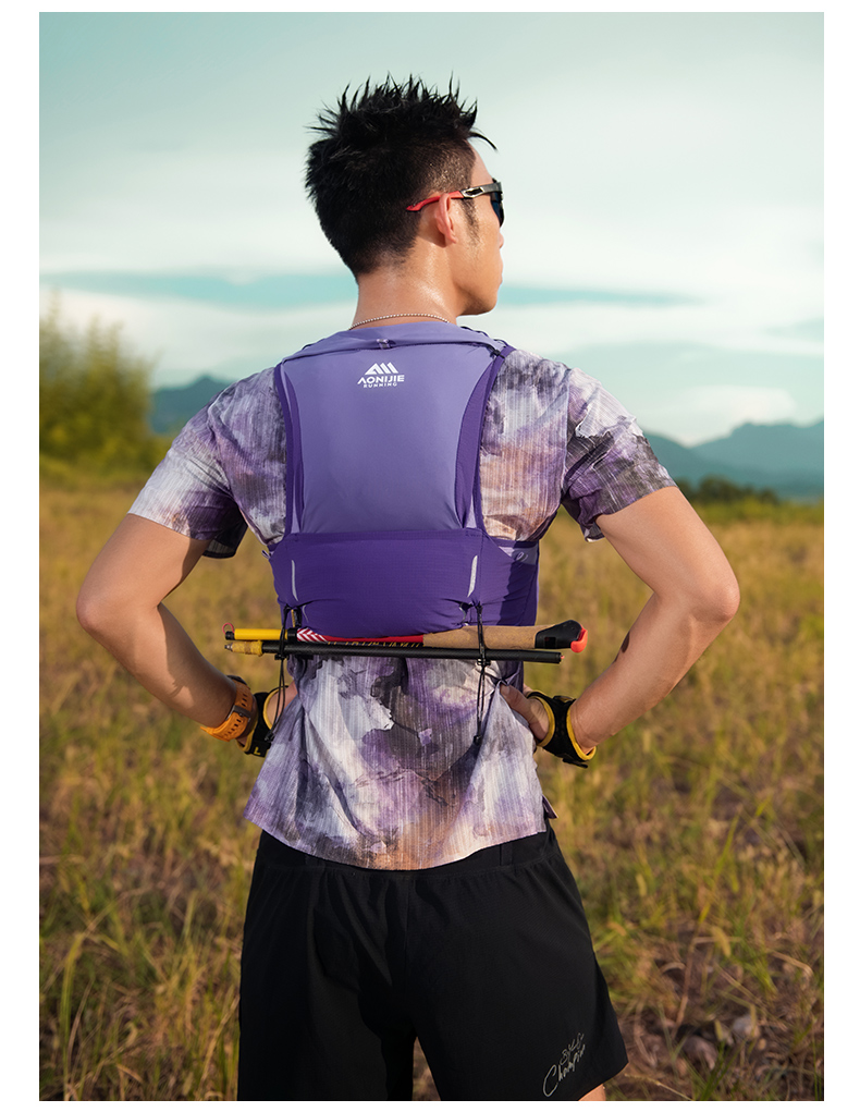 奥尼捷勃朗峰系列越野背包透气舒适轻量化水壶包中长距离越野包骑行包8L(含2个500ml软水壶)