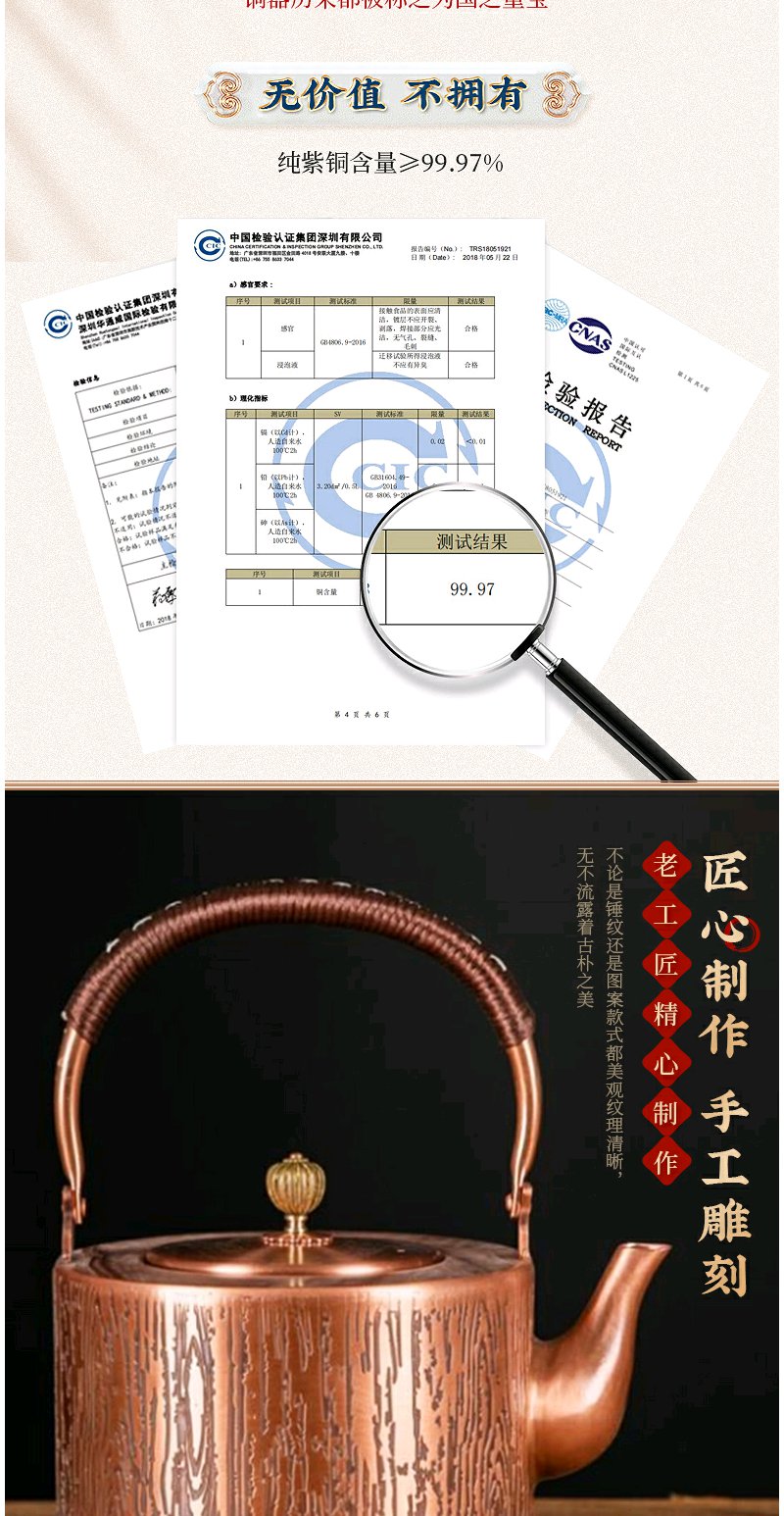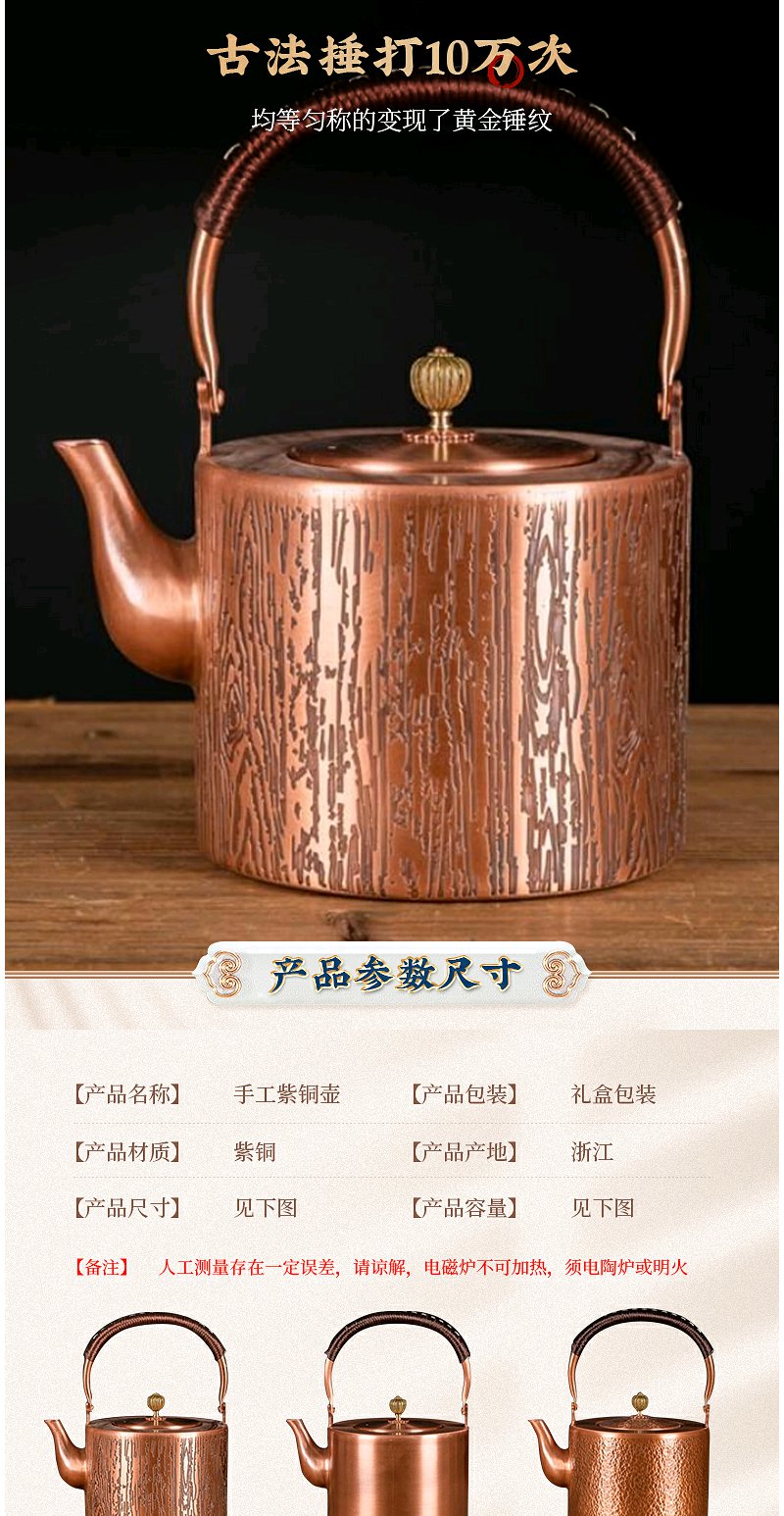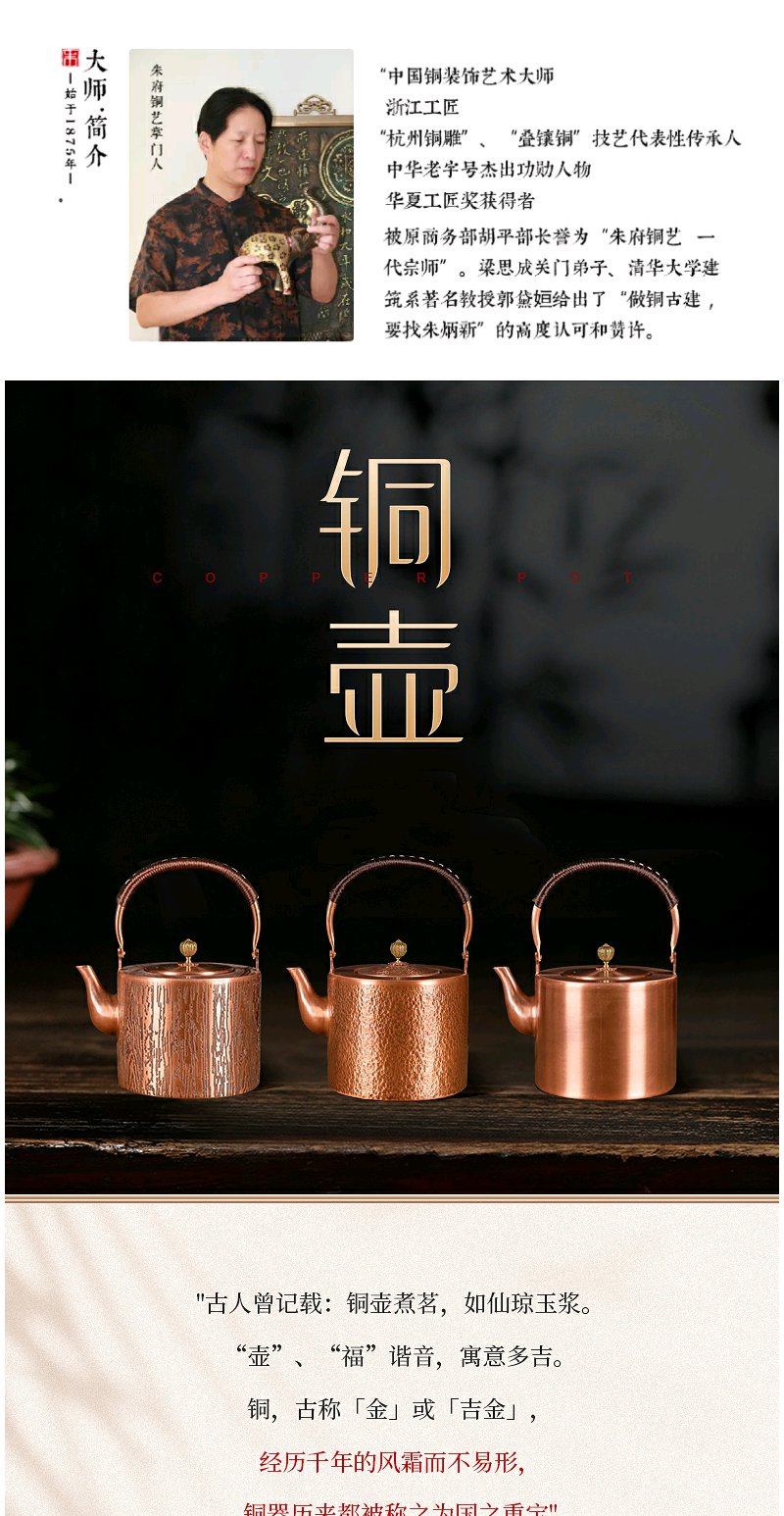 朱府铜艺紫铜壶大容量烧水壶沏茶壶手工养生电陶炉家用茶具煮茶壶