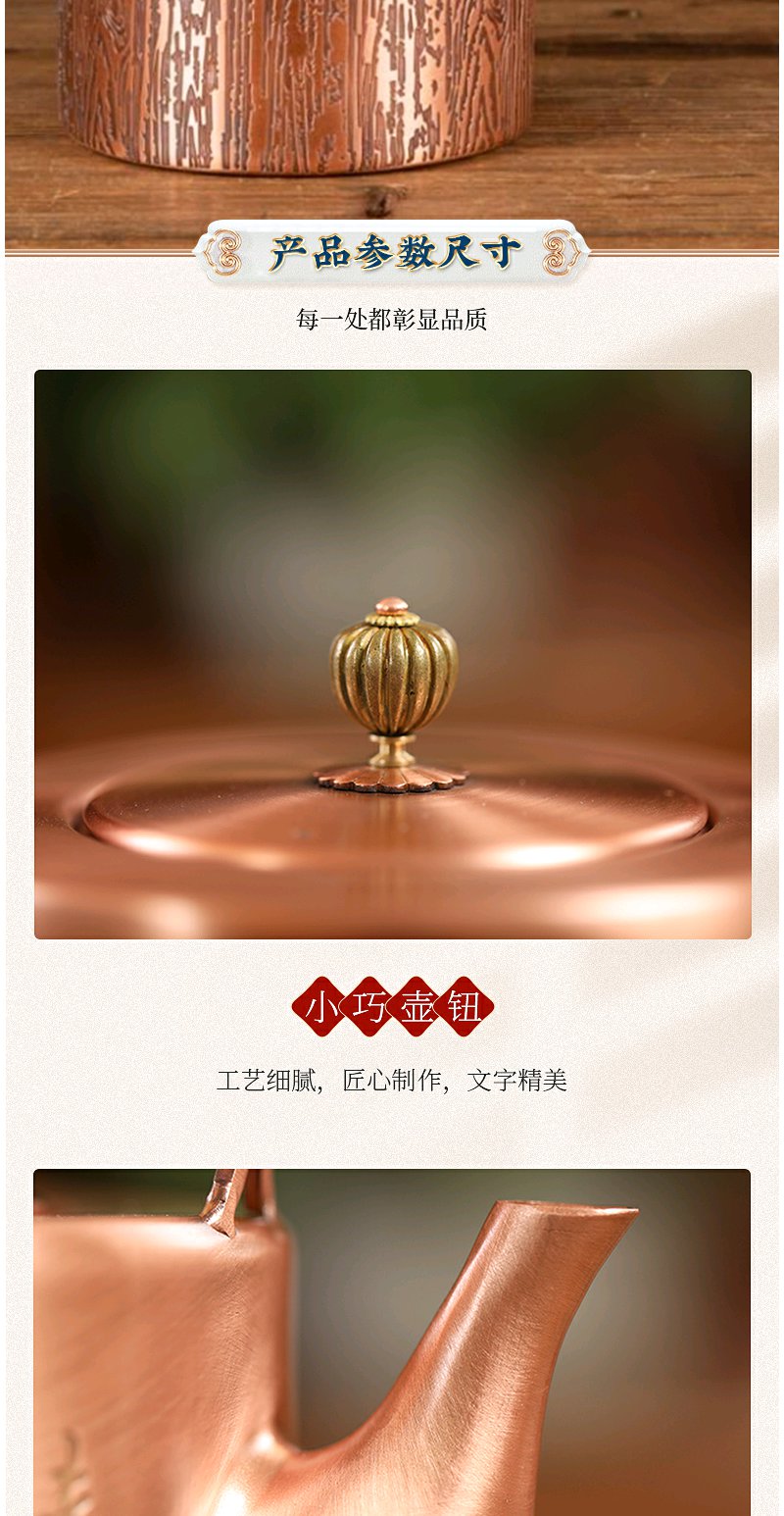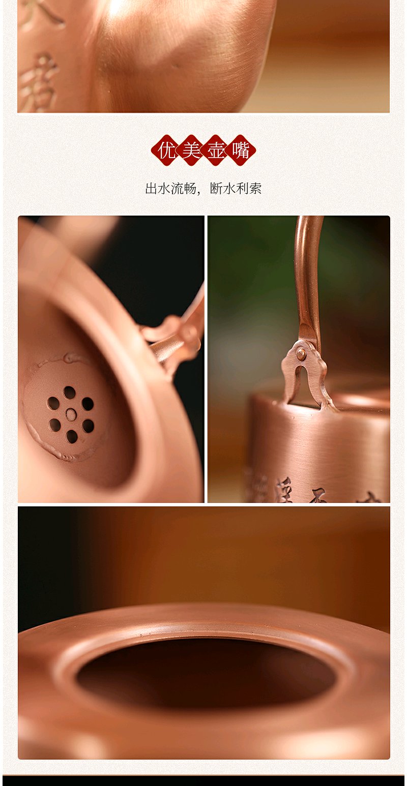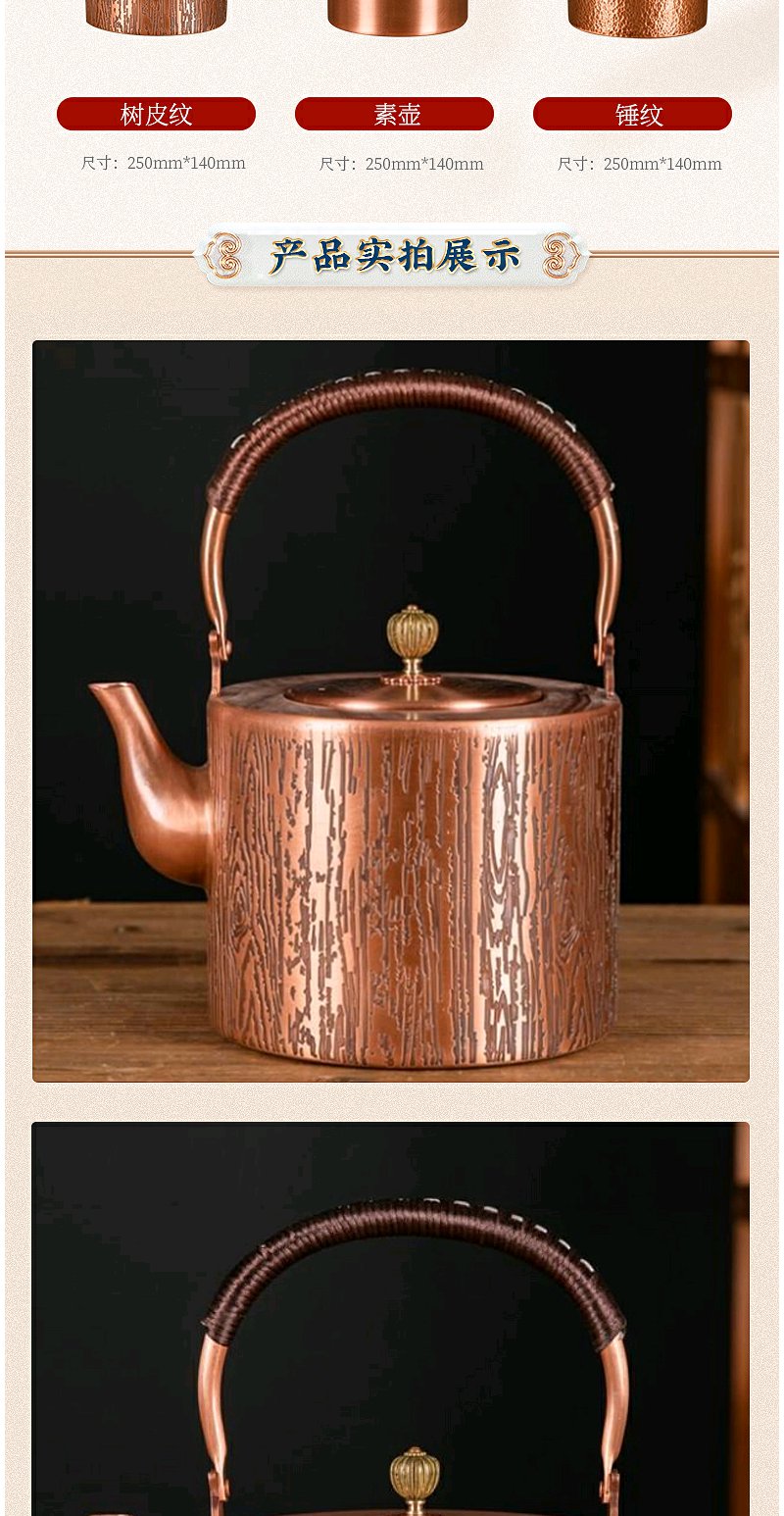 朱府铜艺紫铜壶大容量烧水壶沏茶壶手工养生电陶炉家用茶具煮茶壶