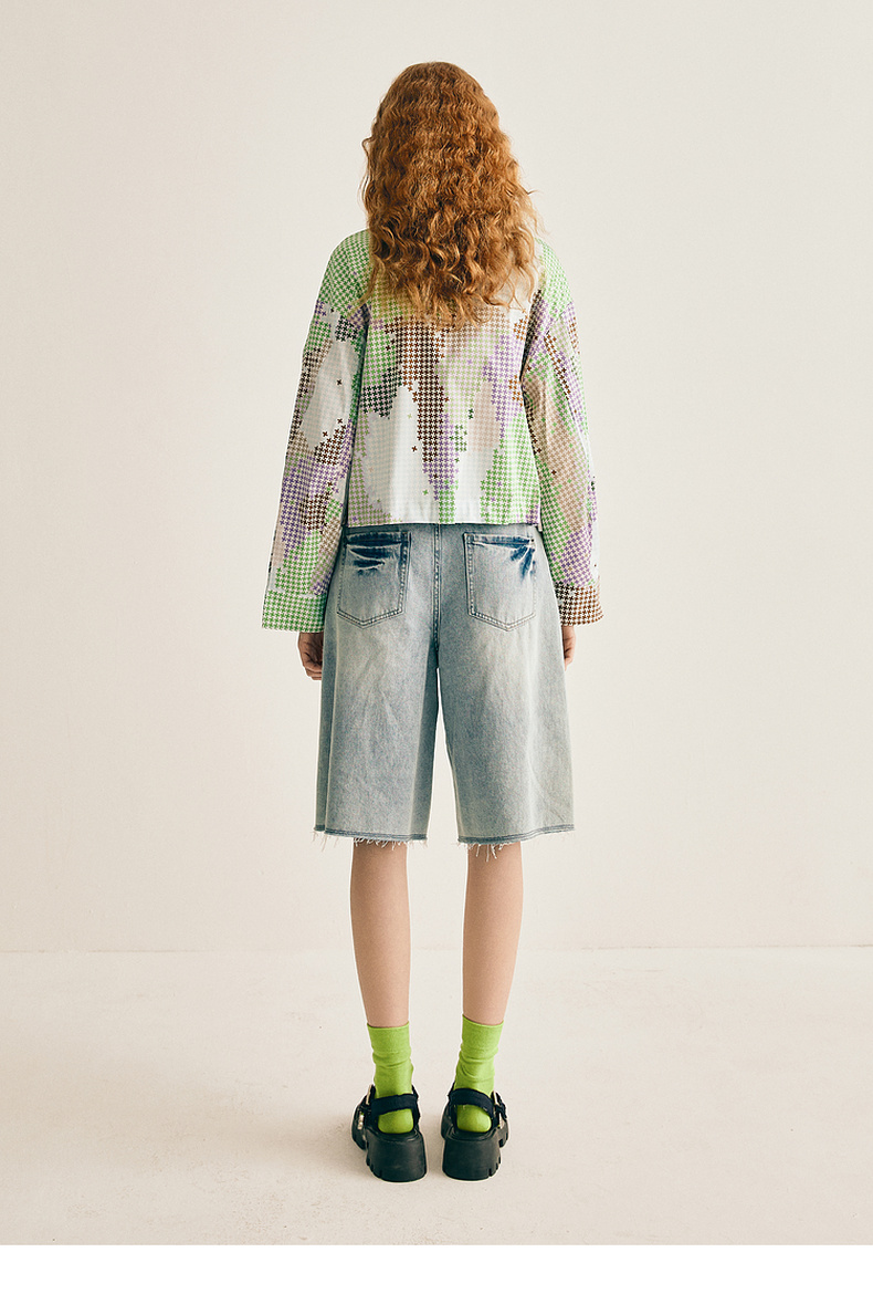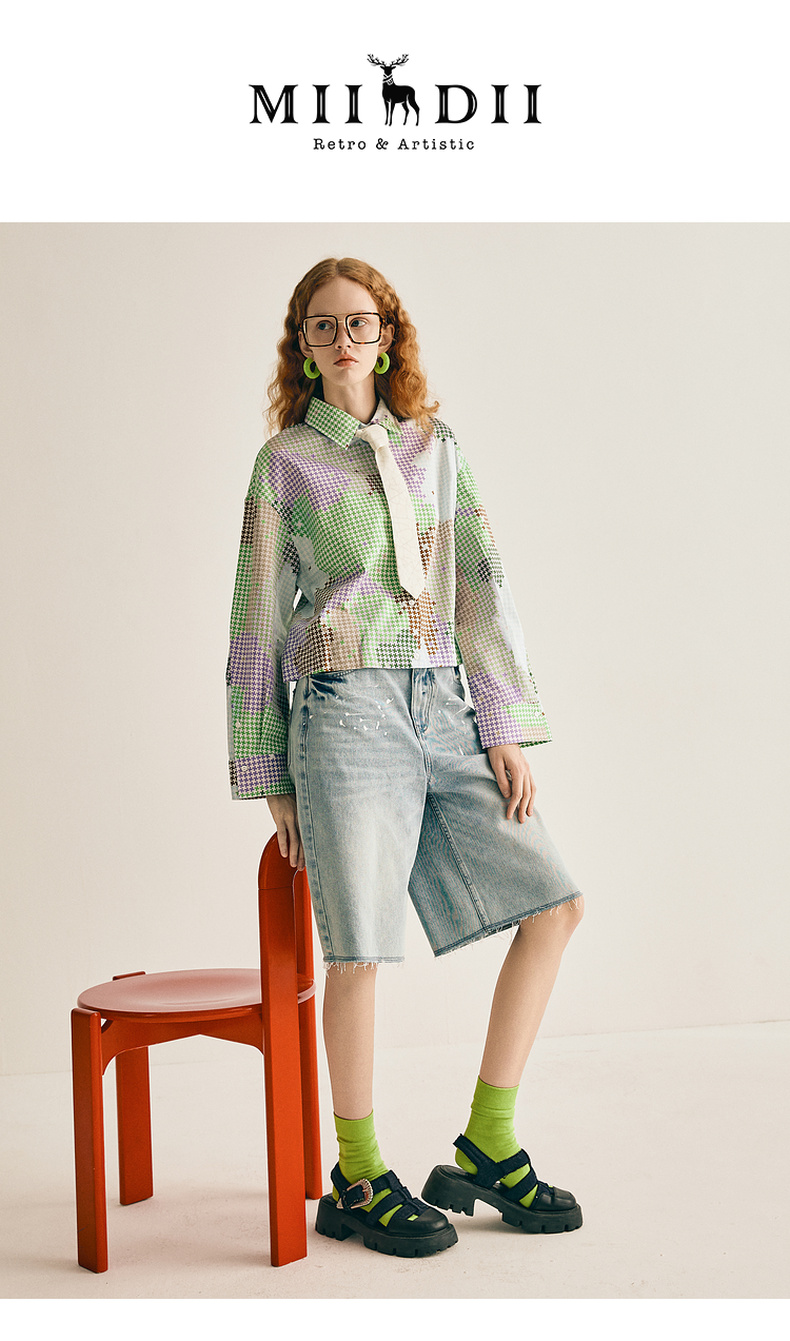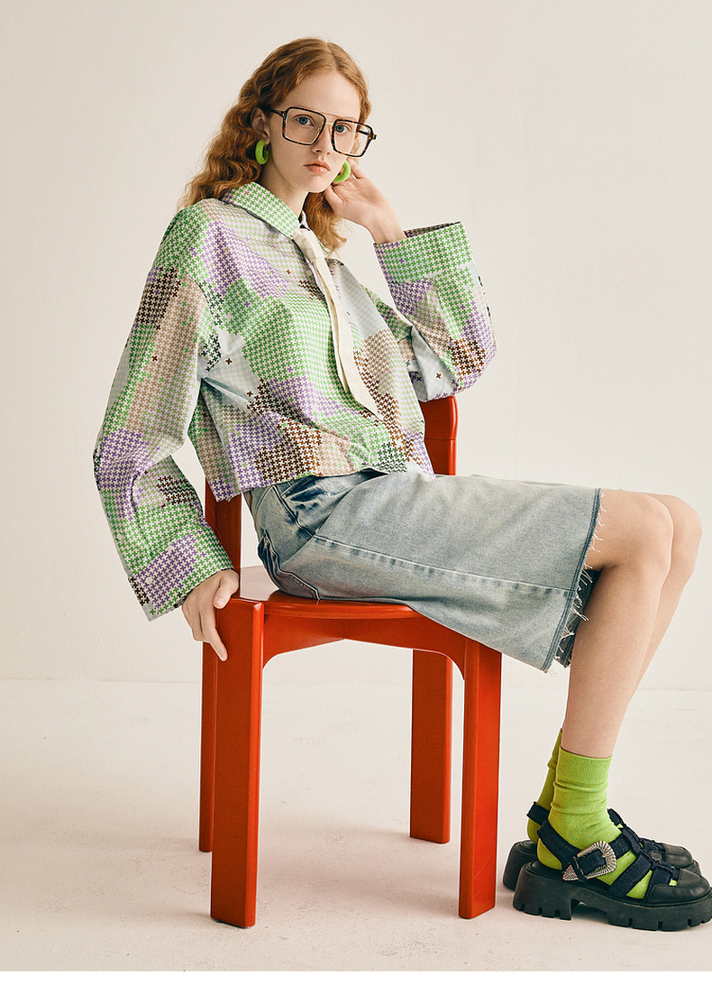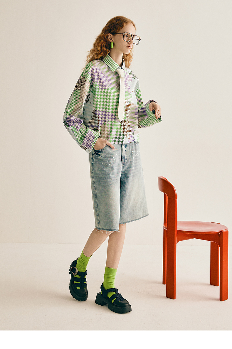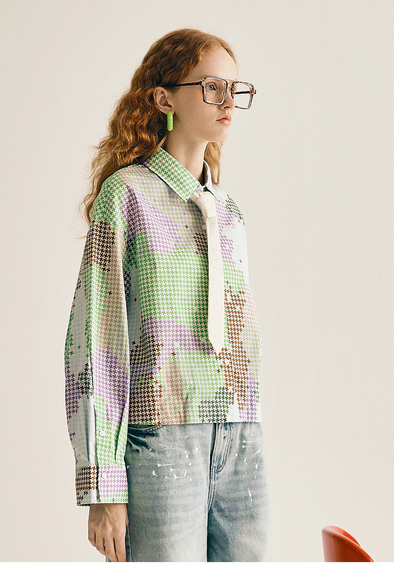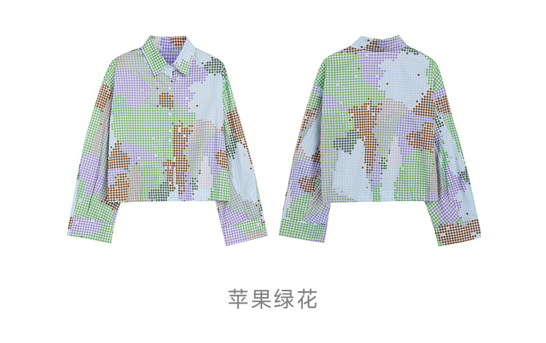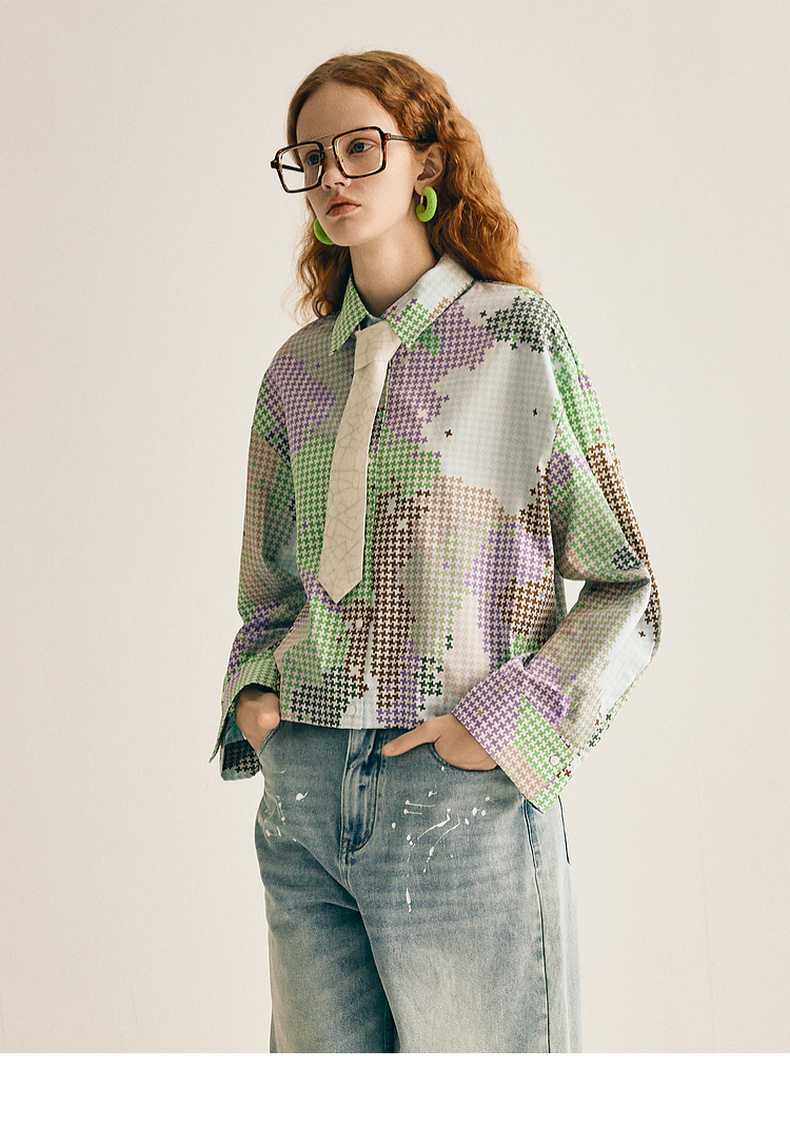 谜底印花衬衫长袖女2025春季新款复古风花色短款棉衬衣255MC6025