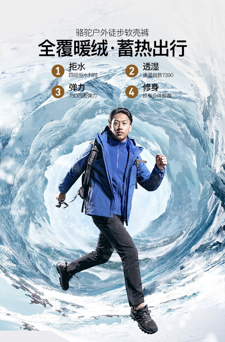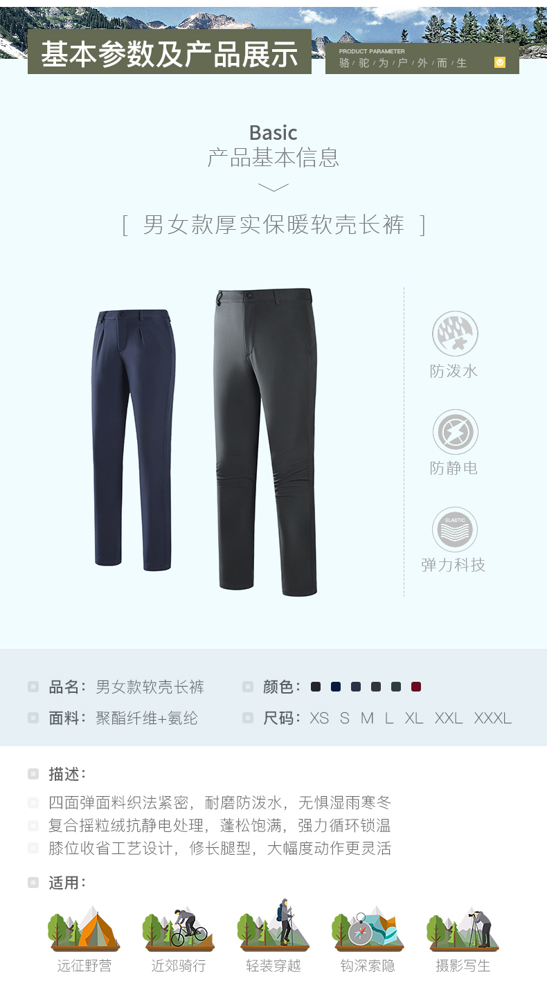骆驼户外软壳裤男年秋季新款保暖加绒长裤女防风防泼水登山裤A1W1VV126_A1W2VV125_A0W131146