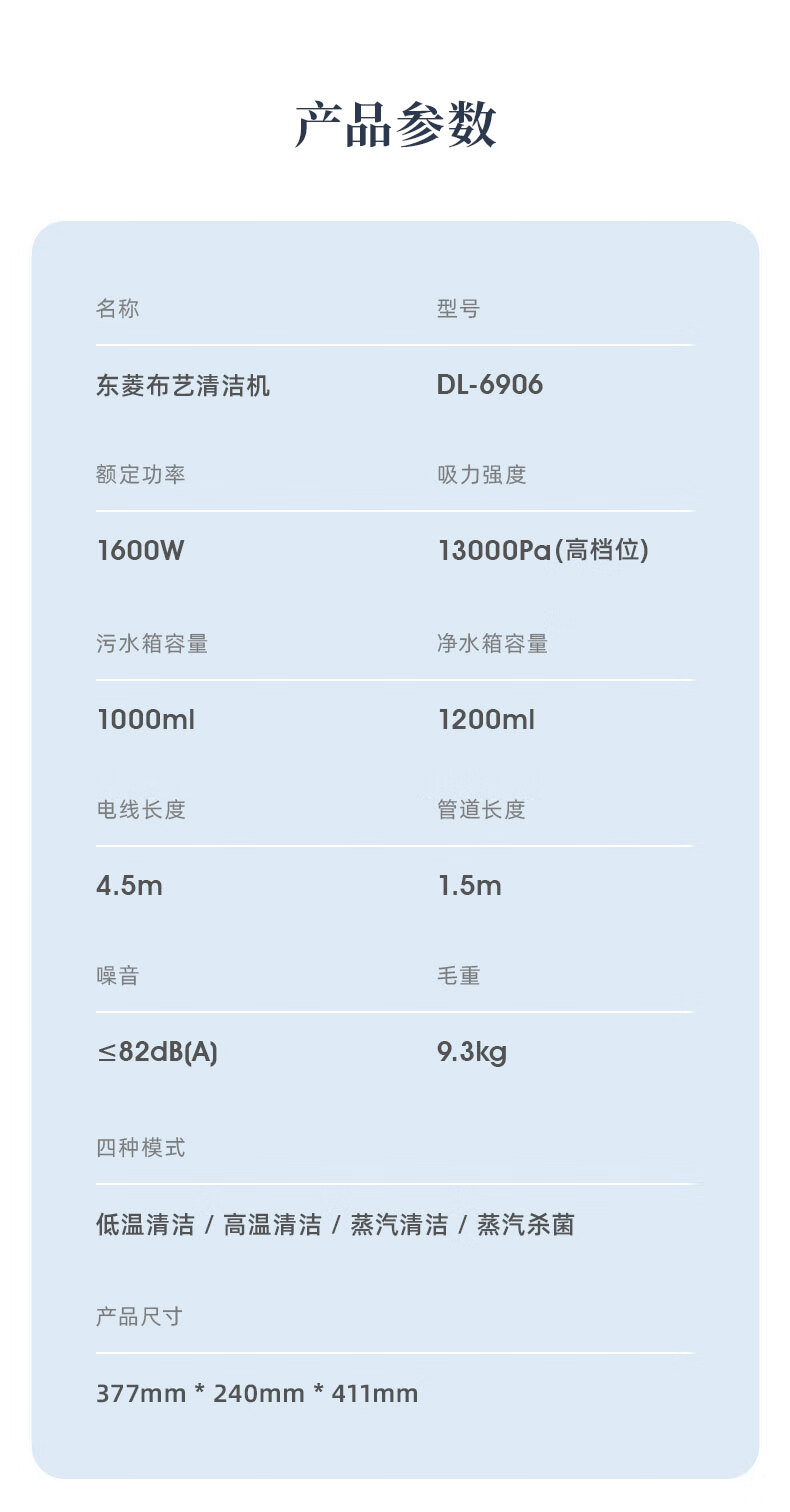 【小家电】东菱(Donlim)布艺清洗机 多功能清洁机 家用洗地毯机 高温蒸汽除螨清洁机 地毯床垫窗帘汽车清洁神器DL-6906 HF