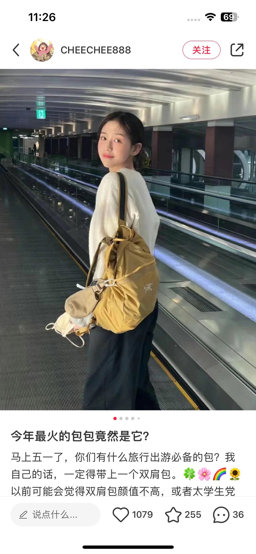 自身材质非常轻的一款户外包,装得下笔记本以及种种出门必备盛搭配运动装、日常look都不违和,韩国博主挖掘单品的能力真的respect!