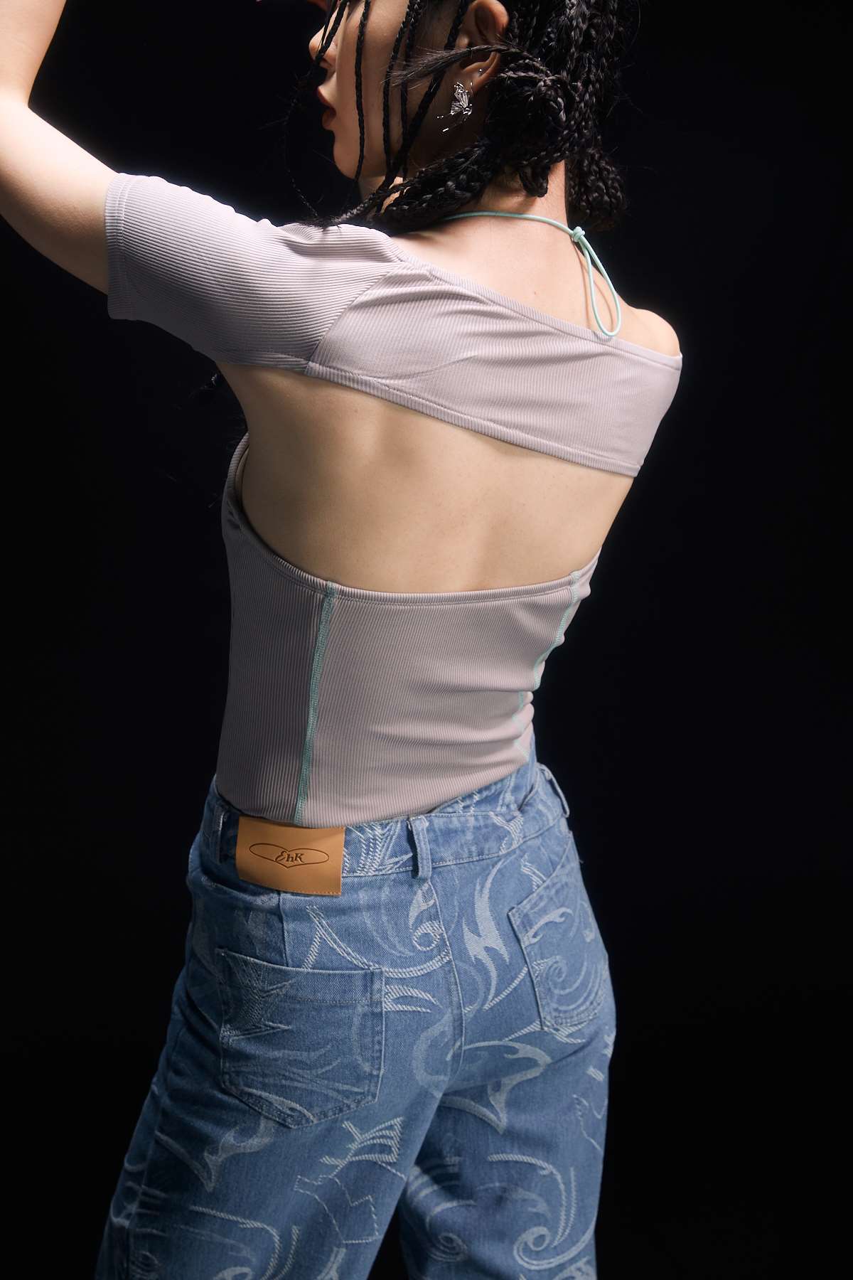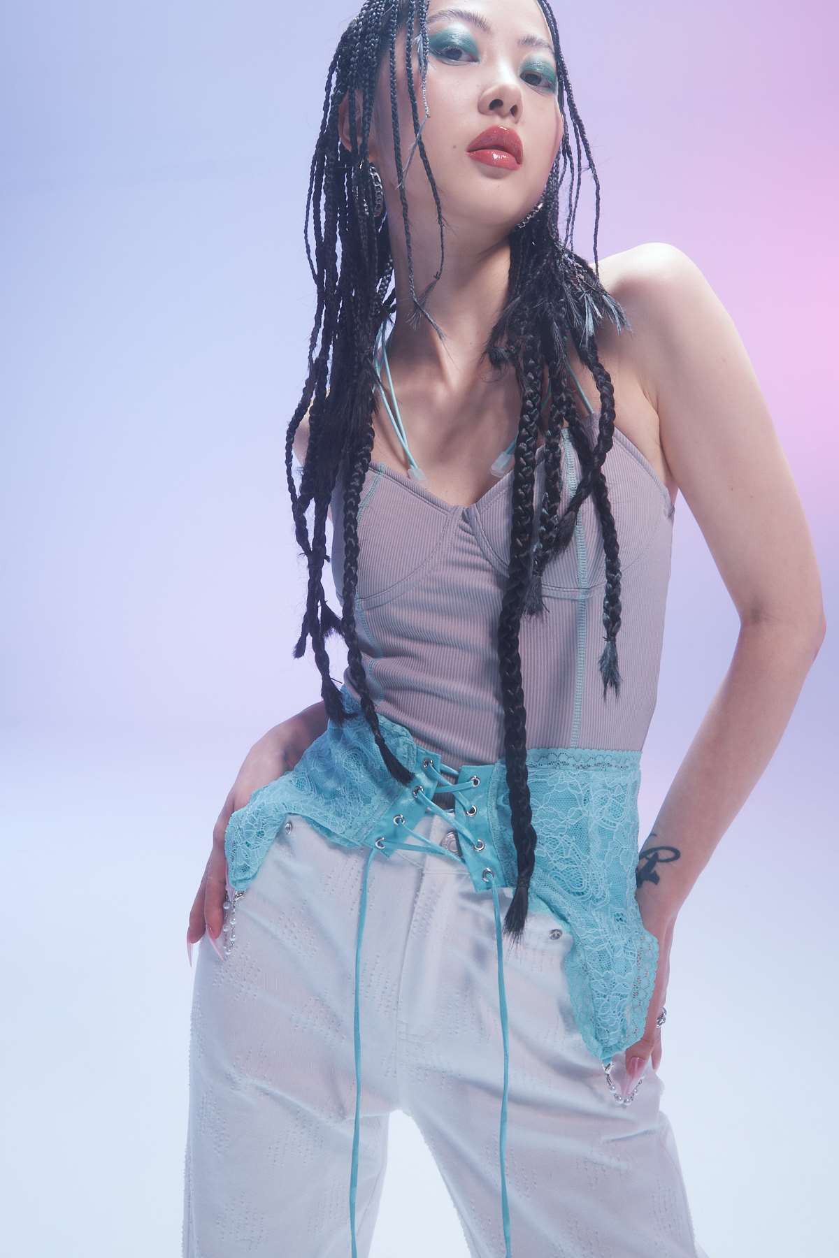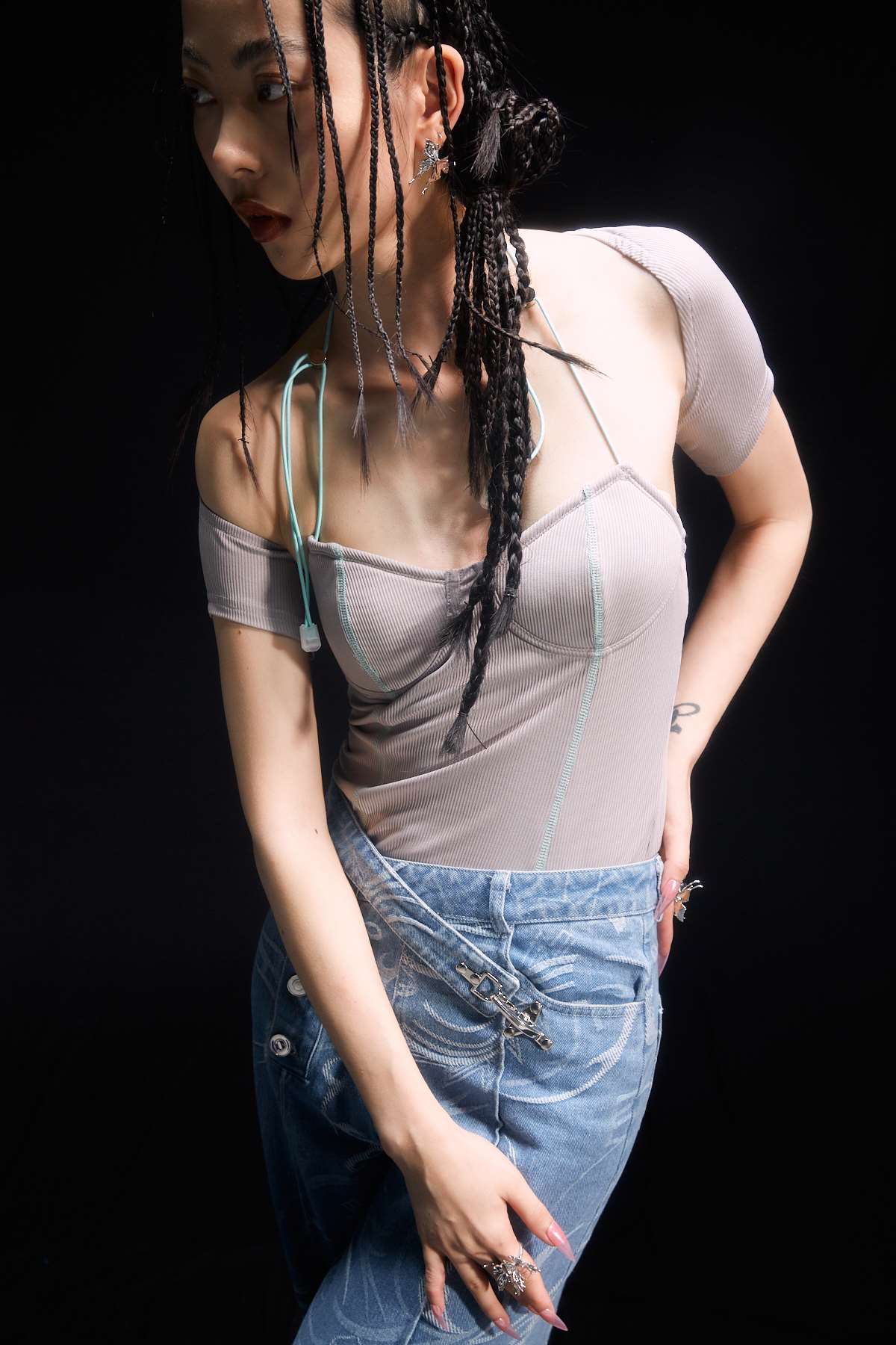 EhK 双色弹力连体衣 背心吊带上衣 配送坎肩 两穿