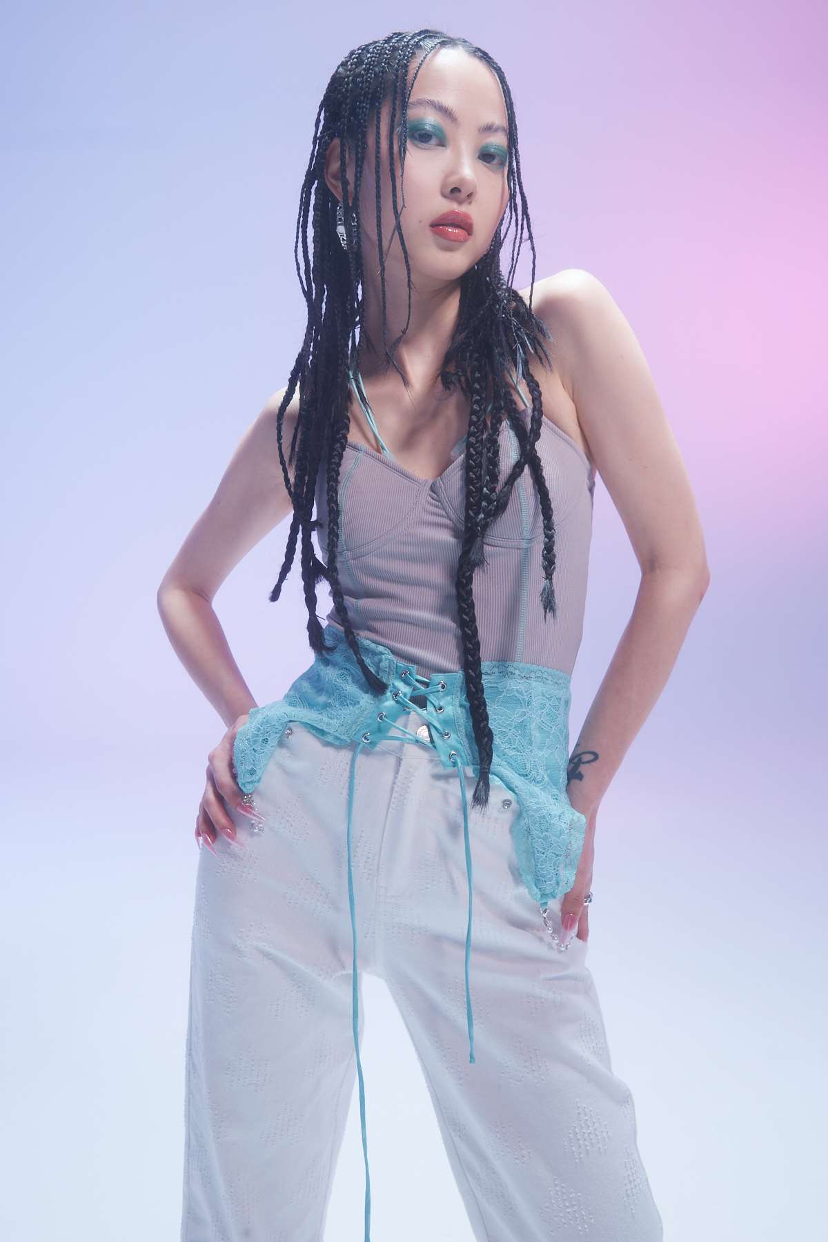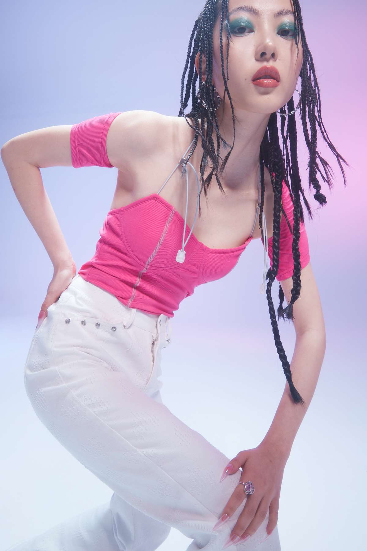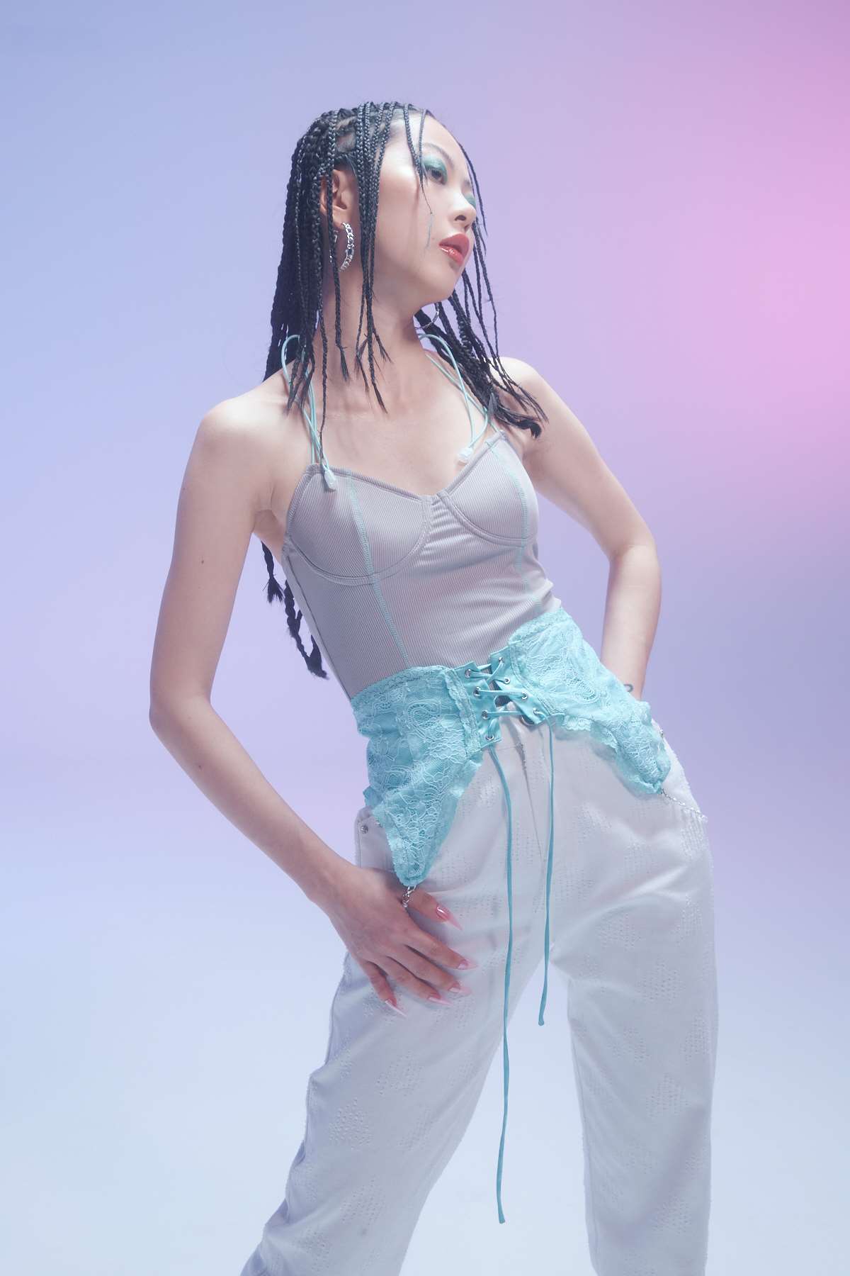 EhK 双色弹力连体衣 背心吊带上衣 配送坎肩 两穿