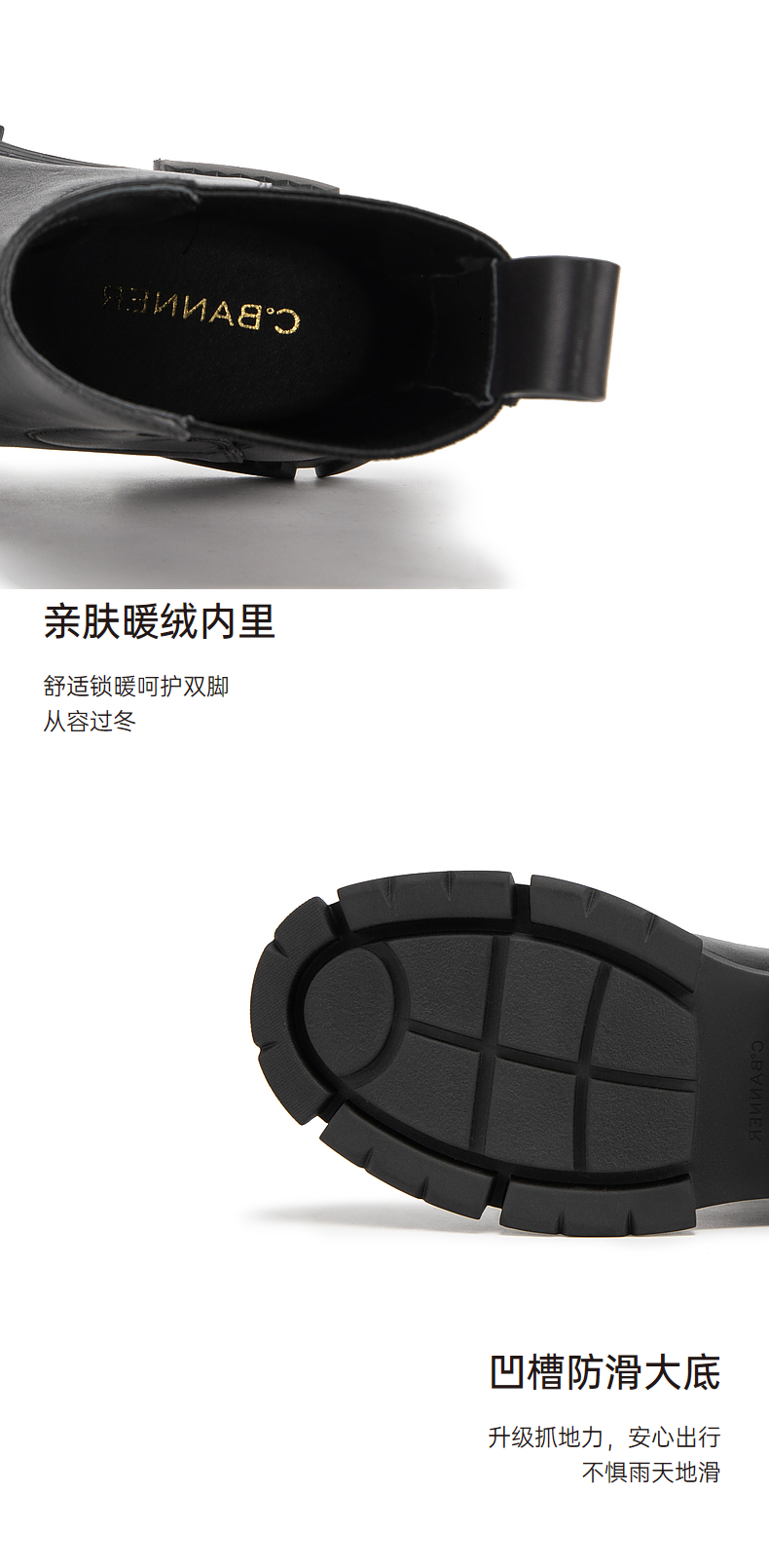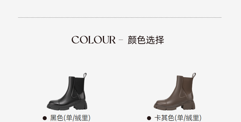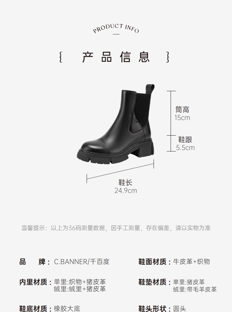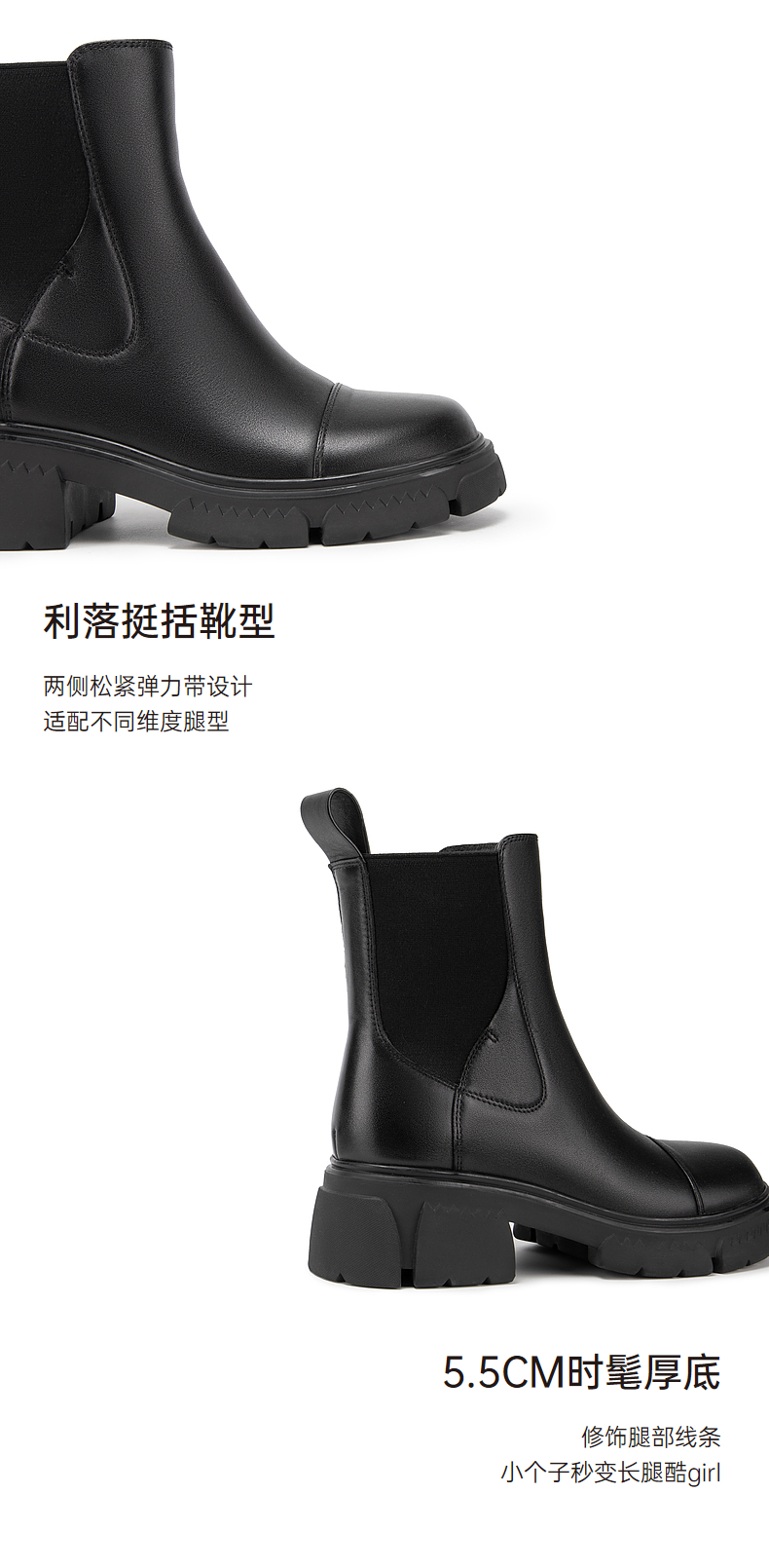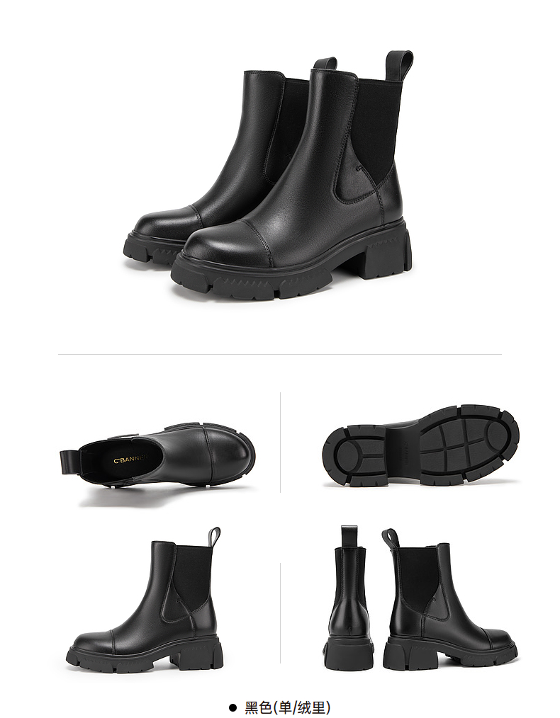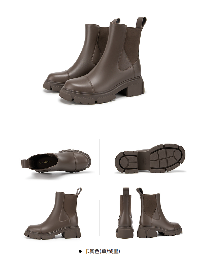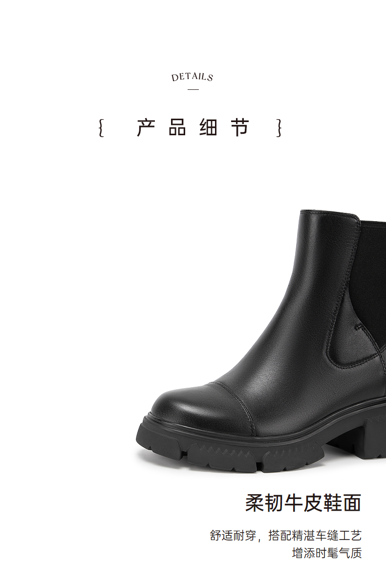 千百度真皮切尔西靴秋冬厚底增高烟筒靴短靴女A23539055