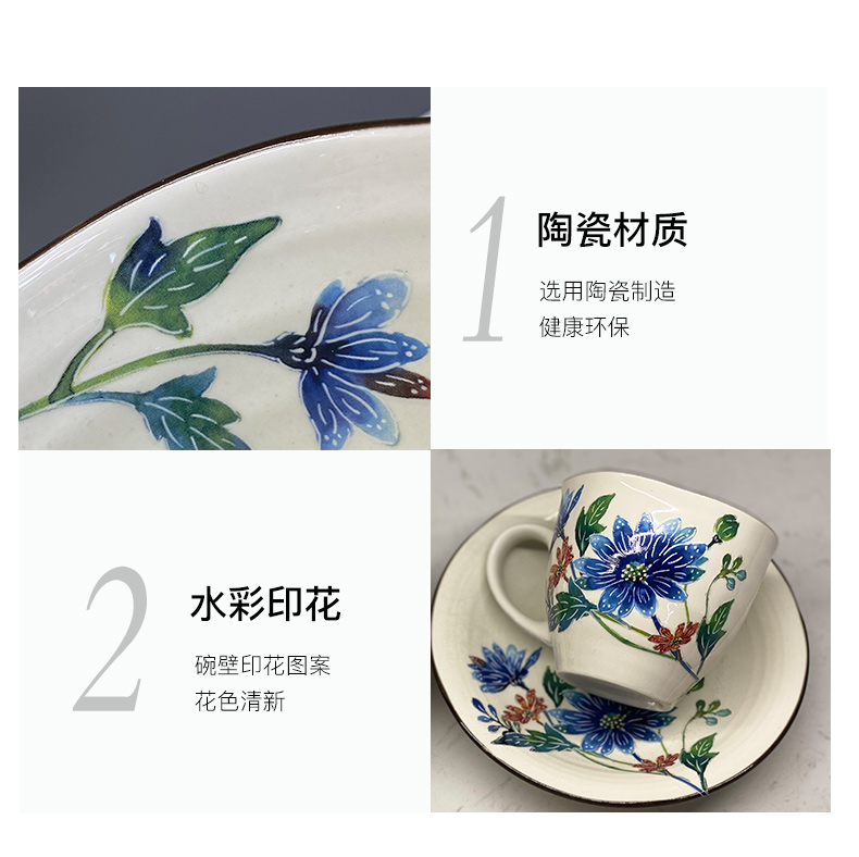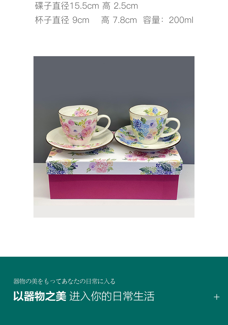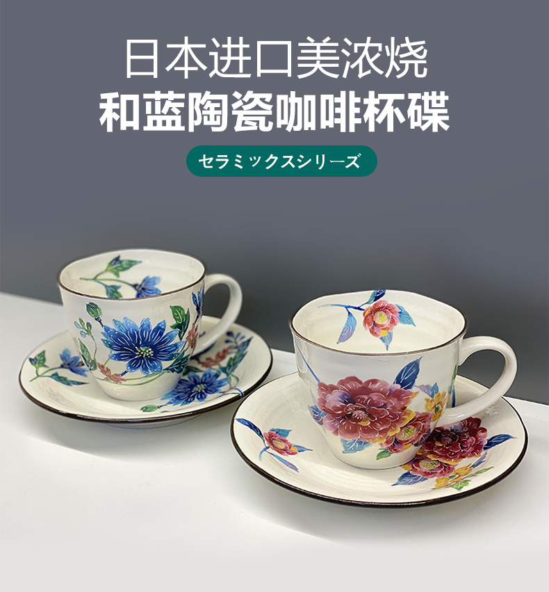日本和蓝花衣咖啡杯碟套装-两杯两碟