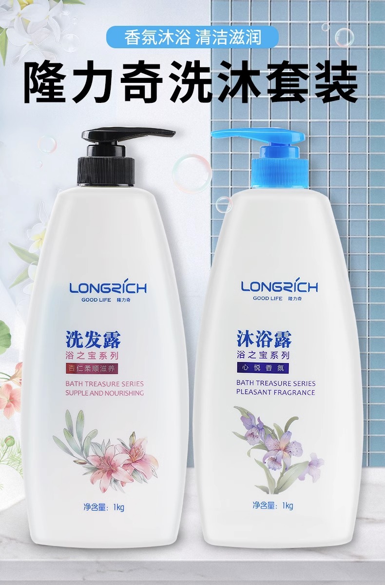 隆力奇洗发水沐浴露大瓶装酒店宾馆民宿浴场家用洗头膏液二合一1L