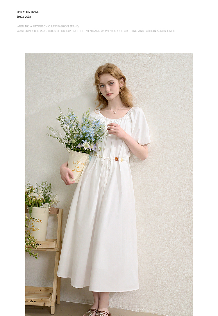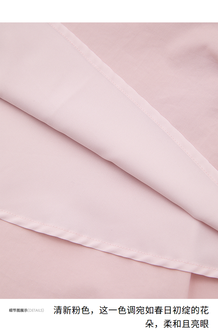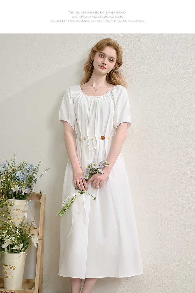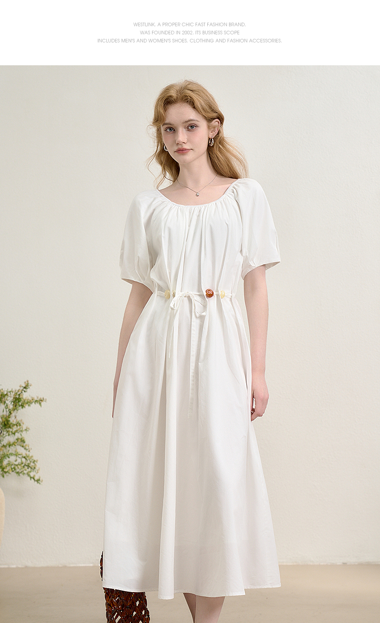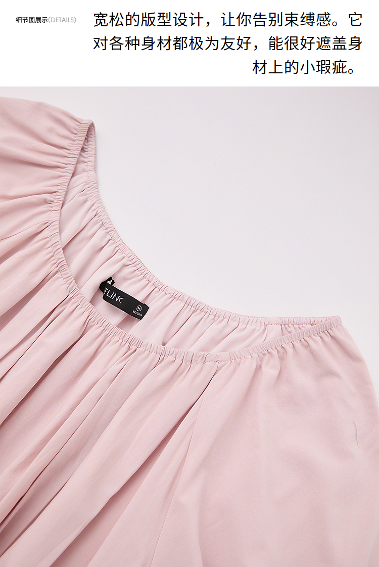 桃花拂面温柔气质泡泡袖连衣裙女春夏彩色串珠收腰长裙V0850570