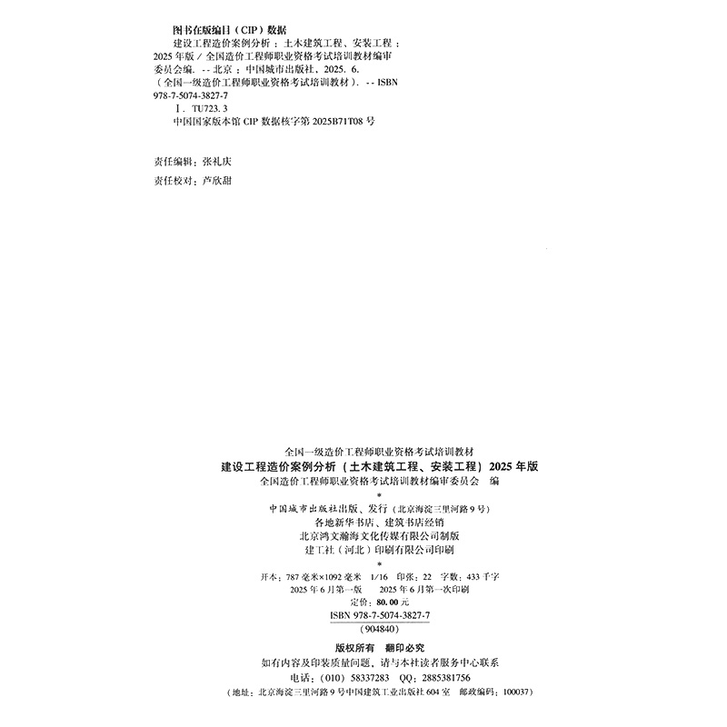 书名:建设工程造价案例分析(土木建筑工程、安装工程)--2025年全国一级造价工程师教材 城市社