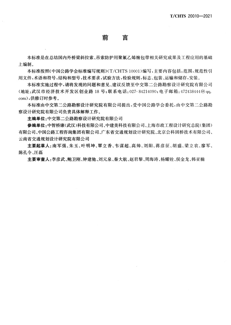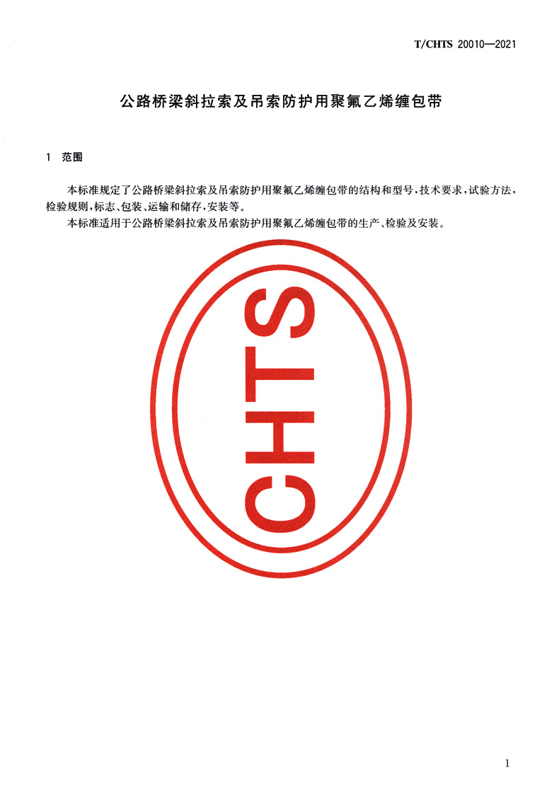 书名:公路桥梁斜拉索及吊索防护用聚氟乙烯缠包带(T/CHTS 20010—2021)