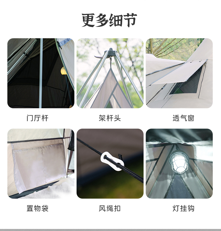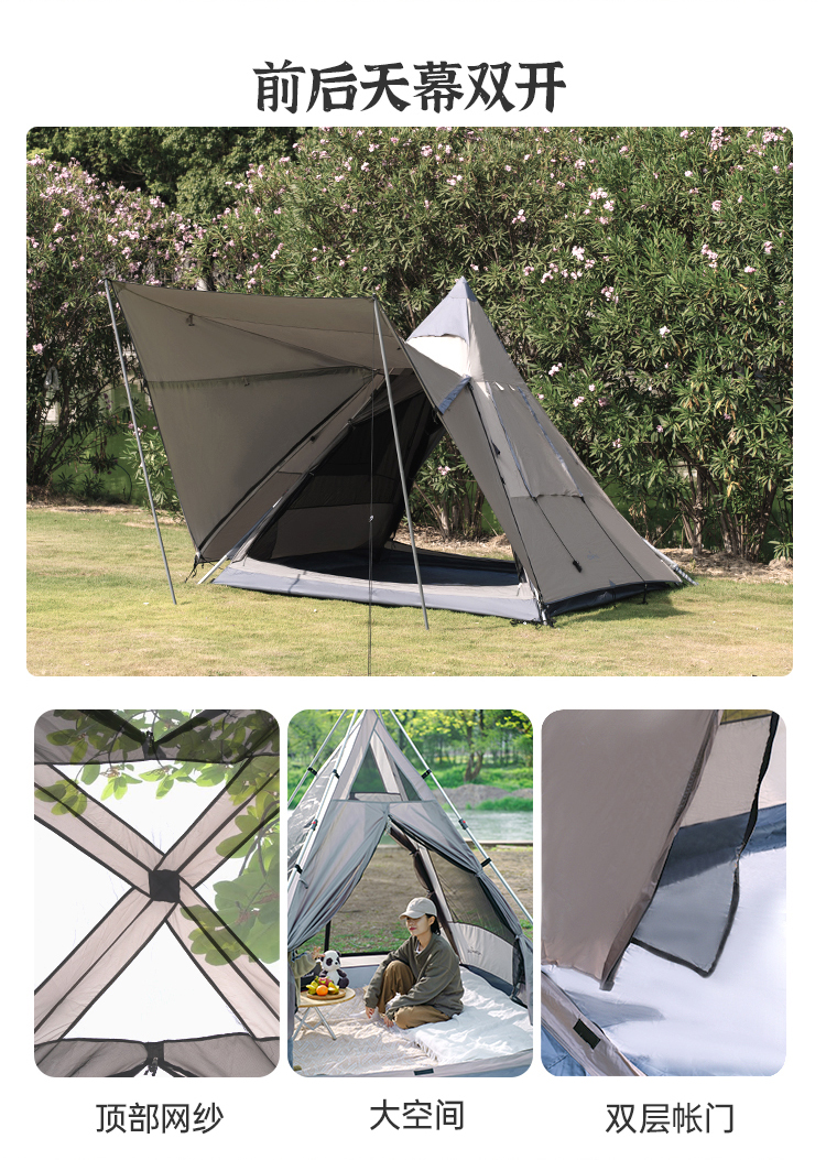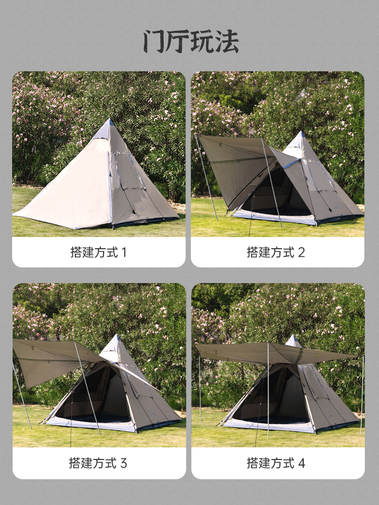 芊陌鸟户外-皓风尖塔帐篷Z01021 卡其色(245*245*215cm)