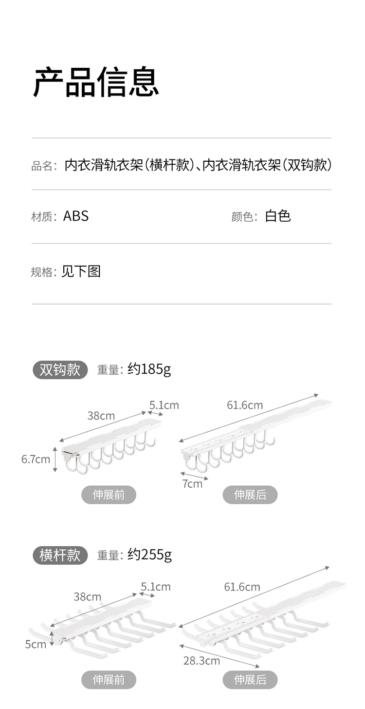 FaSoLa伸缩衣架衣柜挂内衣吊带挂架滑轨文胸背心胸罩内裤收纳抽拉裤架