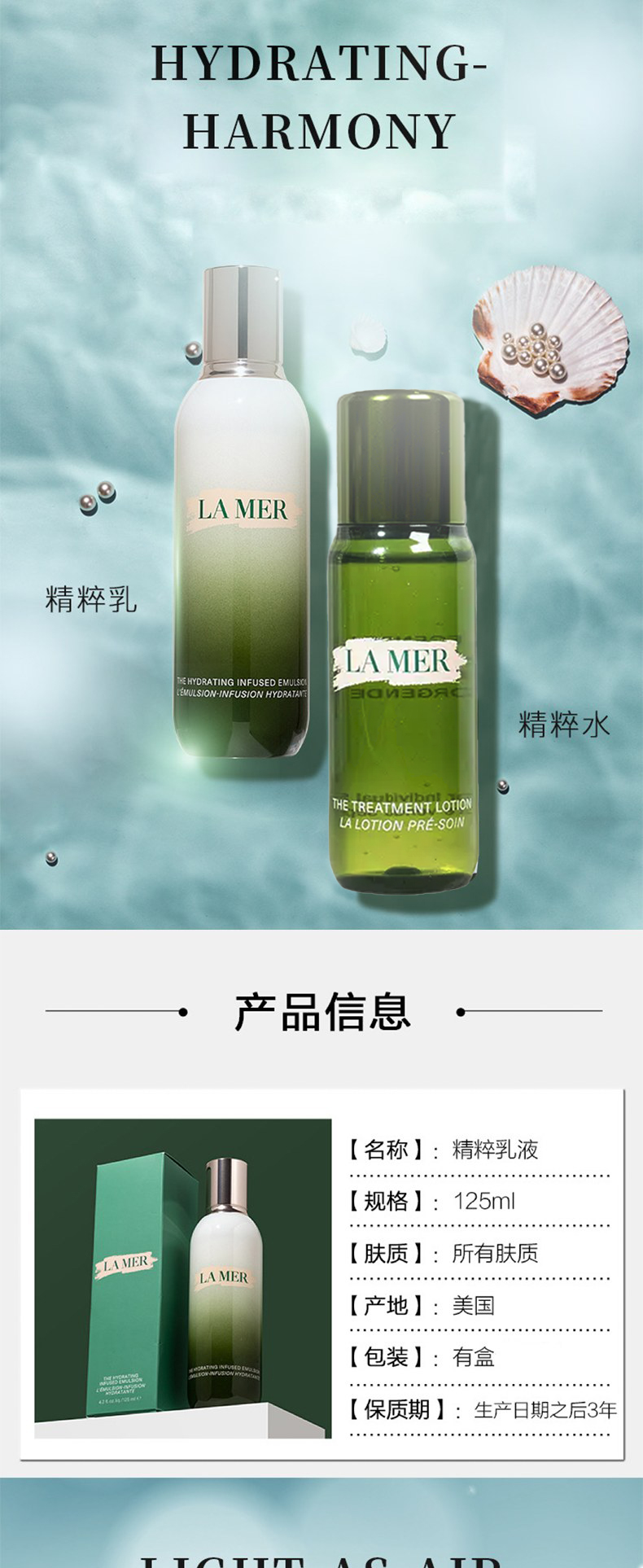 商品信息 —— I N F O R M A T I O N —— 购买须知: 【品牌】:LAMER/海蓝之谜【商品名称】:海蓝之谜精粹乳正装125ml加赠精粹水小样30ml*5瓶 【规格】:精粹乳125ml*1瓶+精粹水30ml*5瓶 【产品原产国】: 【保质期】:3年 【批号/限用日期】: 【包装方式】:盒装(配礼袋) 【快递】:韵达快递 【发货地】:广东 【运费模板】:包邮新疆西藏+20元 【发货时效】:72小时 【售后标准】:支持七天无理由退换(未拆封且配件齐全,不影响二次销售);质量问题,我司承担退换运费;非质量问题,客户承担退换运费。 【注意事项】:使用后盖好盖子,请置于婴幼儿触及不到之处,请勿于极高温度、极低温度下或日光直射处存放。 |