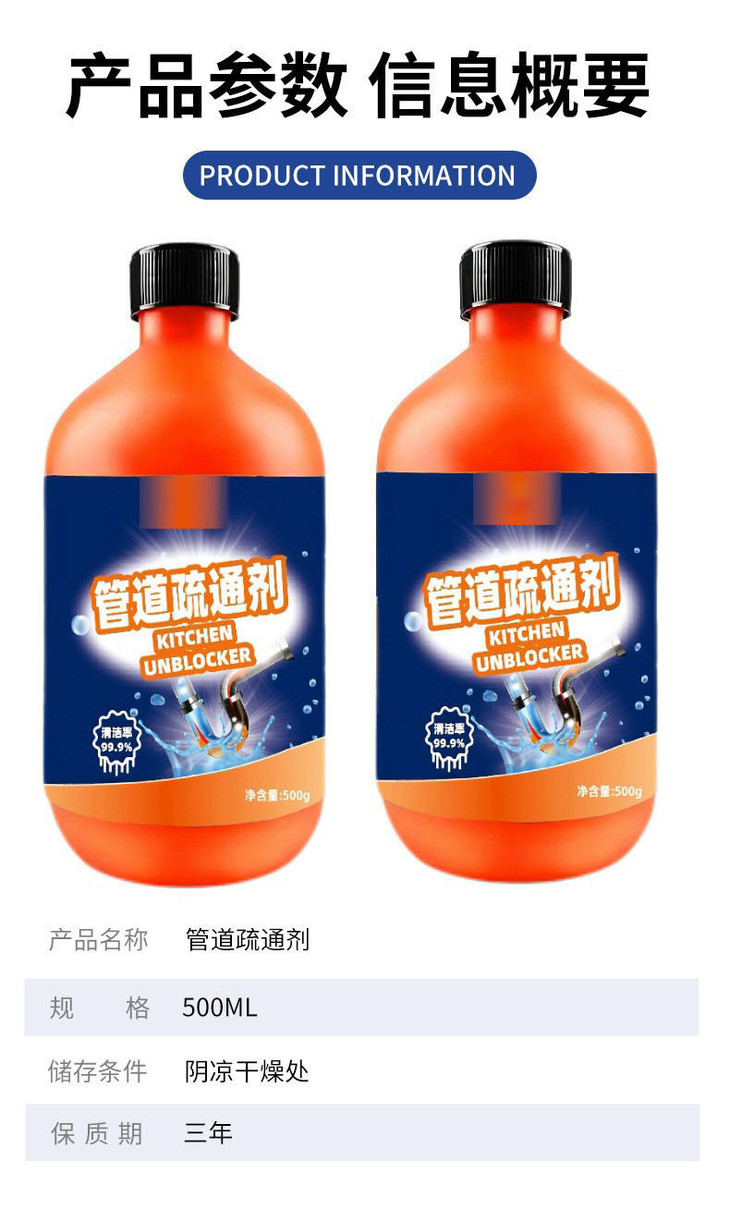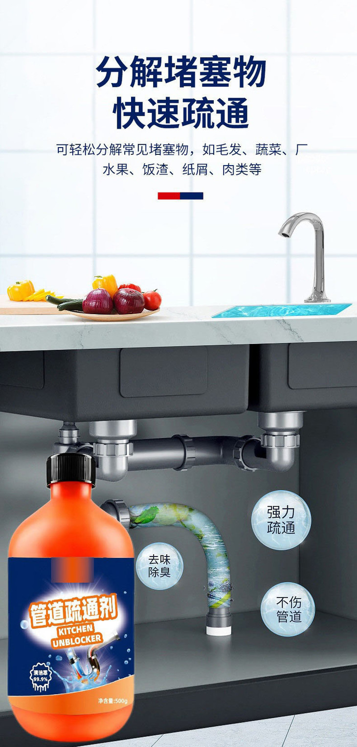 【抖音同款管道疏通剂】强力溶解毛发祛味疏通液厨房地漏下水道疏通液