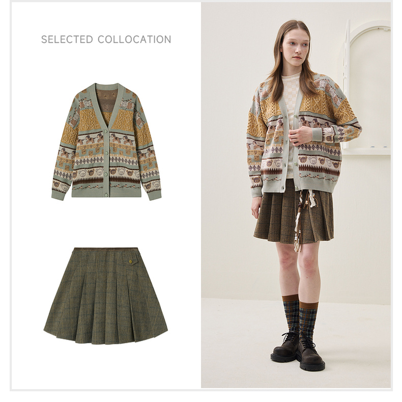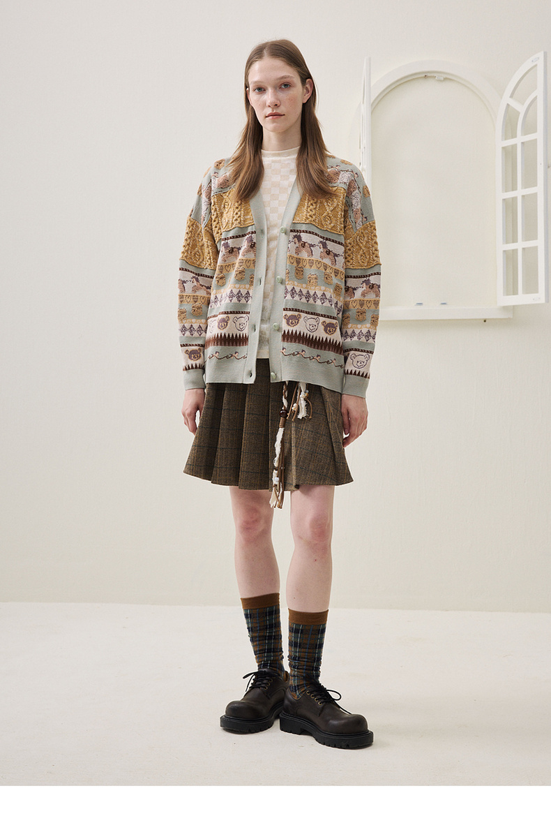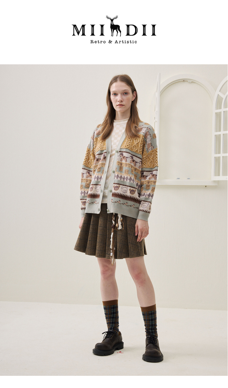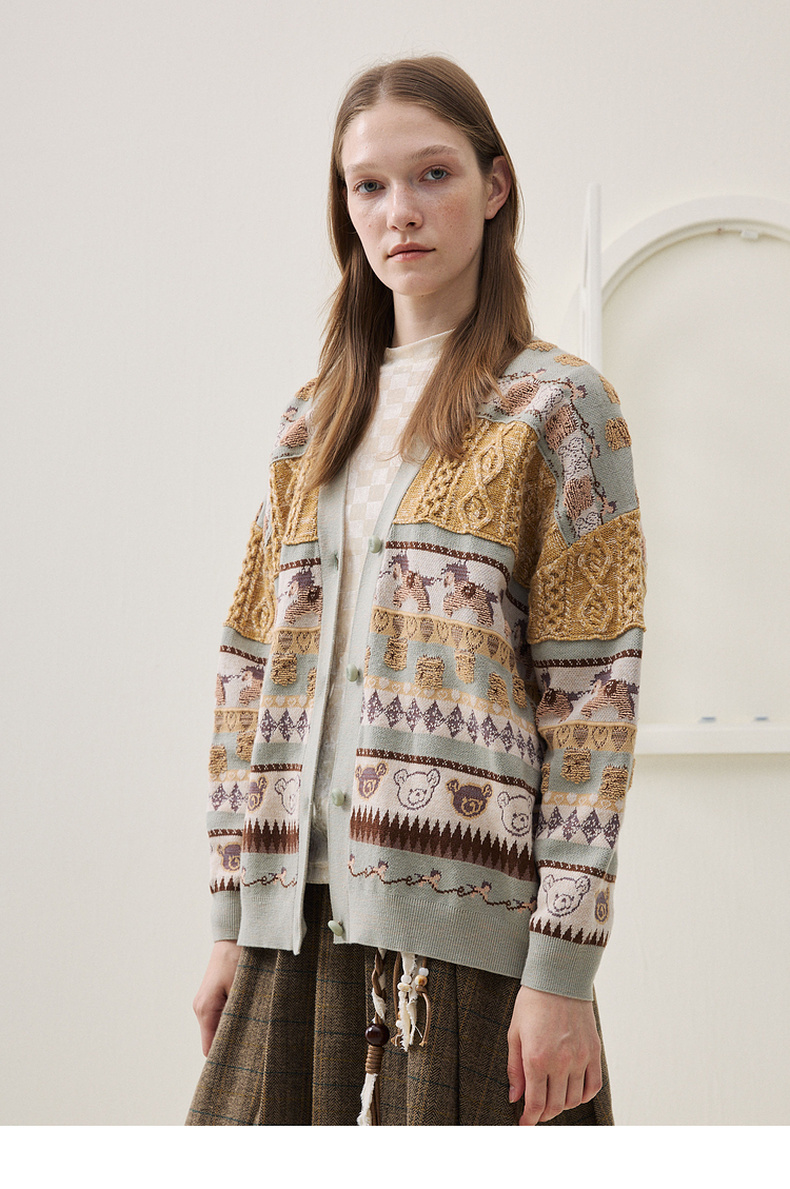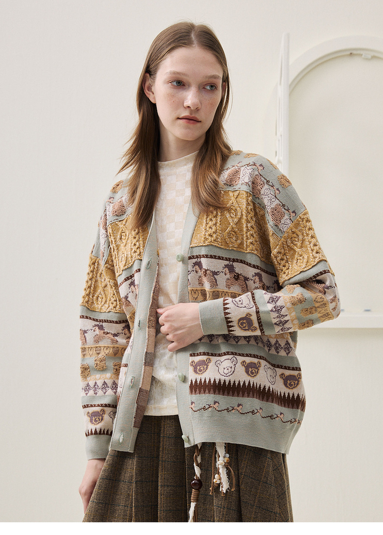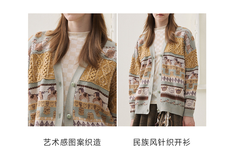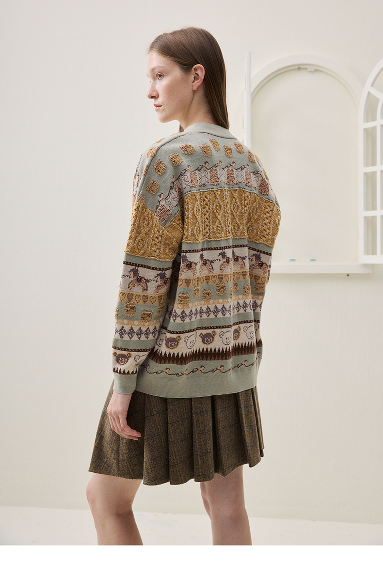 谜底针织开衫长袖2025冬季新品时髦廓形原创图案毛衣女254MZ1916