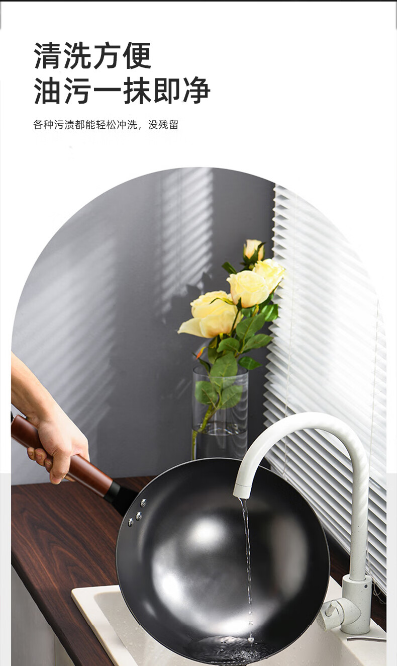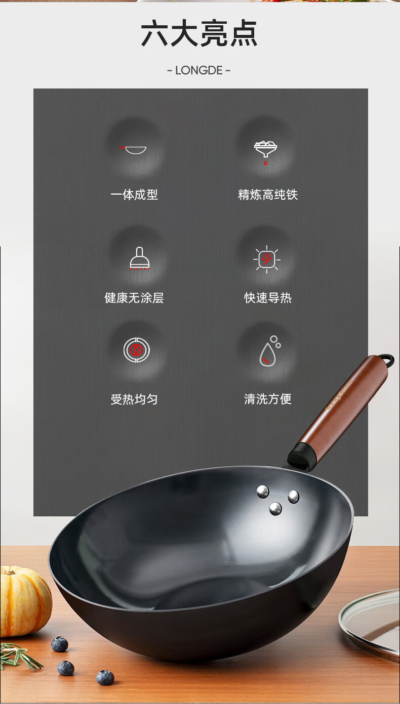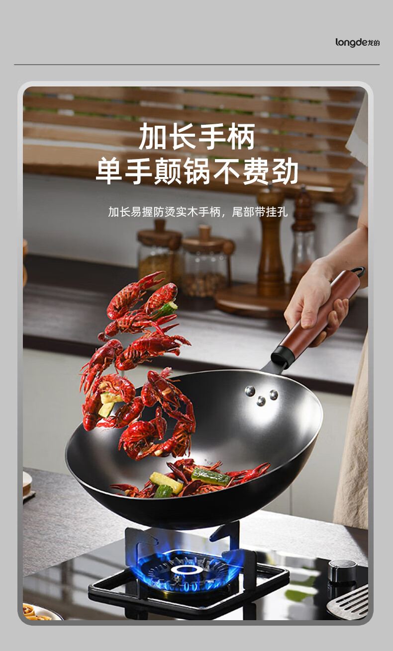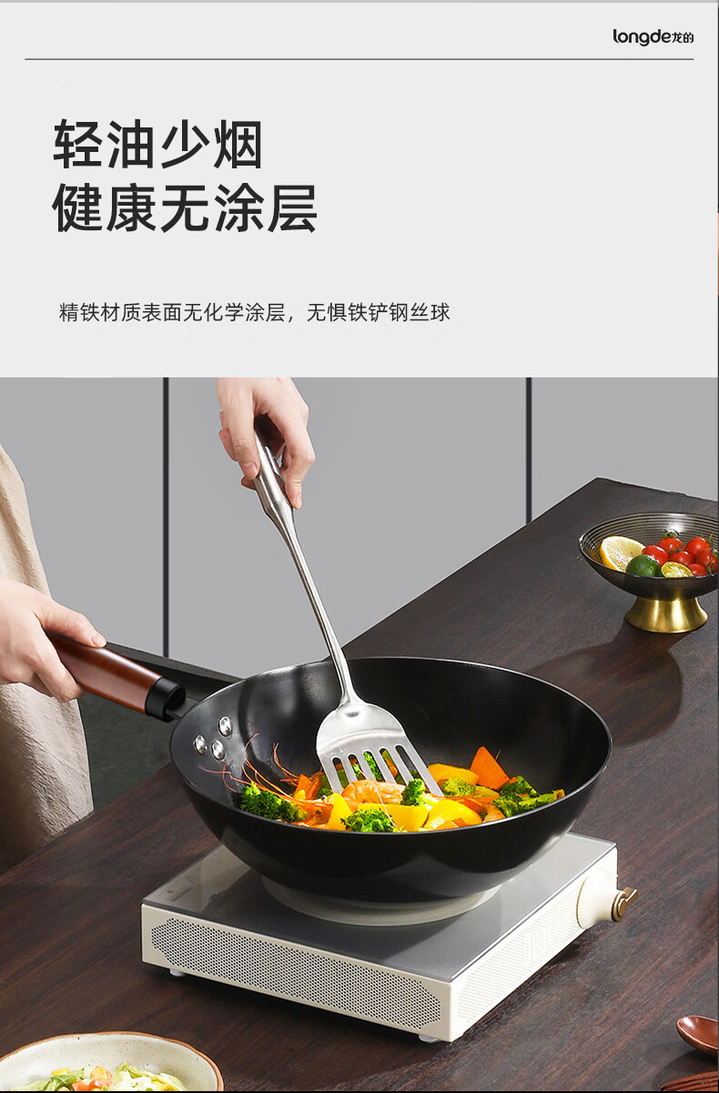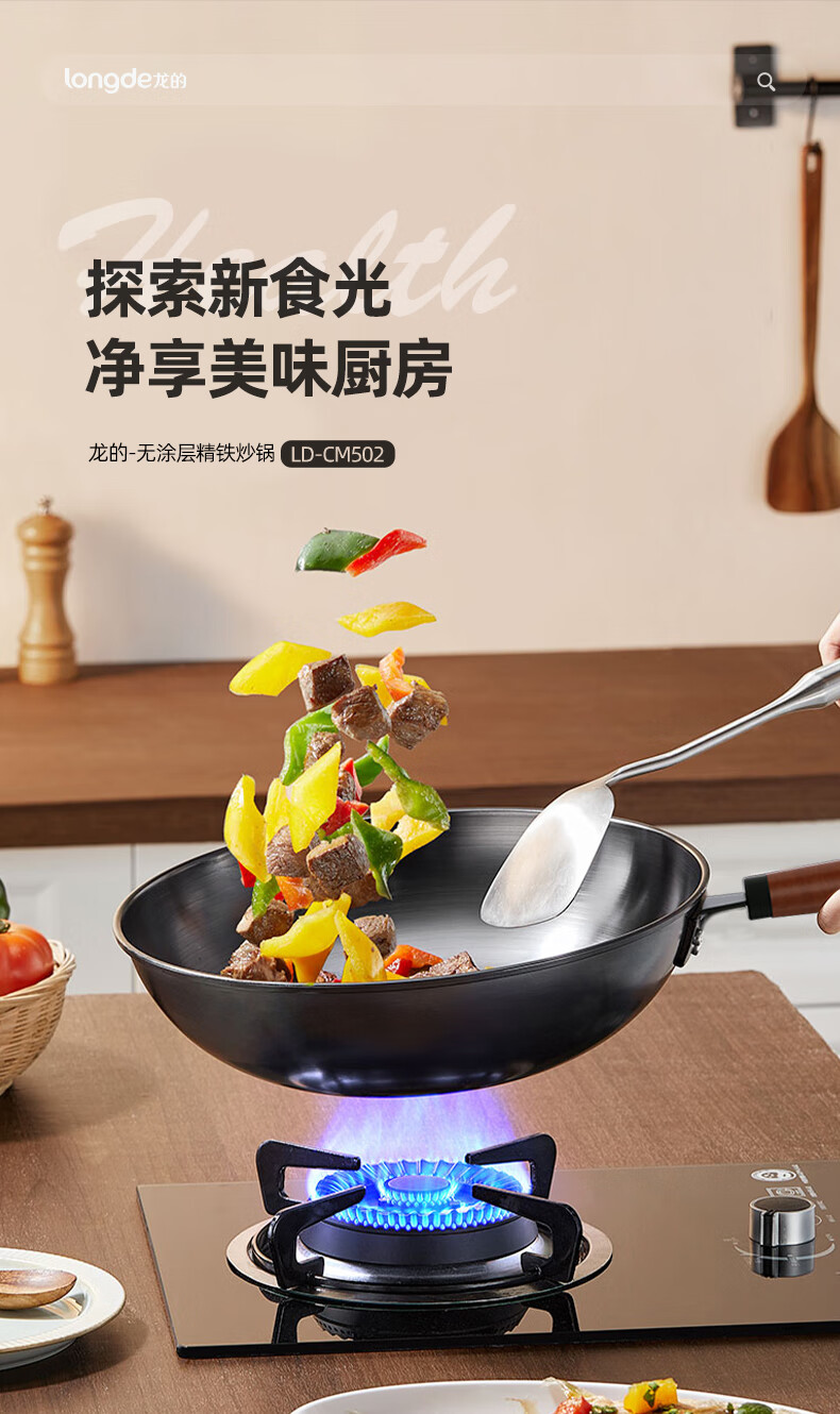 【小家电】龙的longde炒锅铁锅炒菜锅 健康无涂层清洗方便 快速导热聚油爆炒精铁锅 LD-CM502(无盖) HF