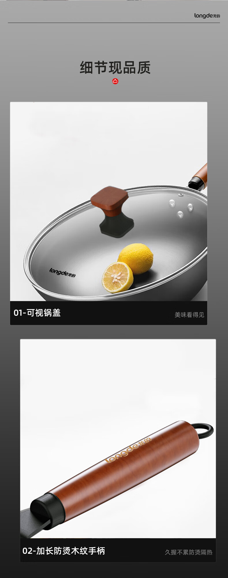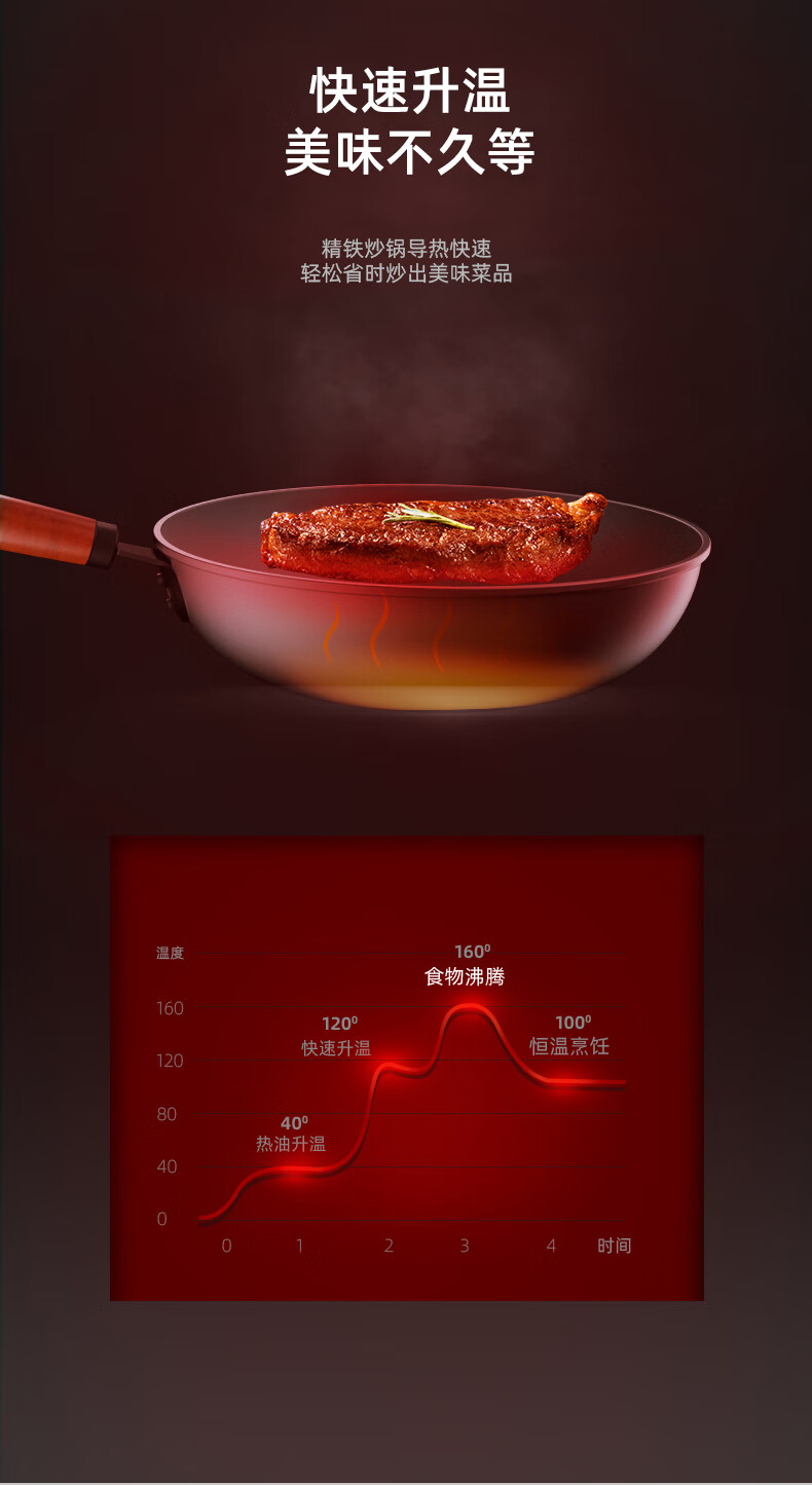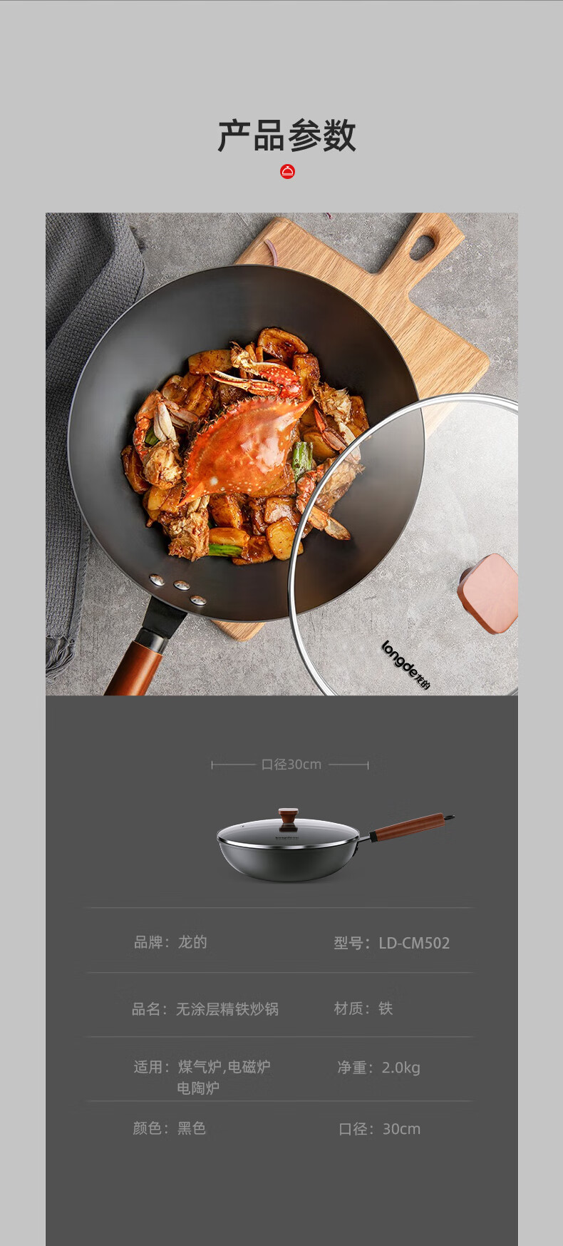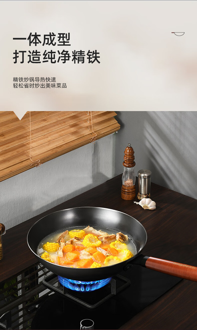 【小家电】龙的longde炒锅铁锅炒菜锅 健康无涂层清洗方便 快速导热聚油爆炒精铁锅 LD-CM502(无盖) HF