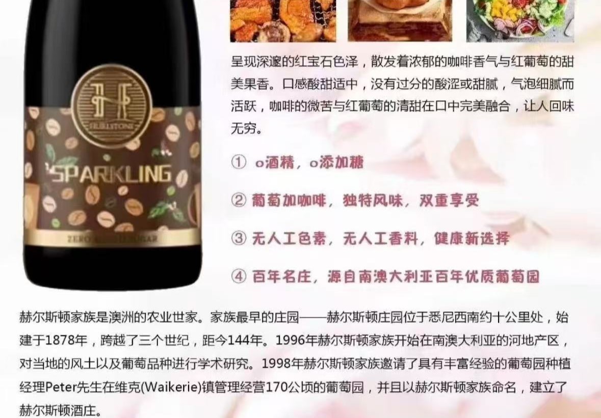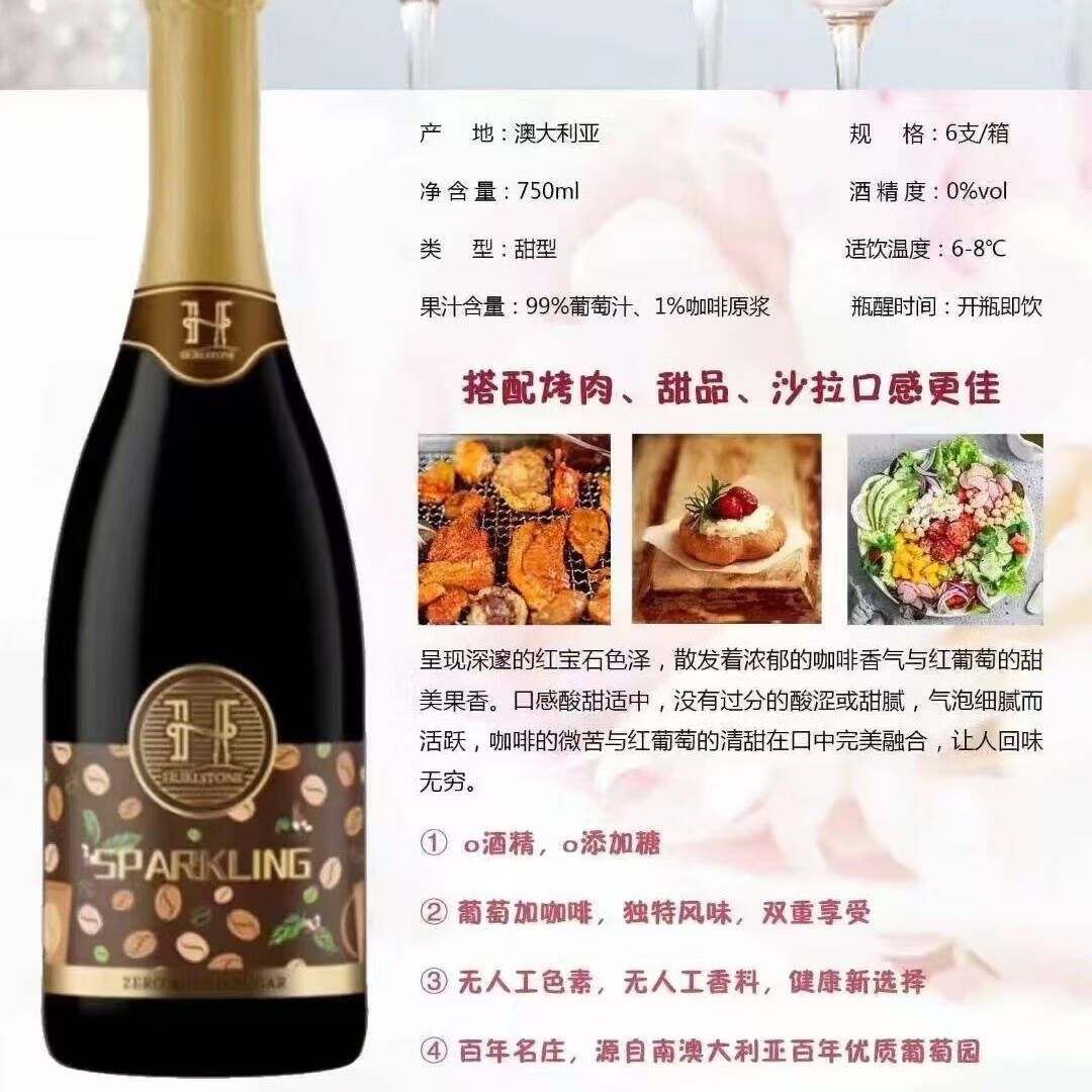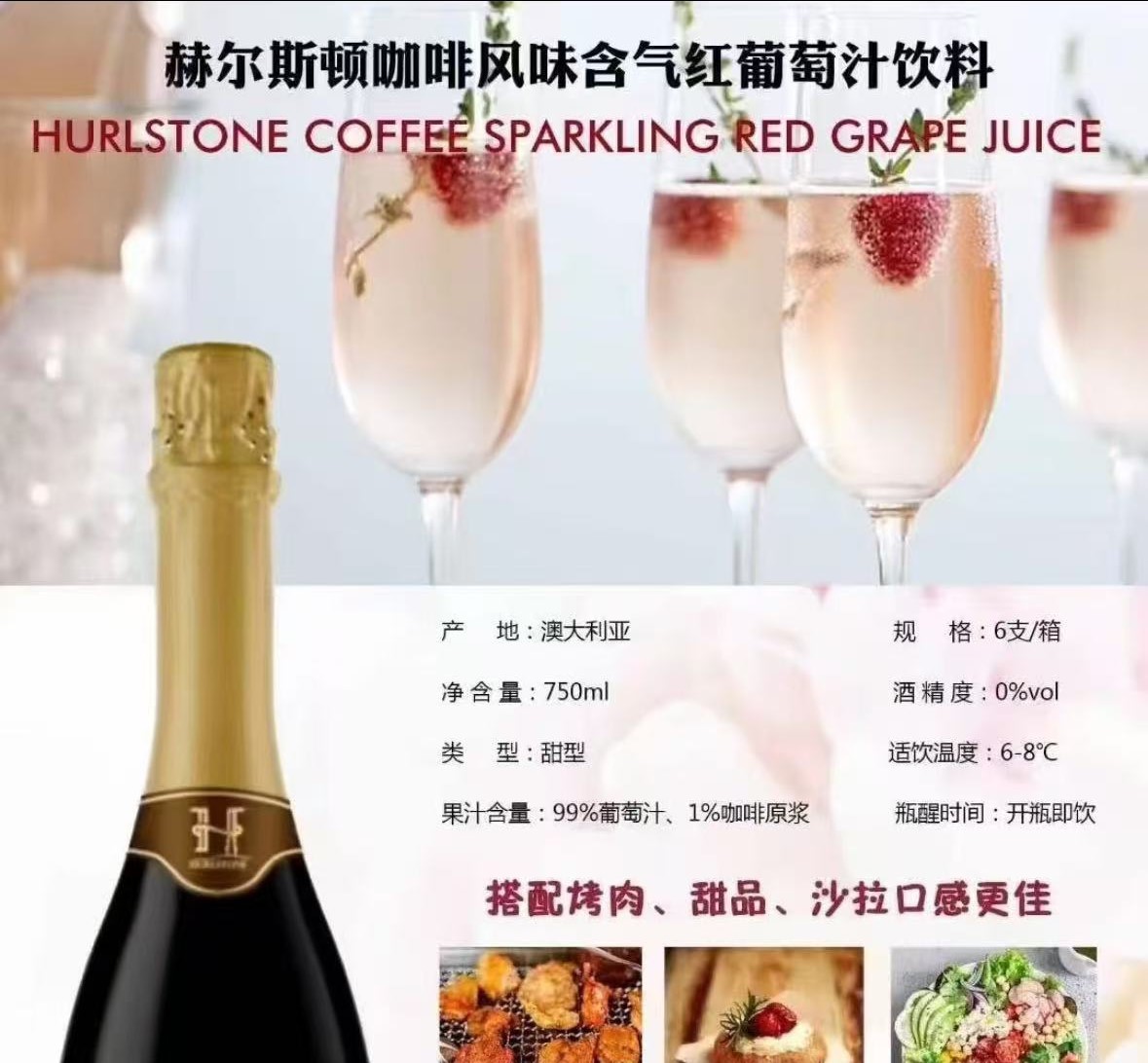 澳大利亚进口赫尔斯顿零醇气泡红葡萄汁 整箱750ml*6瓶包邮