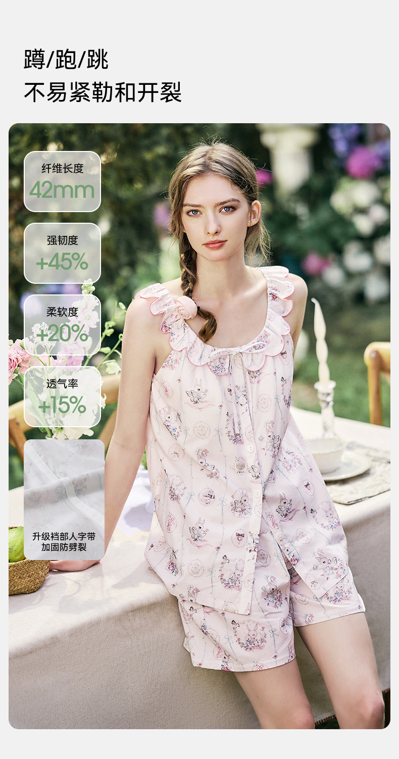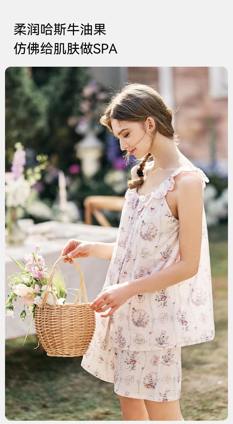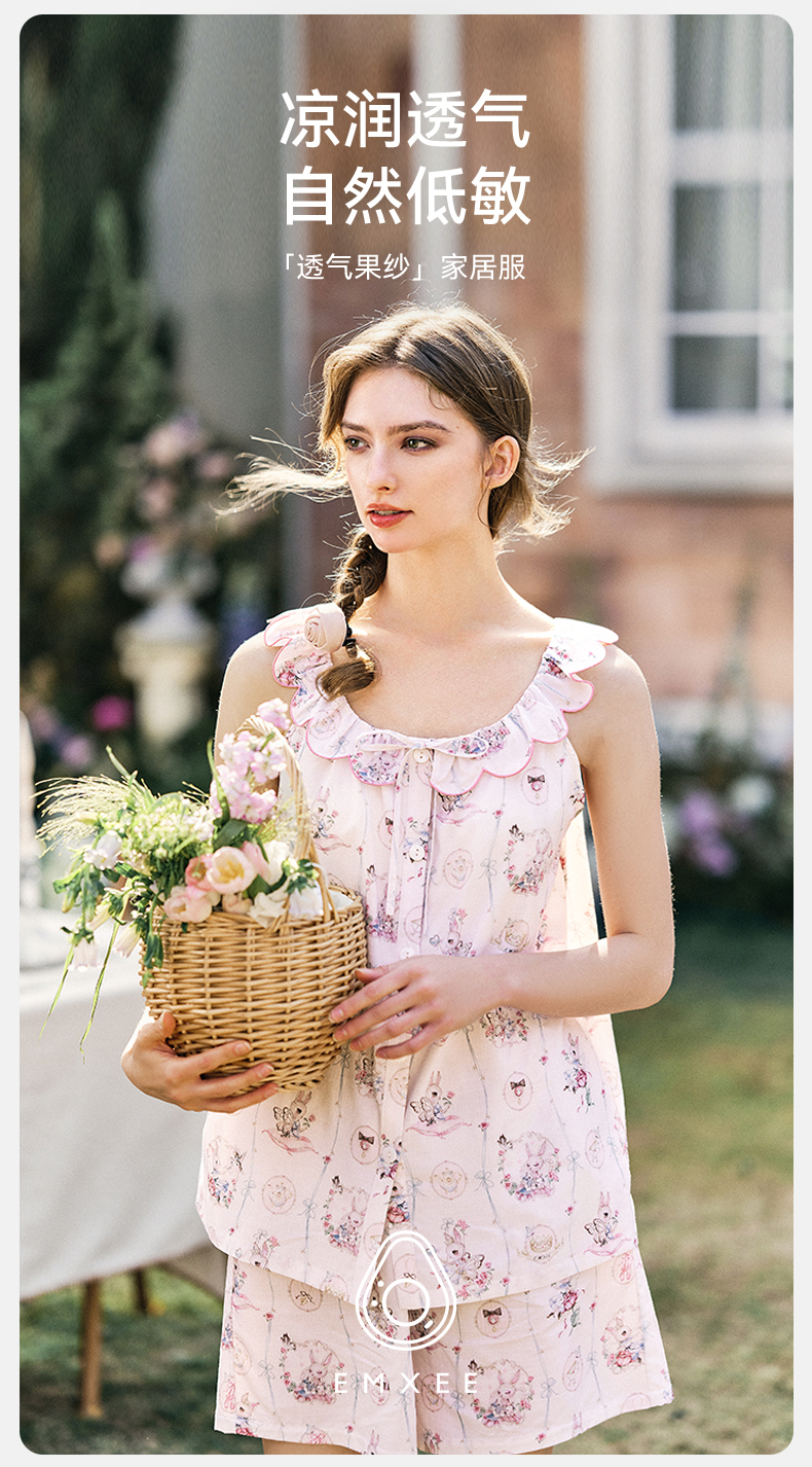 【家居服专场】嫚熙夏季牛油果纱罗女士睡衣薄款果纱胸垫短袖家居服套装2025新款