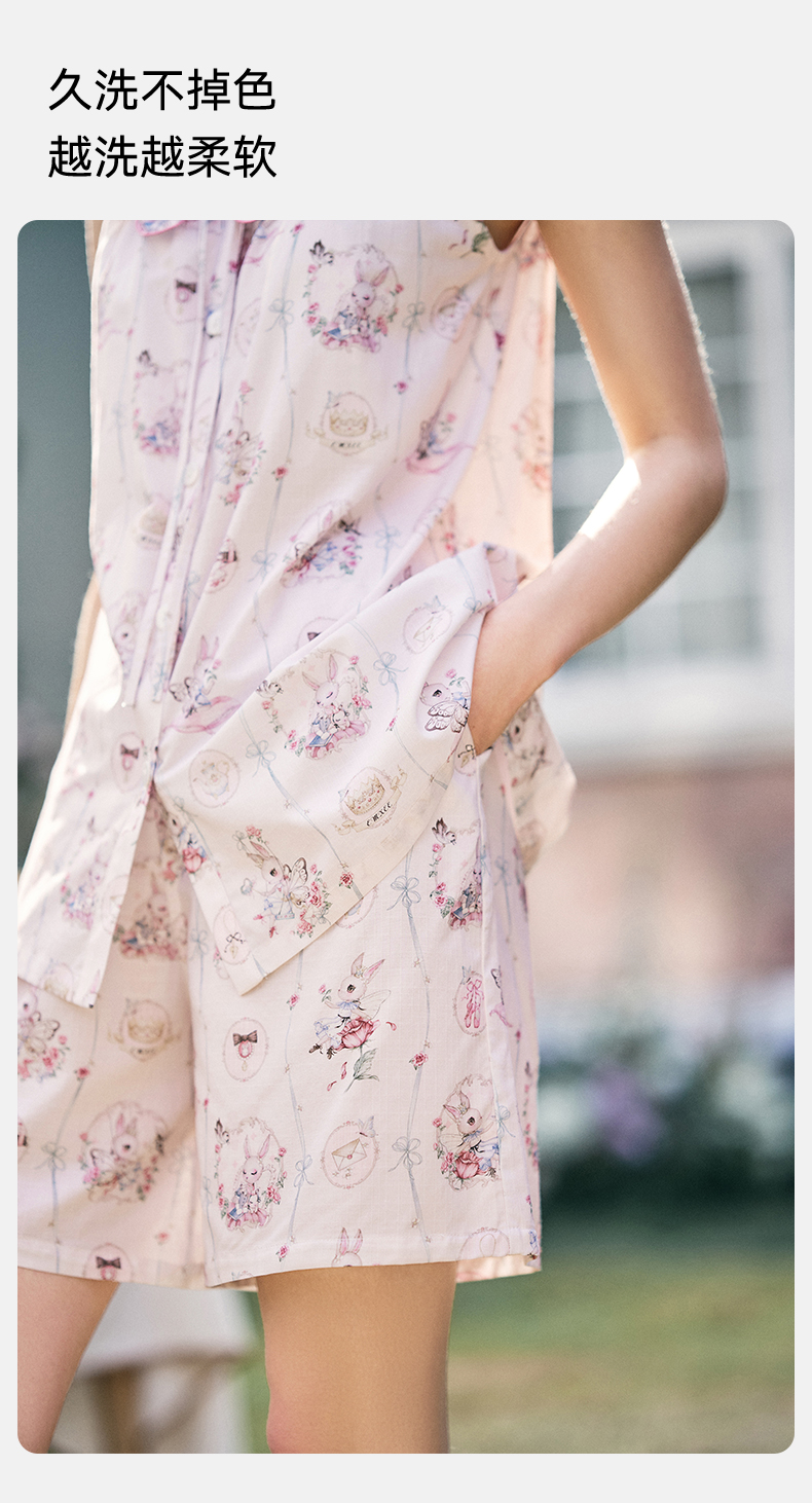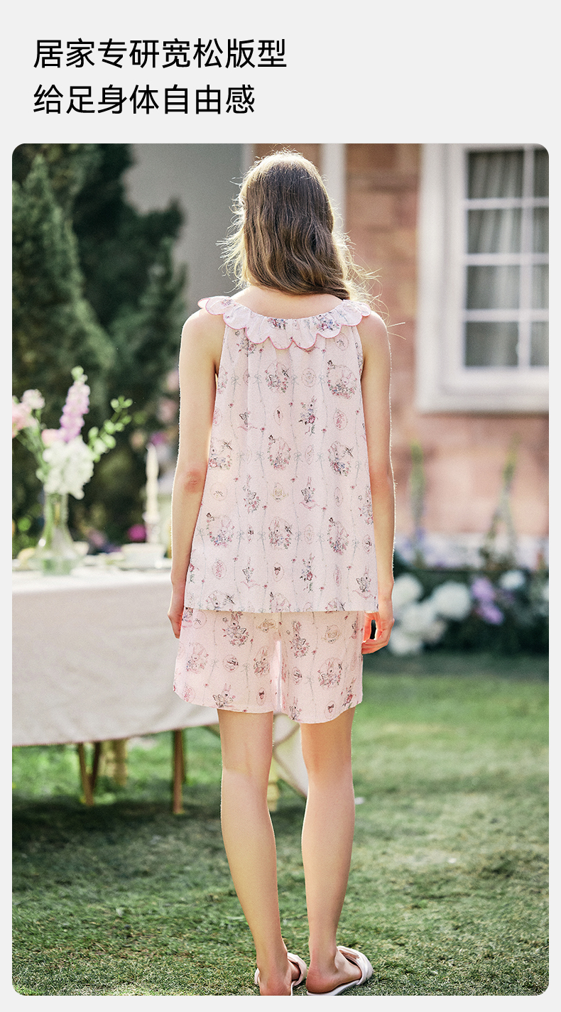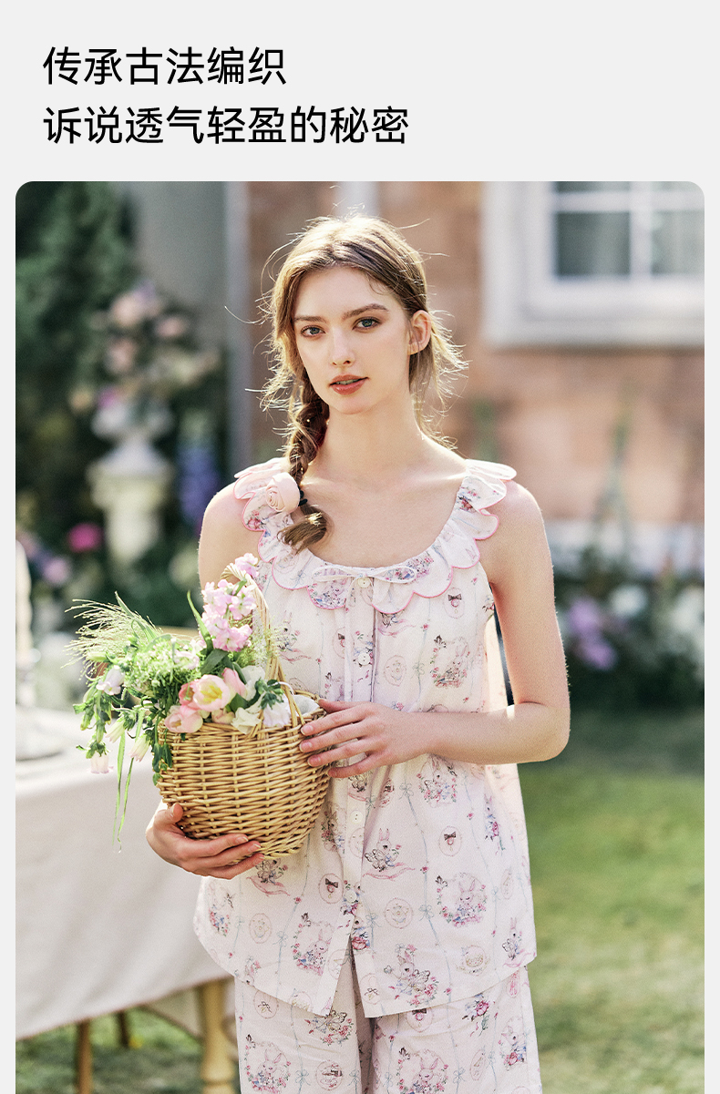 【家居服专场】嫚熙夏季牛油果纱罗女士睡衣薄款果纱胸垫短袖家居服套装2025新款