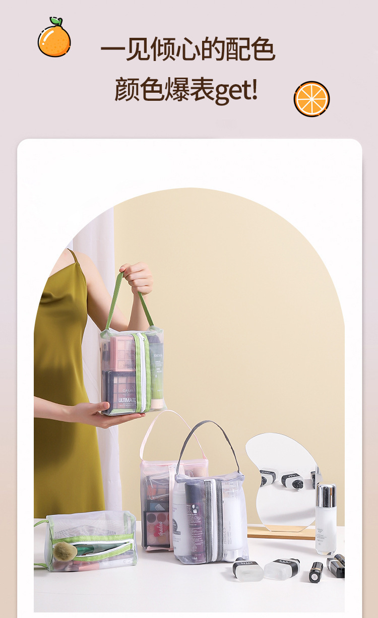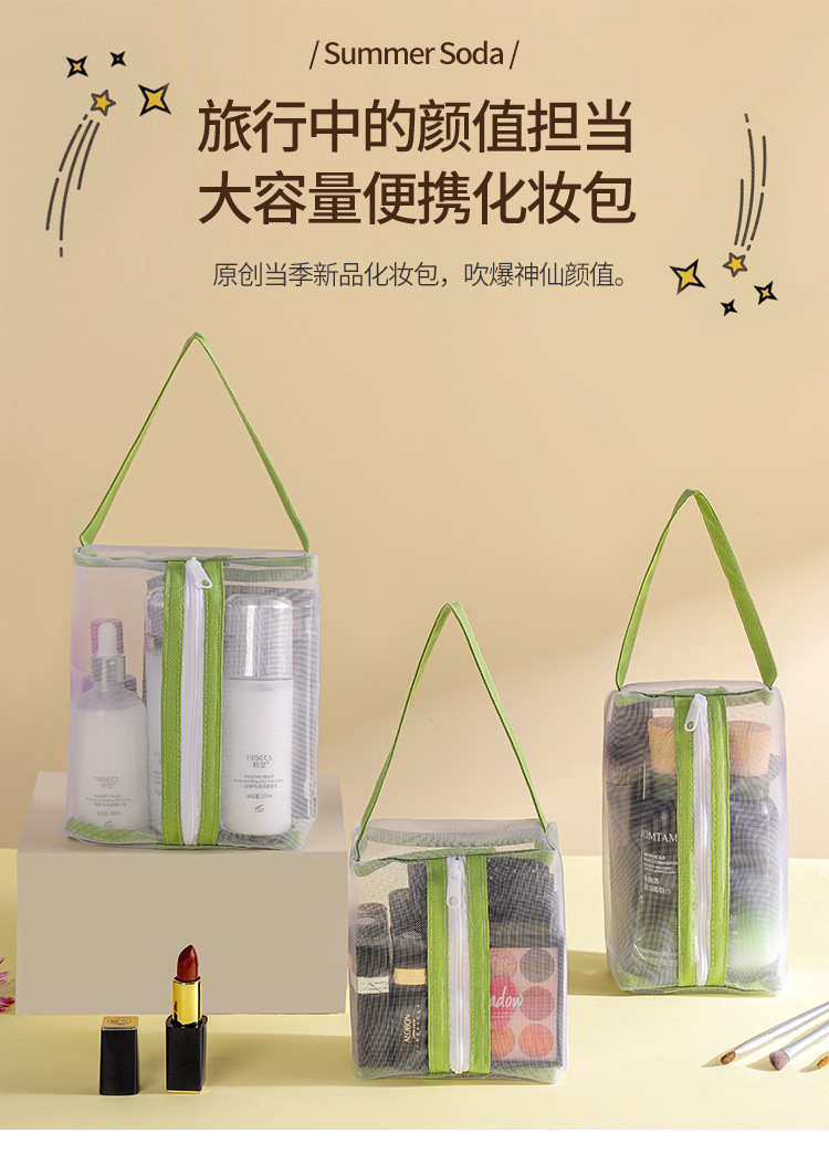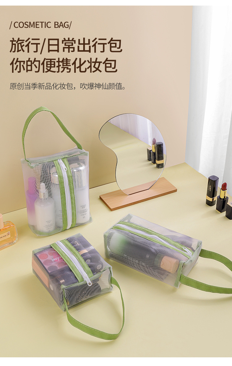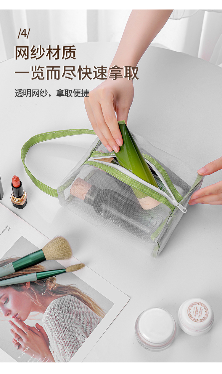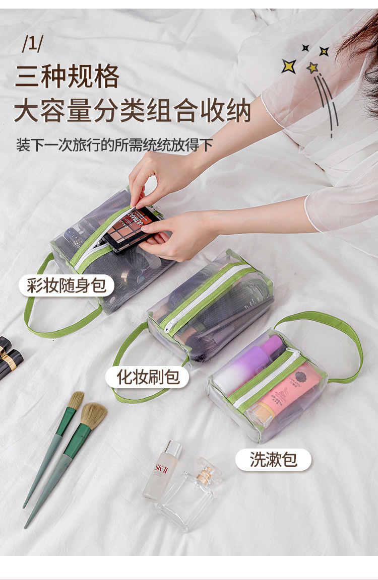 「9.9元包邮!三色可选」化妆包女便携旅行随身透明洗漱包护肤品眼影刷子口红网纱收纳整理袋