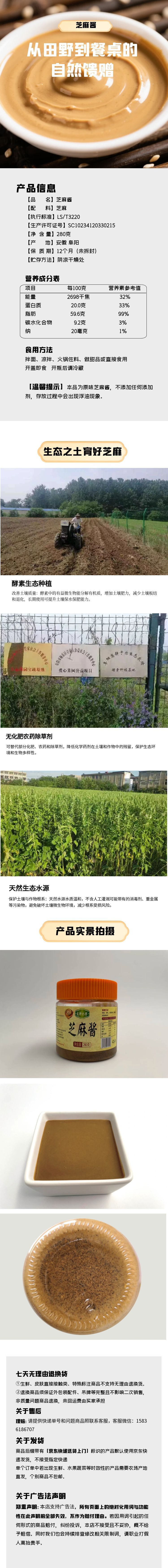 芝麻酱(原味) 寓耕于乐农场自然生态种植芝麻加工制作280克/瓶【京东快递送货上门】