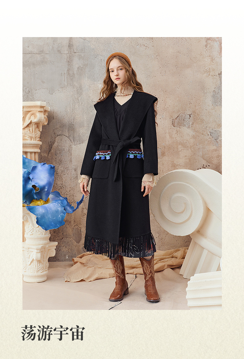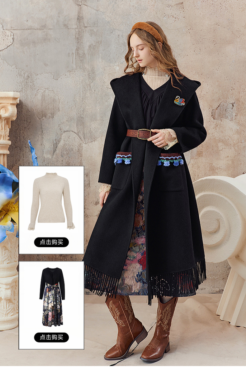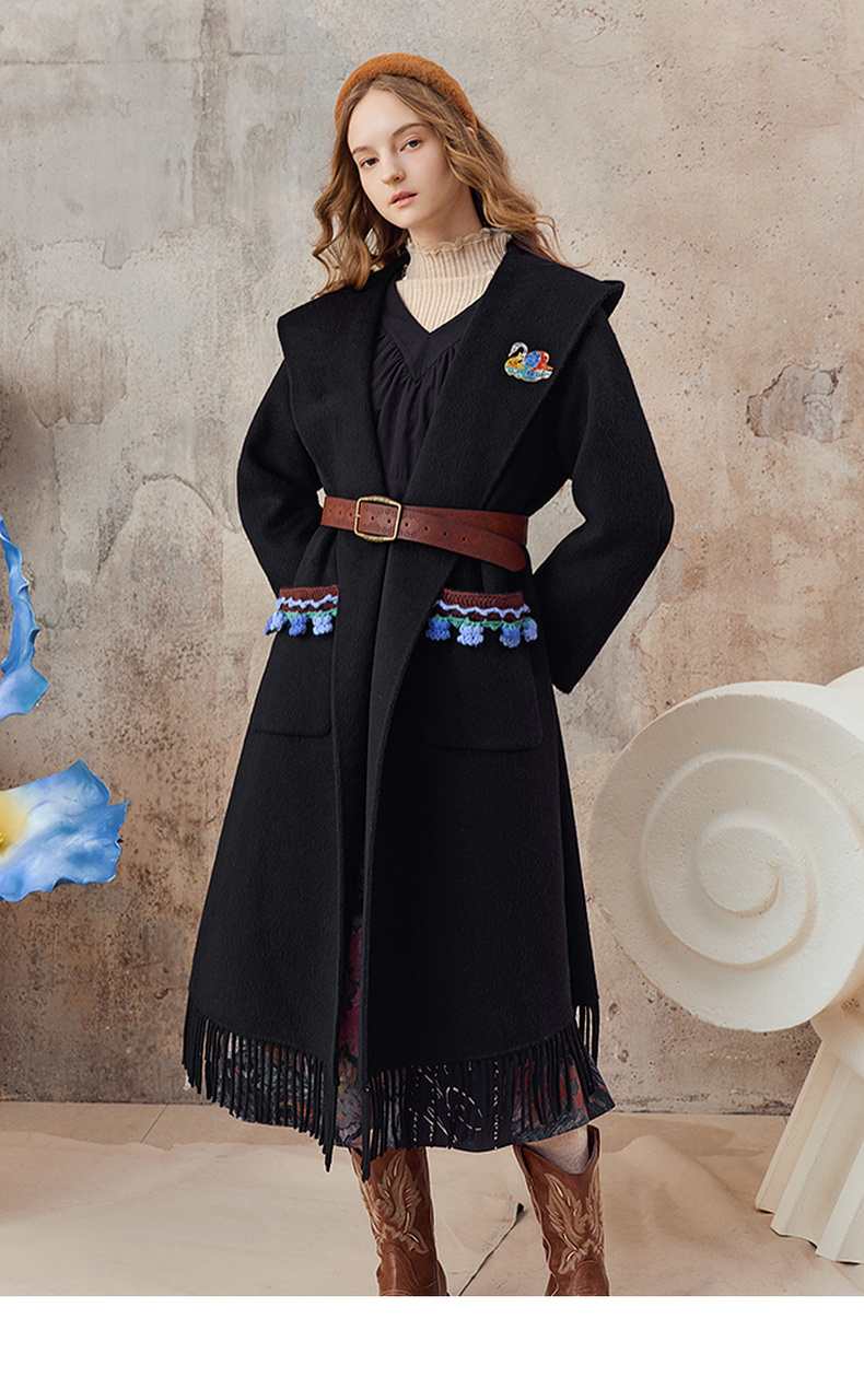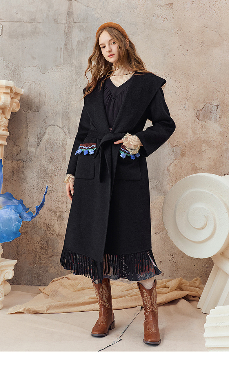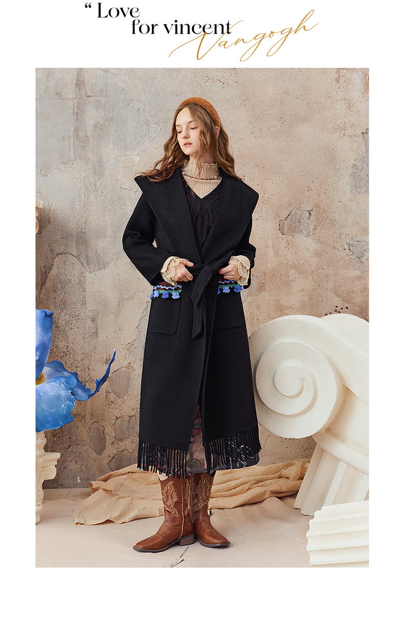 【暖冬内购】两三事梵高文艺荡游宇宙2025秋冬款手钩花拼接流苏下摆羊毛呢外套