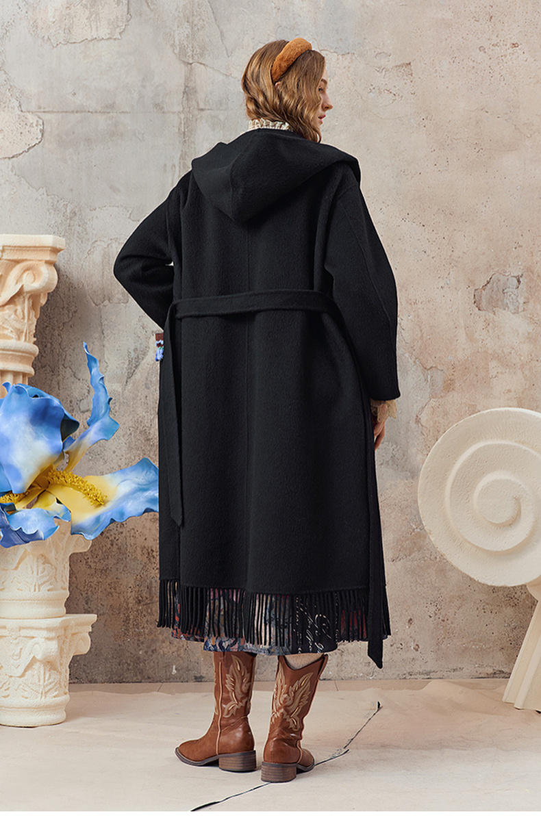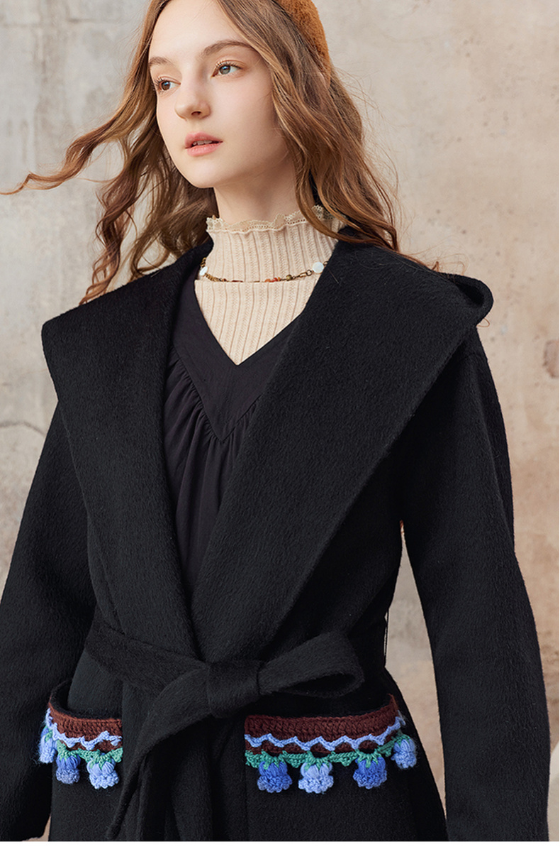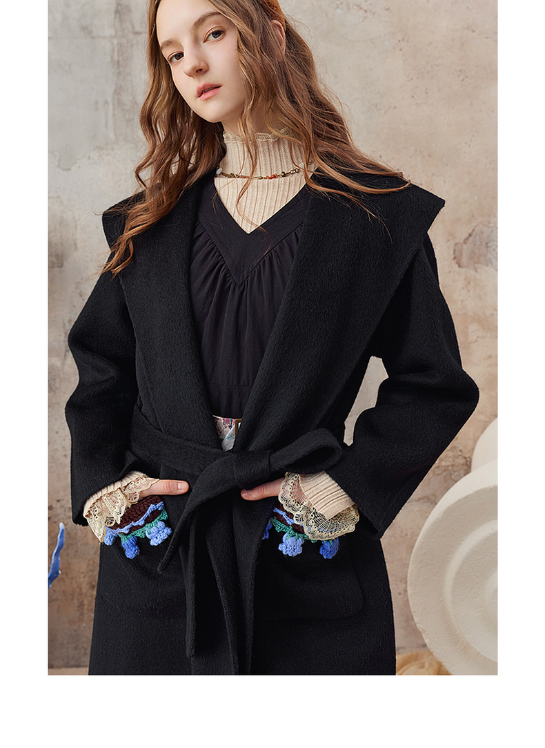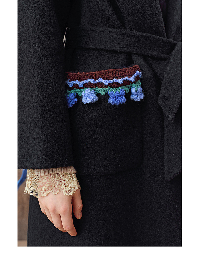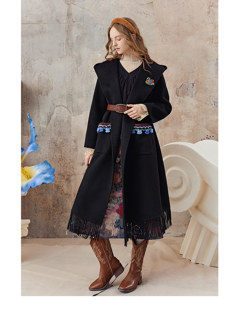 【暖冬内购】两三事梵高文艺荡游宇宙2025秋冬款手钩花拼接流苏下摆羊毛呢外套