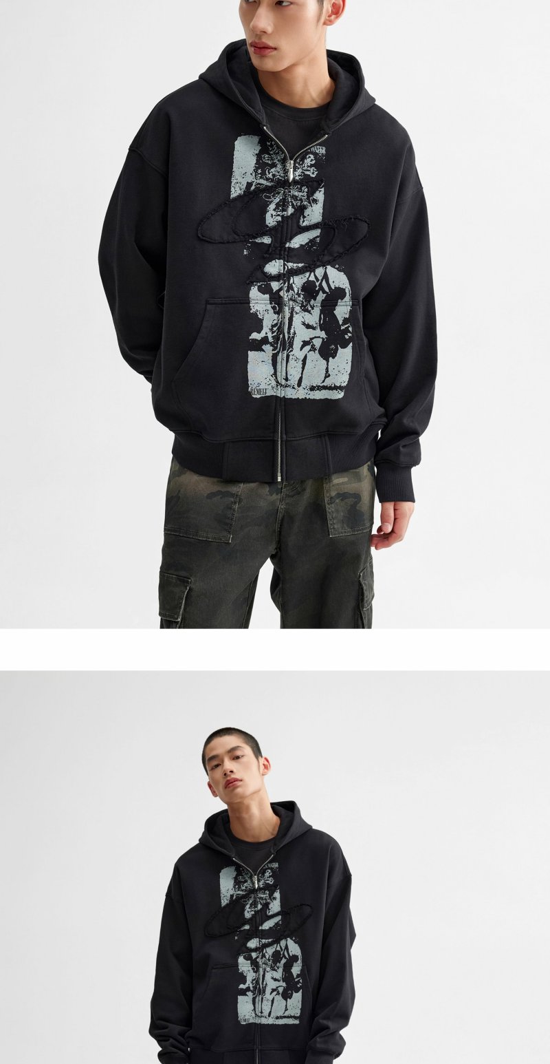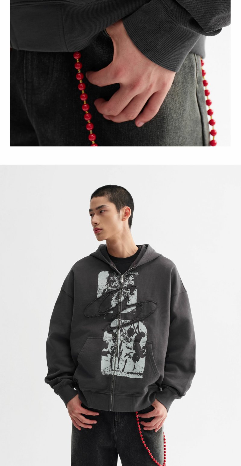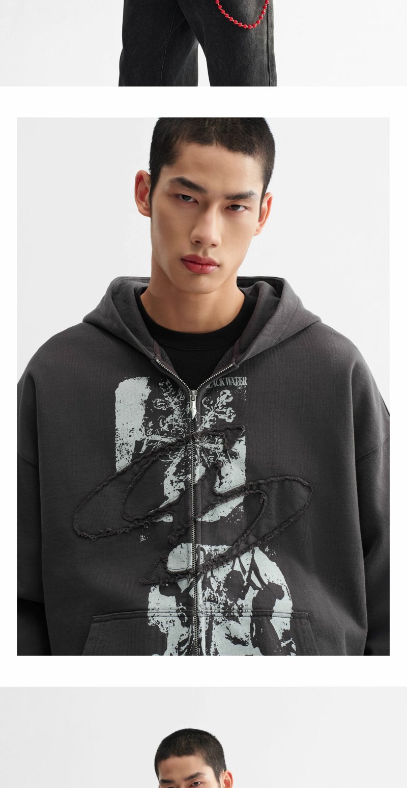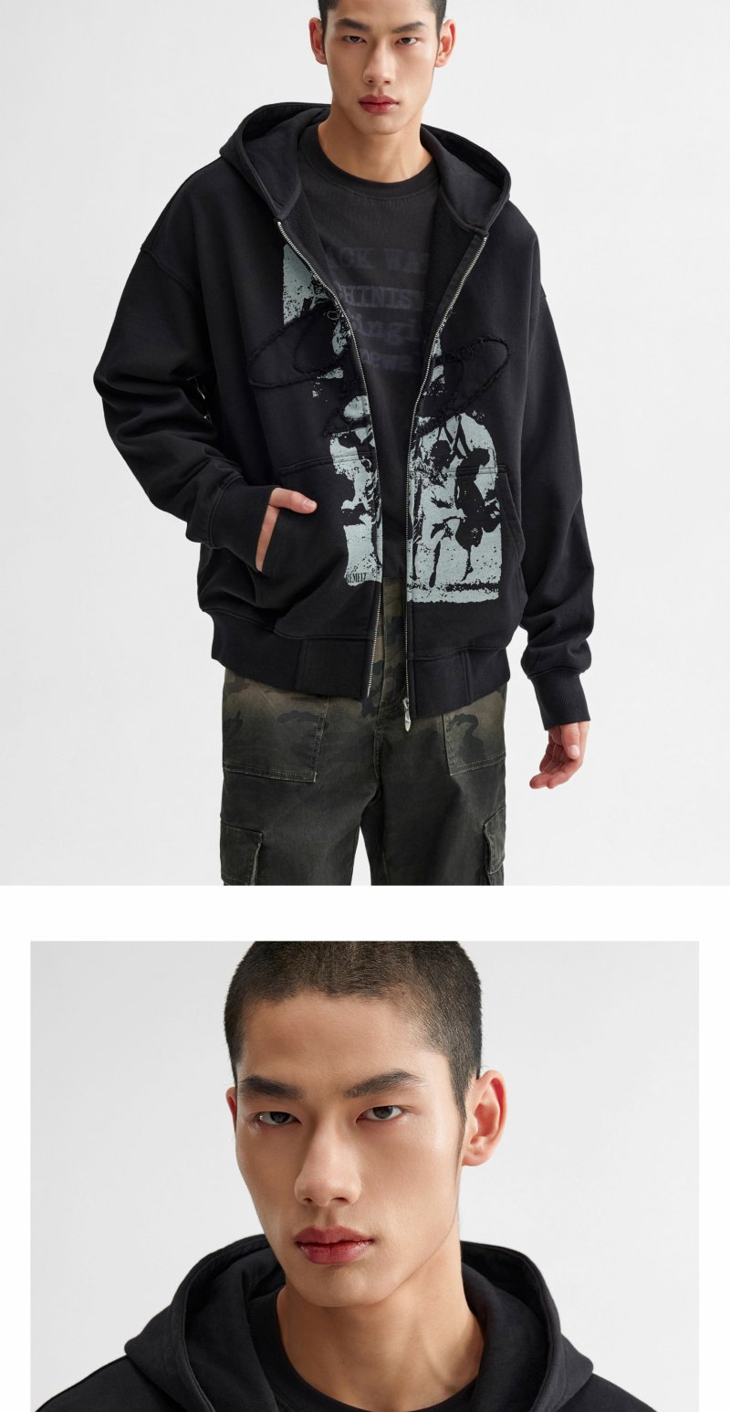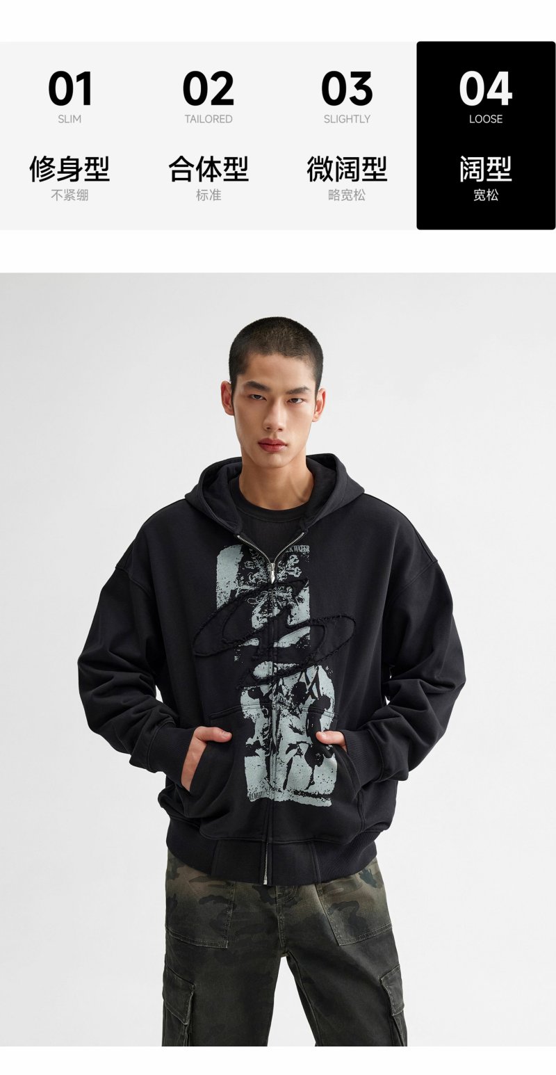 【黑水系列】CHINISM赤尘 贴布LOGO印花连帽开衫卫衣男商场同款