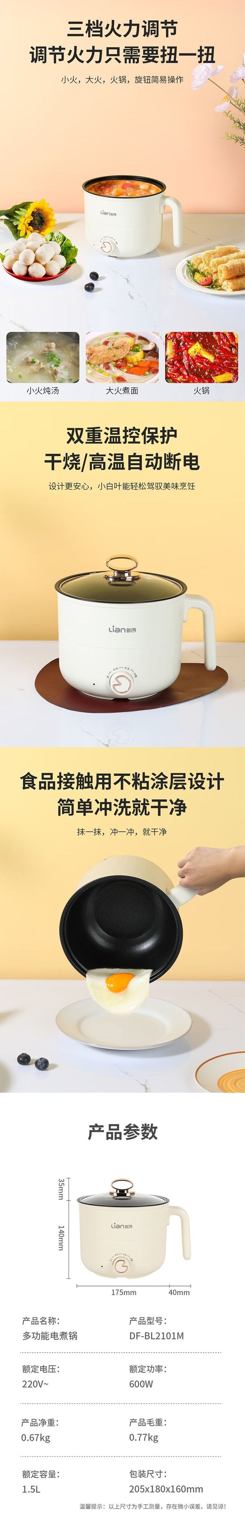 联创 多功能电煮锅 DF-BL2101M 宿舍小锅煮面火锅不粘内胆