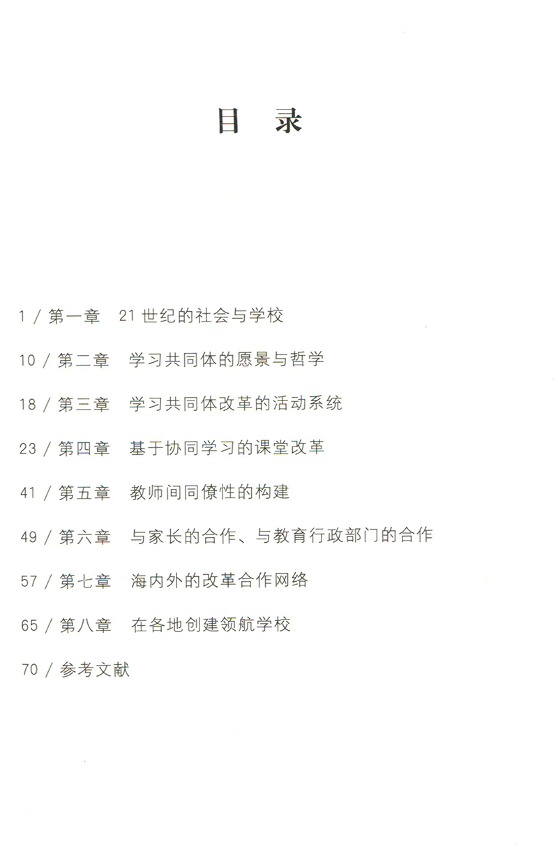 佐藤学教授可谓是一个传奇。本书浓缩了他所提出的学习共同体教育改革设计及改革愿景,并充分展示了他的改革热情、学识及领导力。通过遍布日本及世界各地的数千所学校合作网络,学习共同体正在改变着儿童、家长及教师的日常学习体验。佐藤学教授对教职专业性的深厚信念及其对教师们协同合作,对于在学习共同体合作网中产生并共享的实践性知识的进一步创造的专业能力的深深信赖,是其不断前进的动力。本书超越了东方与西方的差异,是所有学校领导者、教育行政指导者、学校改革者、学者及具有领袖精神的教师的“必读之书”。