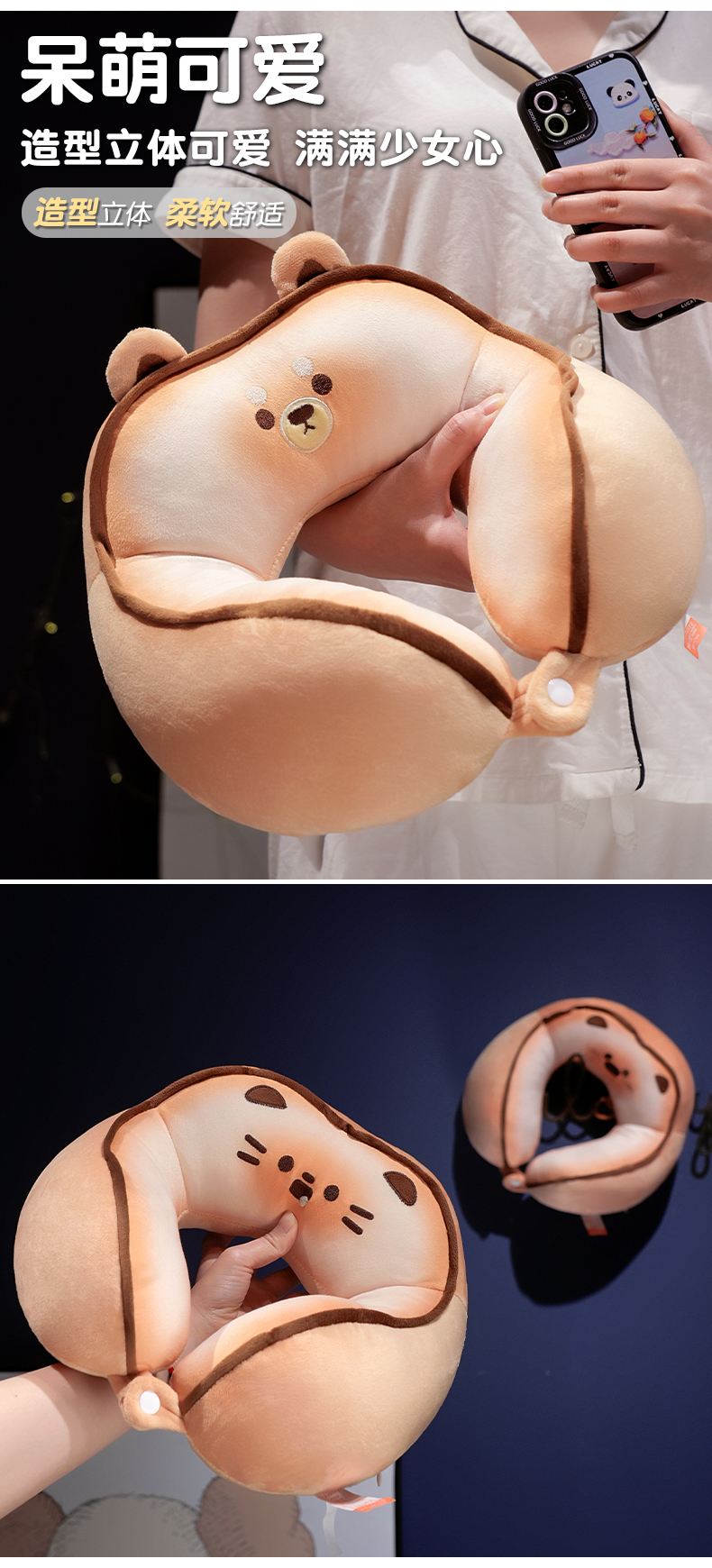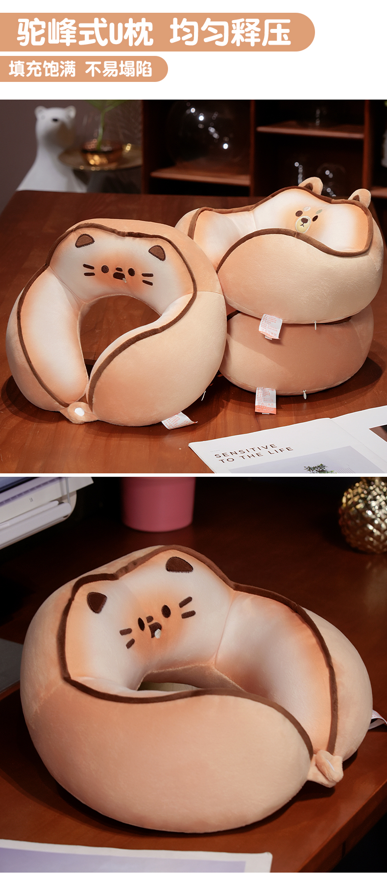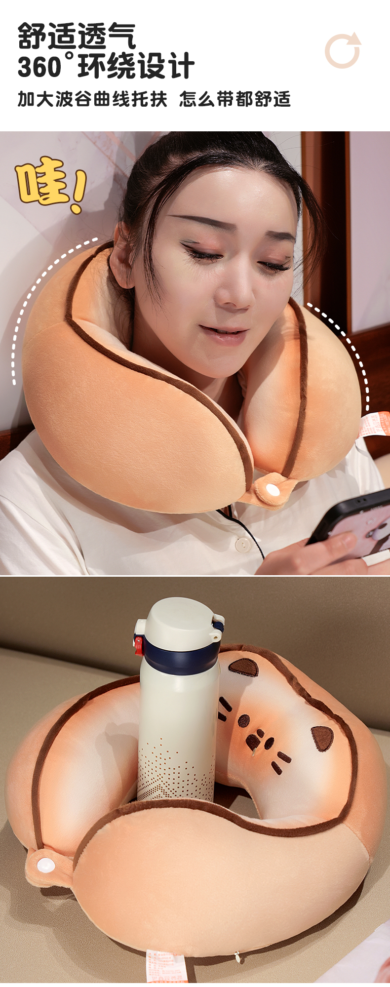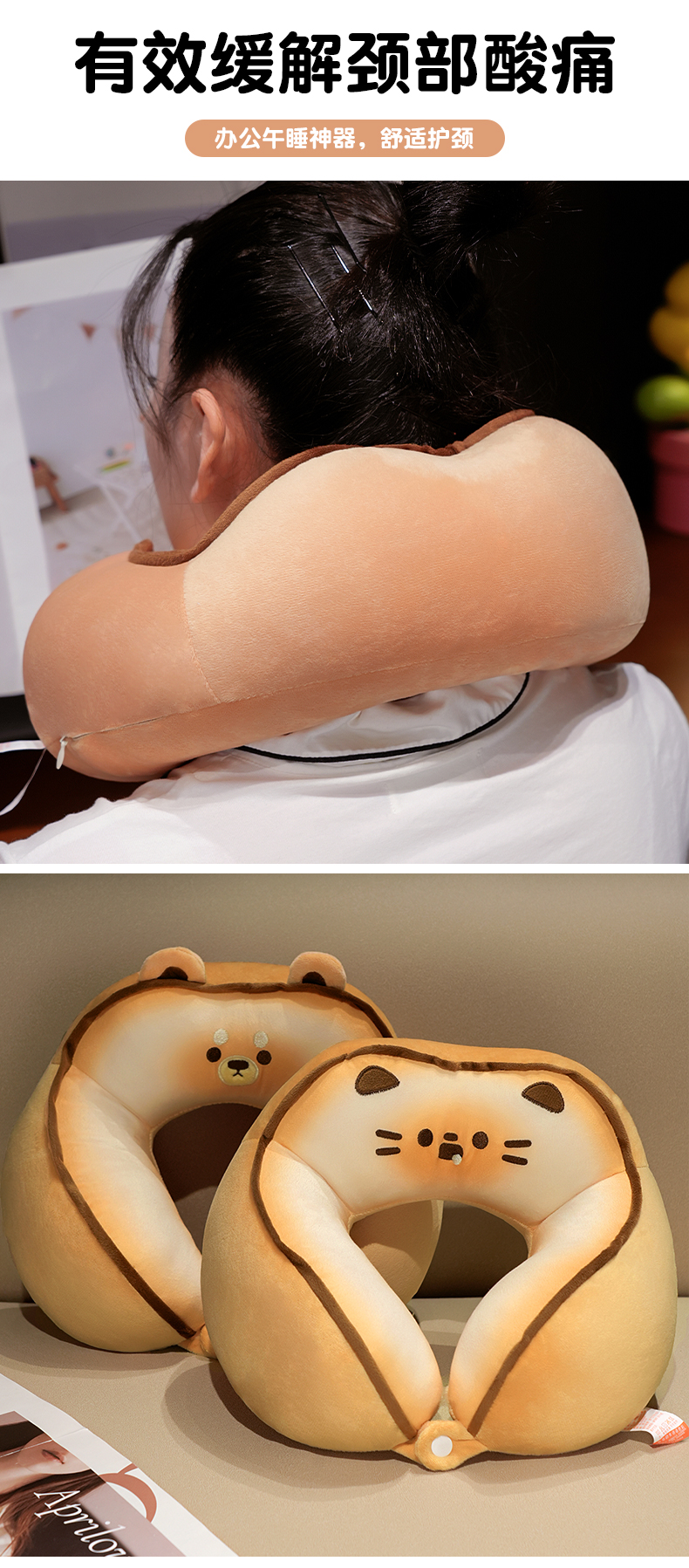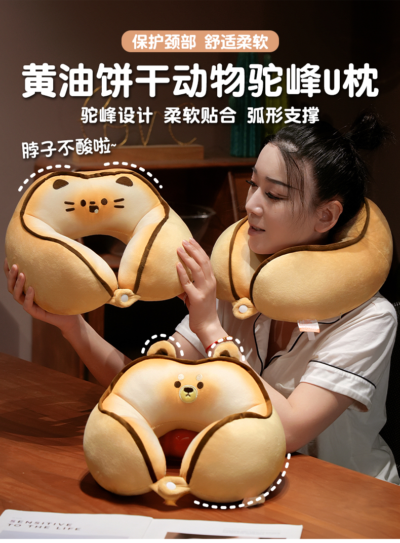 自然醒黄油饼干驼峰U枕飞机脖子颈椎头枕便携枕头车载脖枕学生QYL