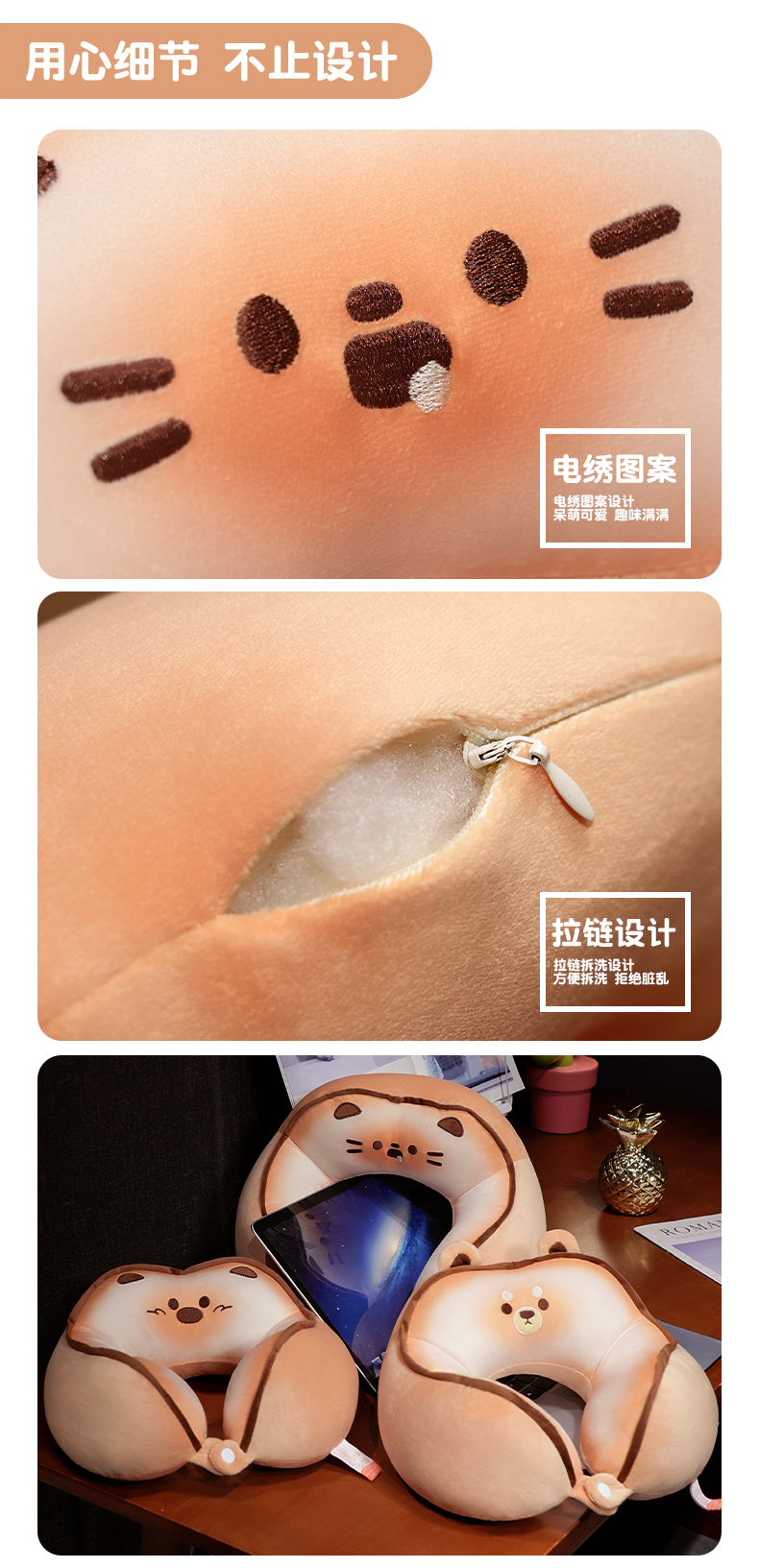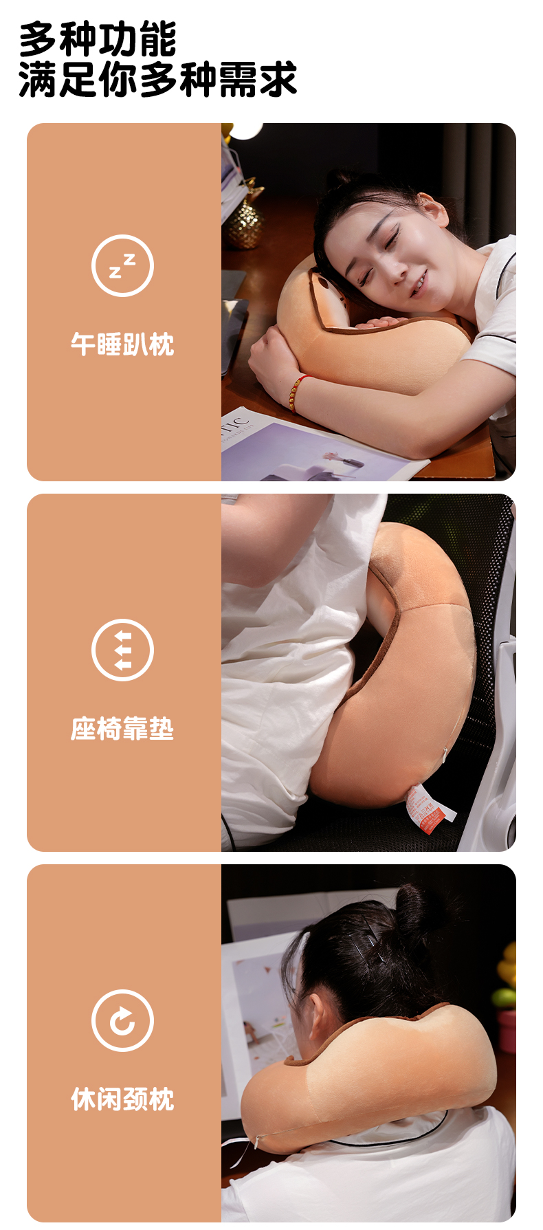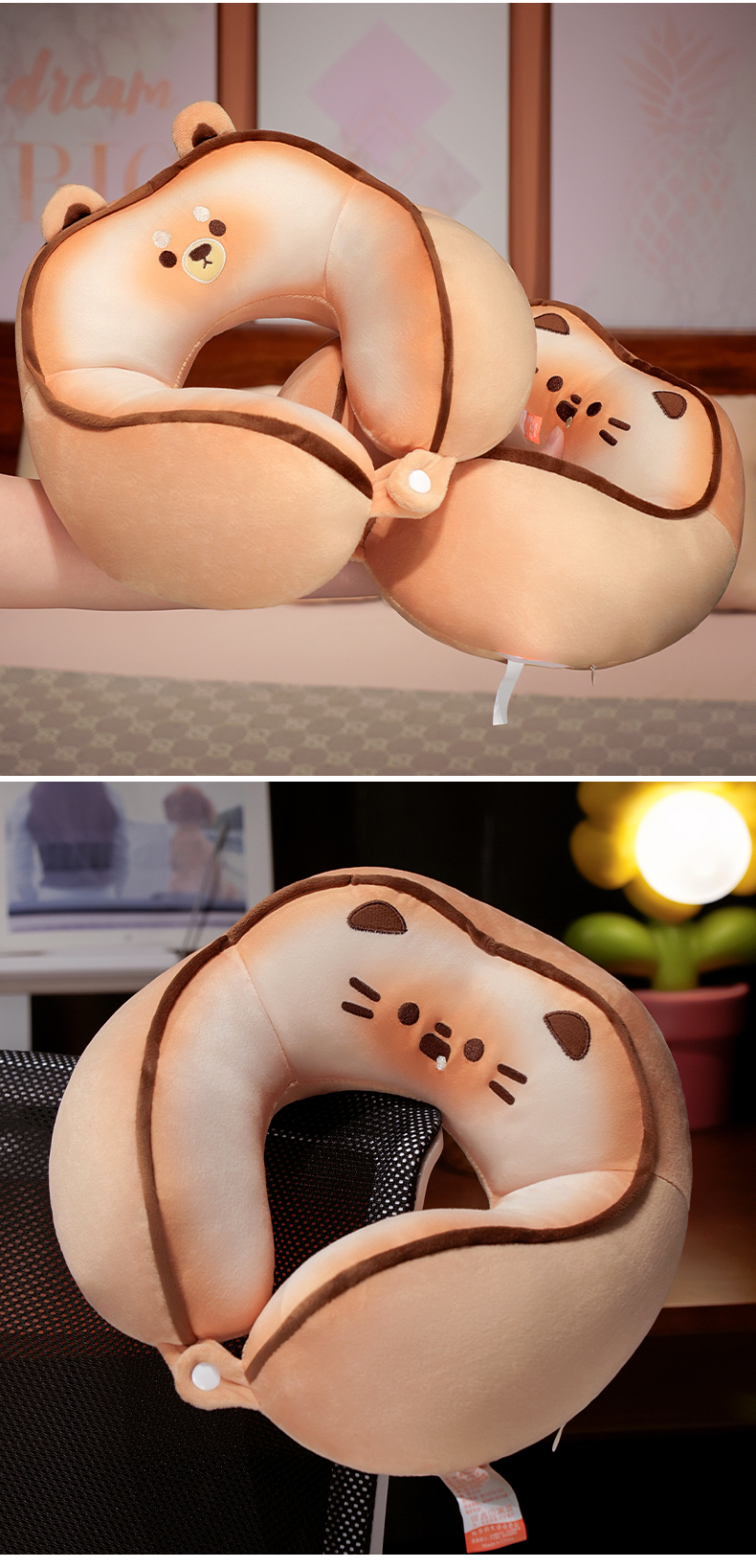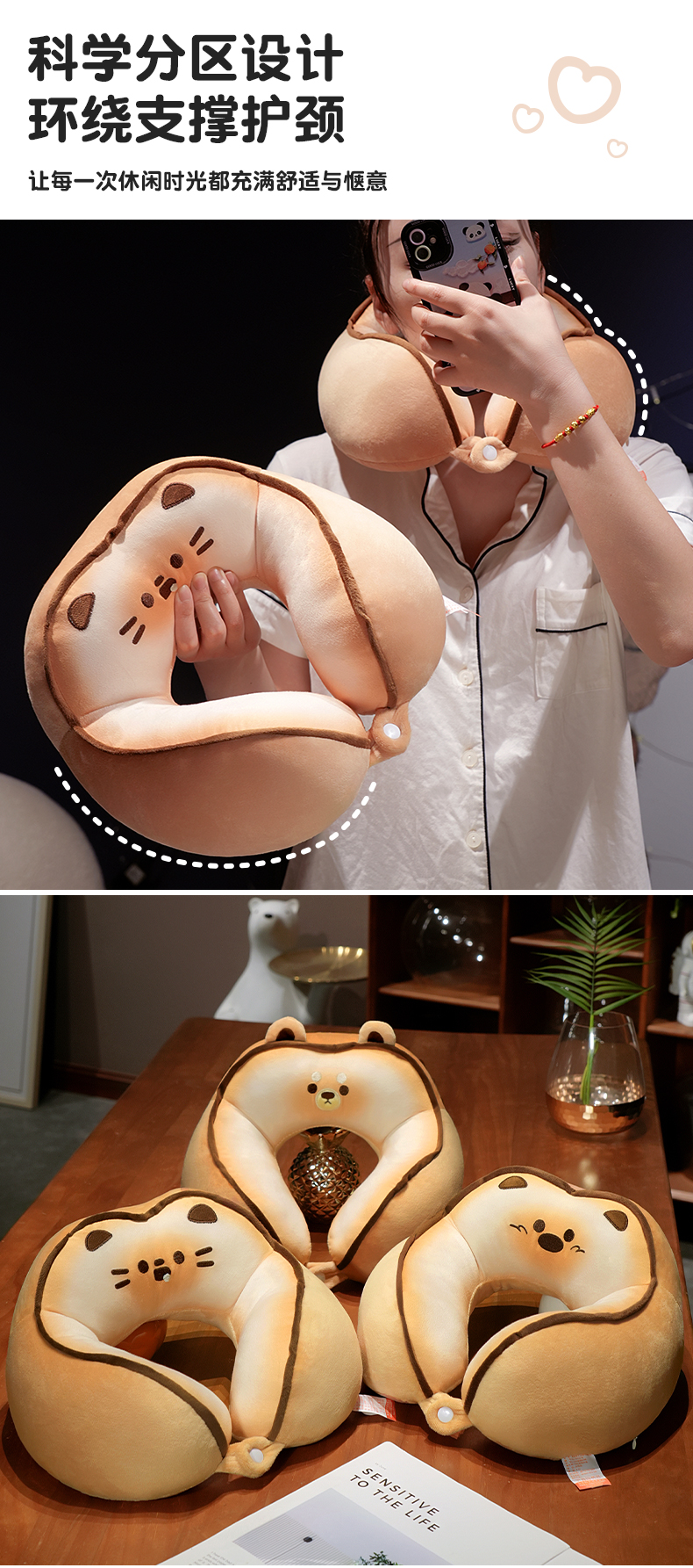 自然醒黄油饼干驼峰U枕飞机脖子颈椎头枕便携枕头车载脖枕学生QYL