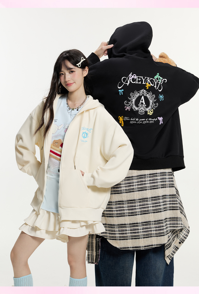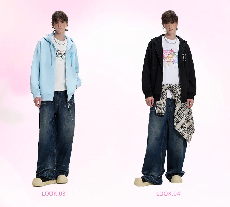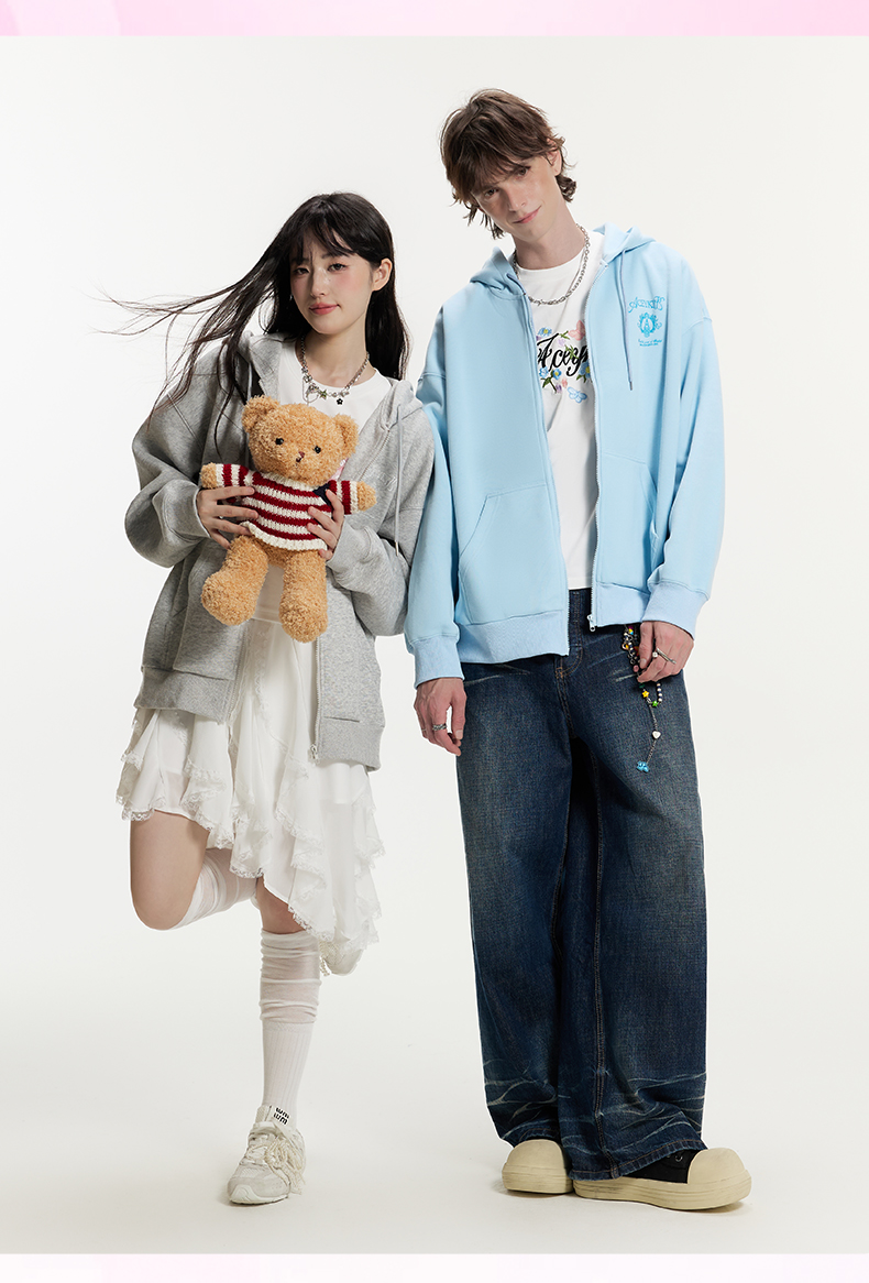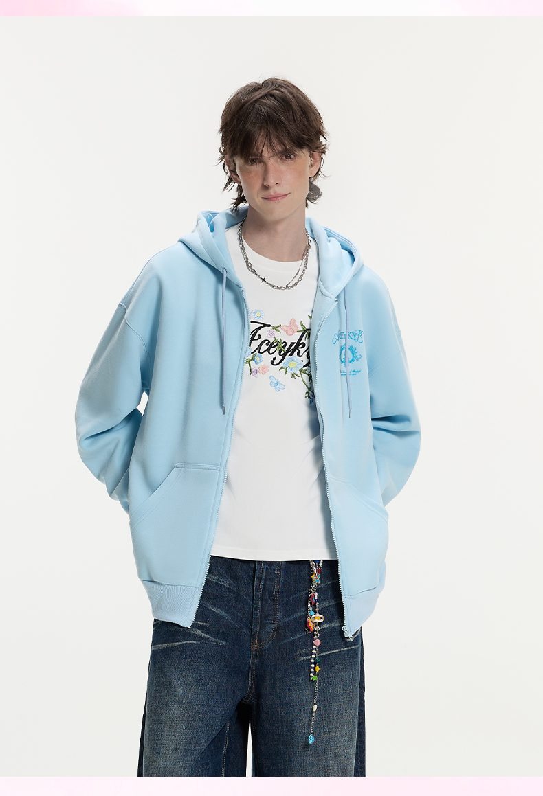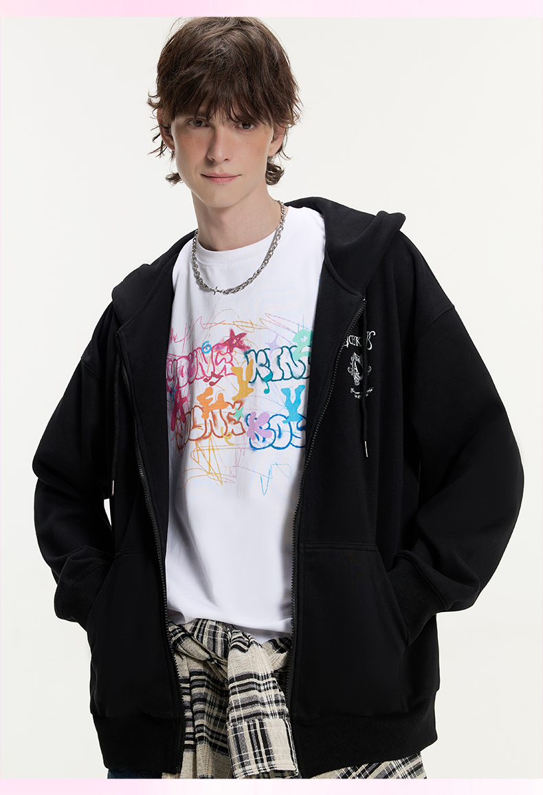 【薇你倾心七夕限定礼盒】YKYB黄子韬潮流连帽卫衣发泡印花拉链开衫外套秋Y53NWY004