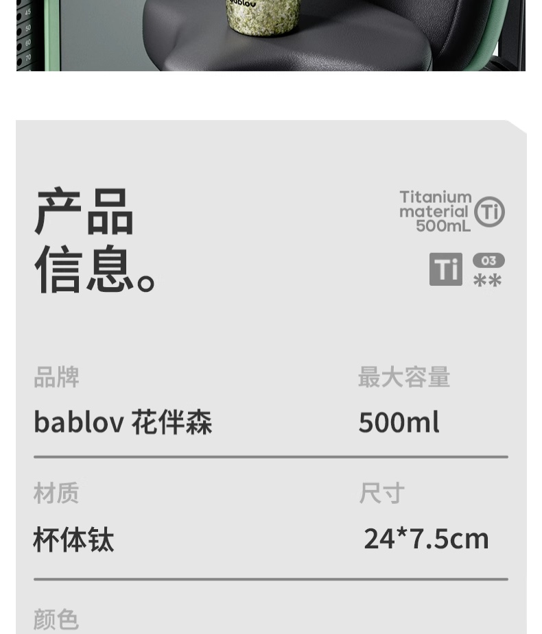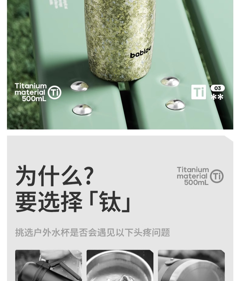bablov纯钛保温杯男士便携运动杯子女生随行钛杯户外骑行登山水杯