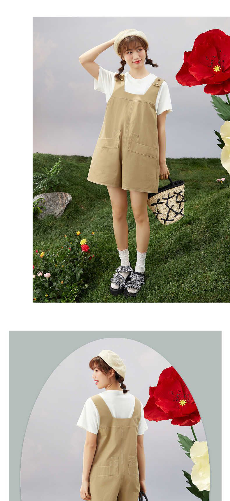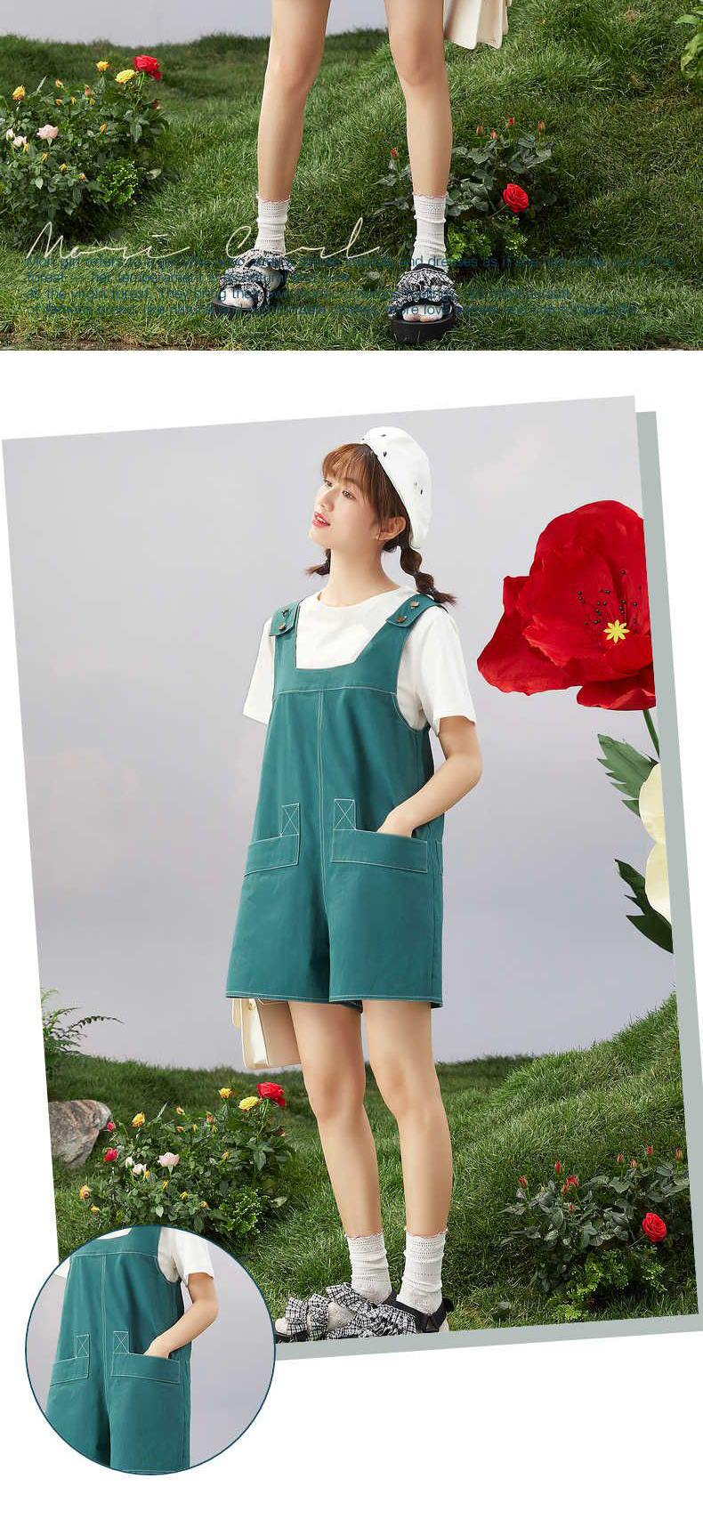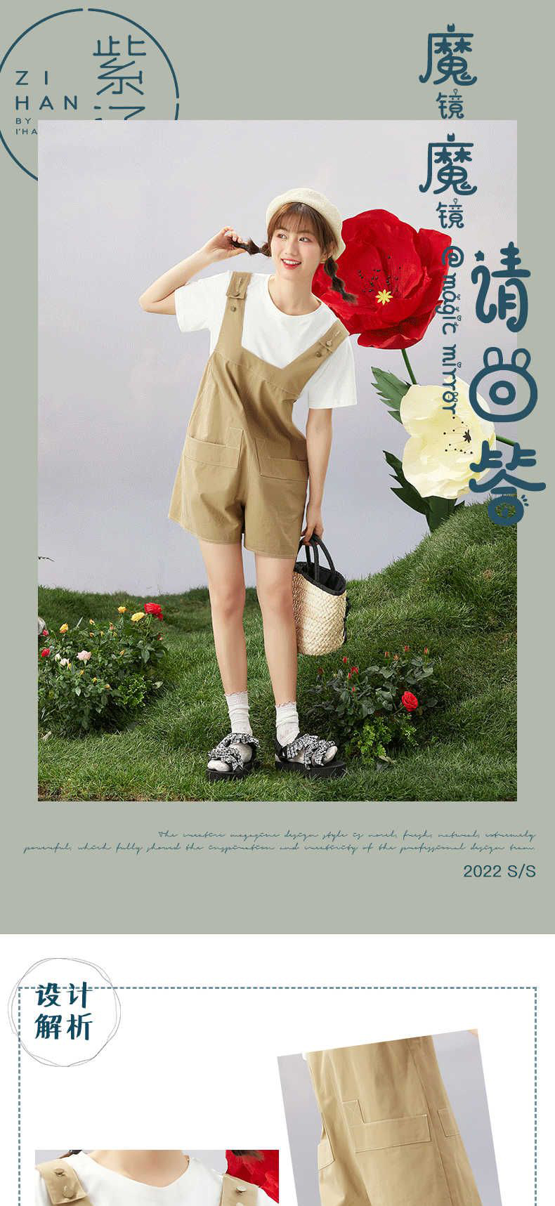 ZIHAN紫涵T恤短裤套装女2022夏季新款休闲可调节背带裤纯色短袖两件套03BS802