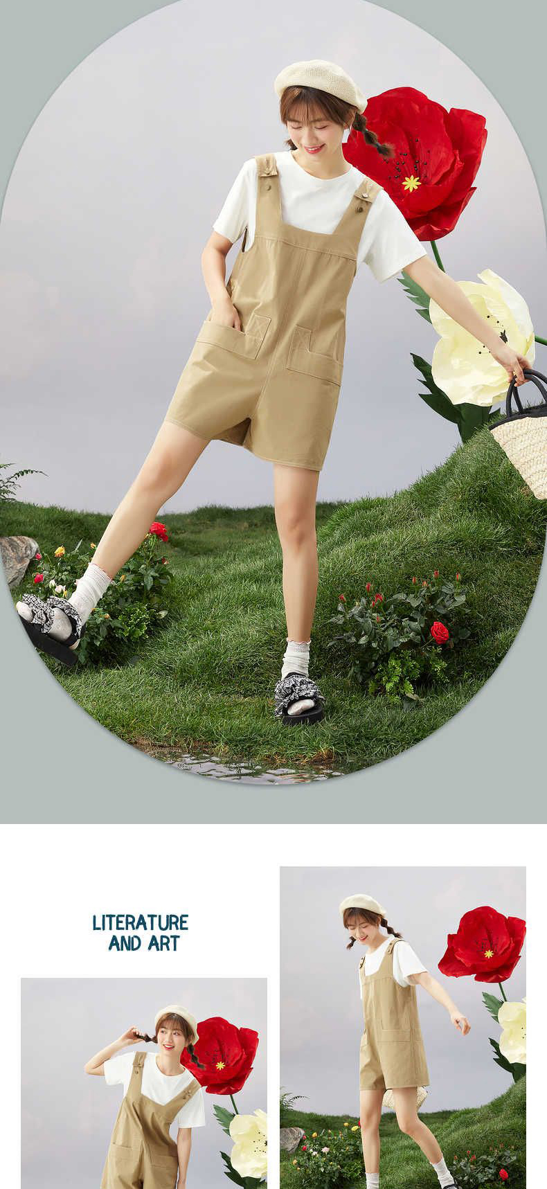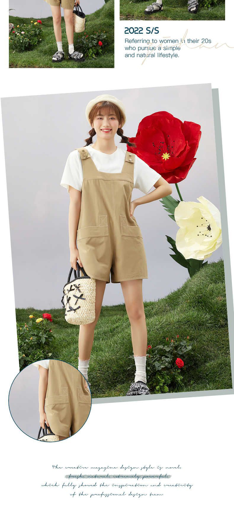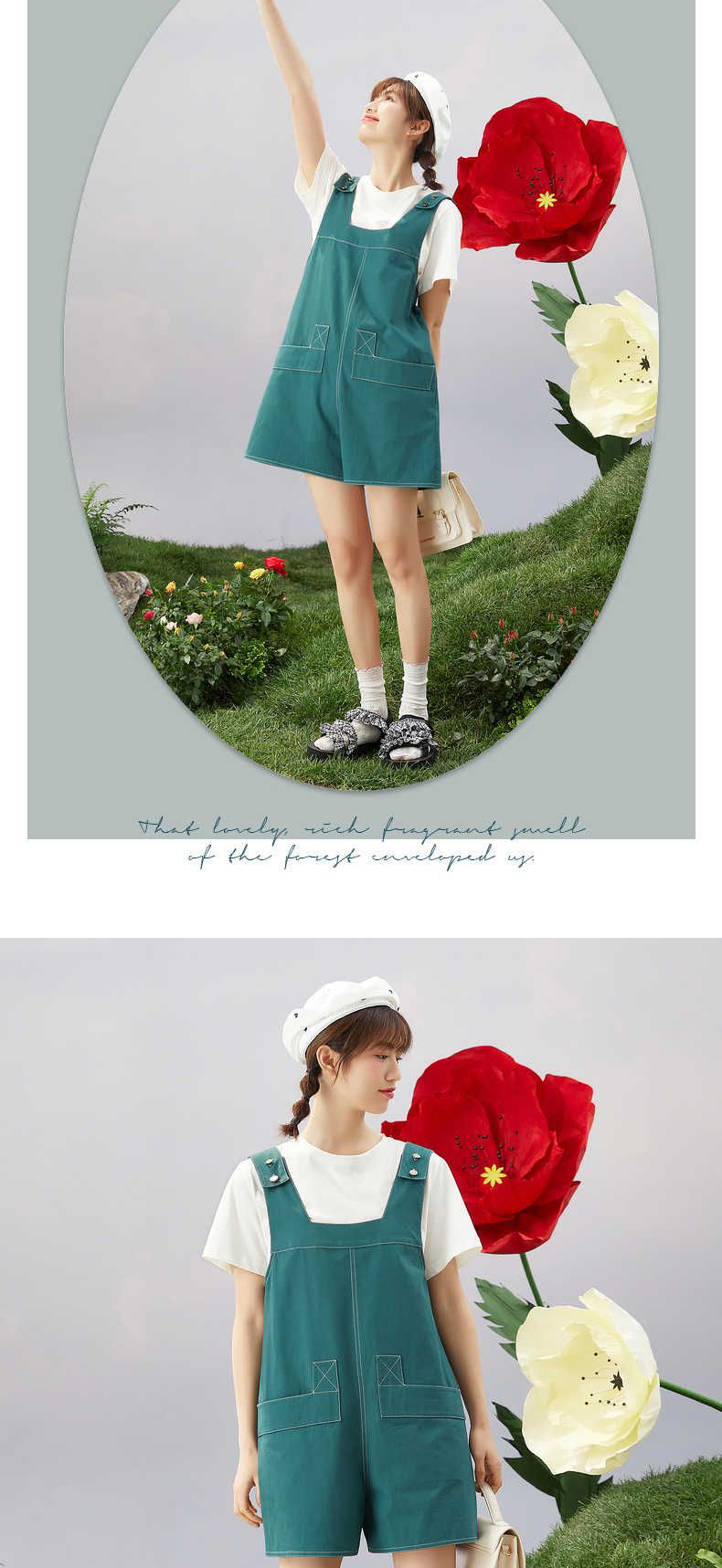 ZIHAN紫涵T恤短裤套装女2022夏季新款休闲可调节背带裤纯色短袖两件套03BS802