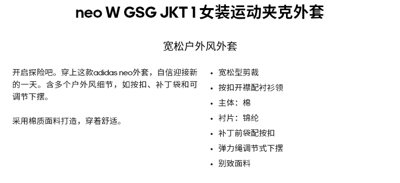 adidas阿迪达斯官网neo女装春季新款运动夹克外套HM7426