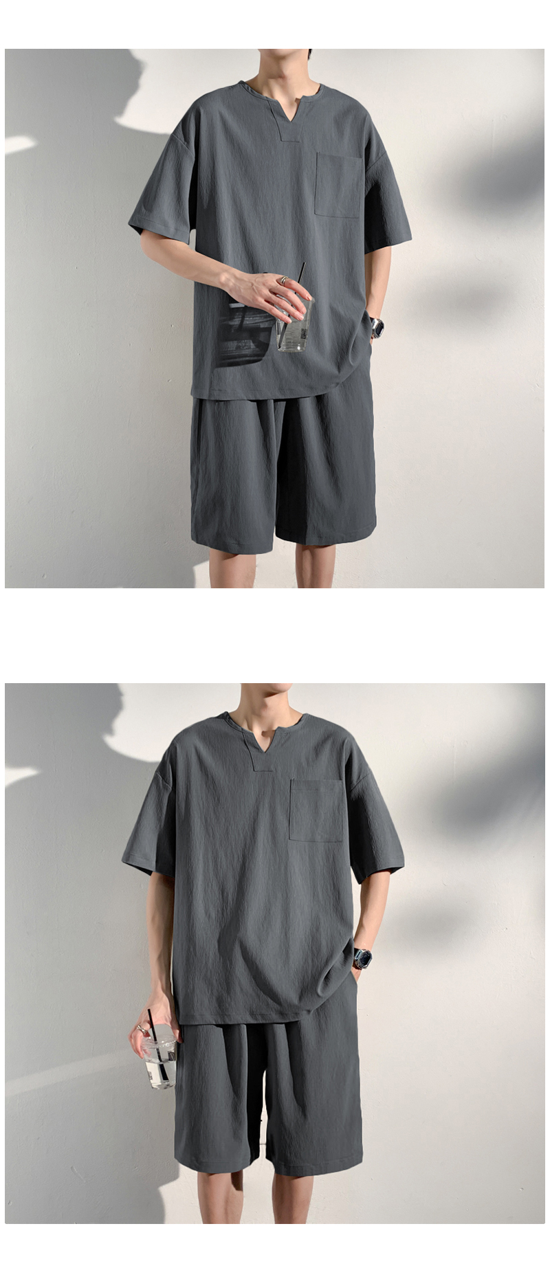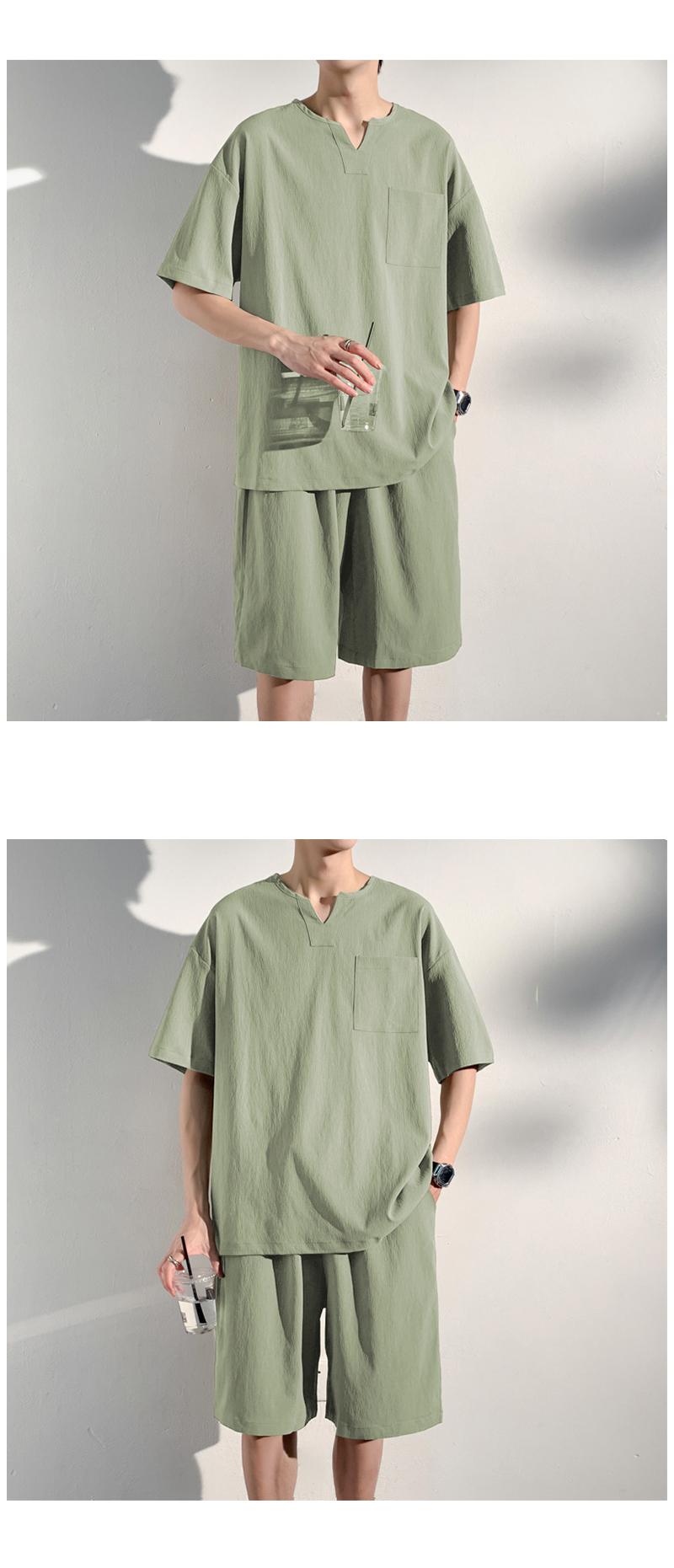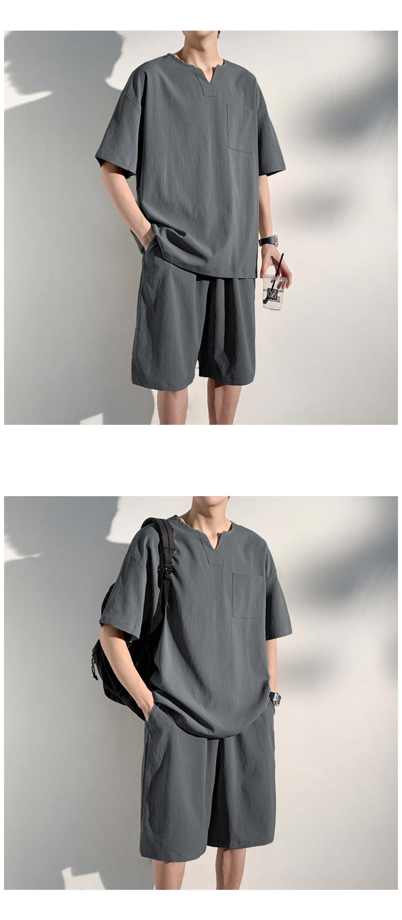 NOXELES夏季男士休闲冰丝套装,凉感科技纤维,穿在身上比裸奔更凉快【G】