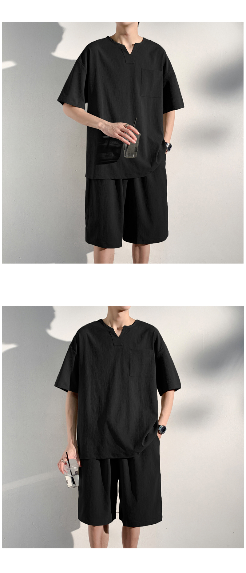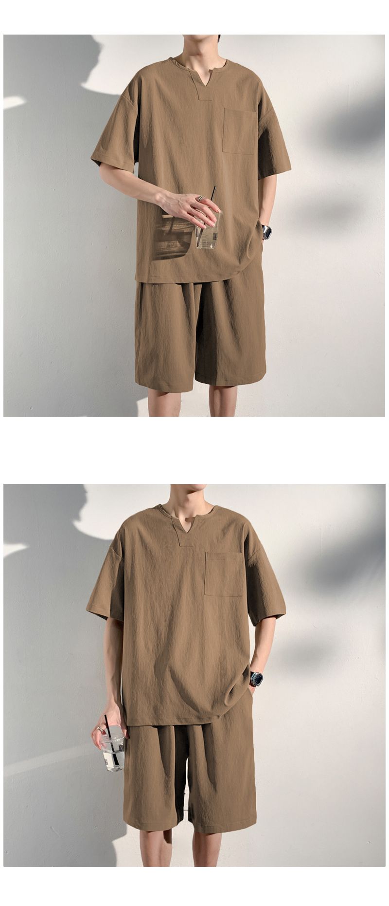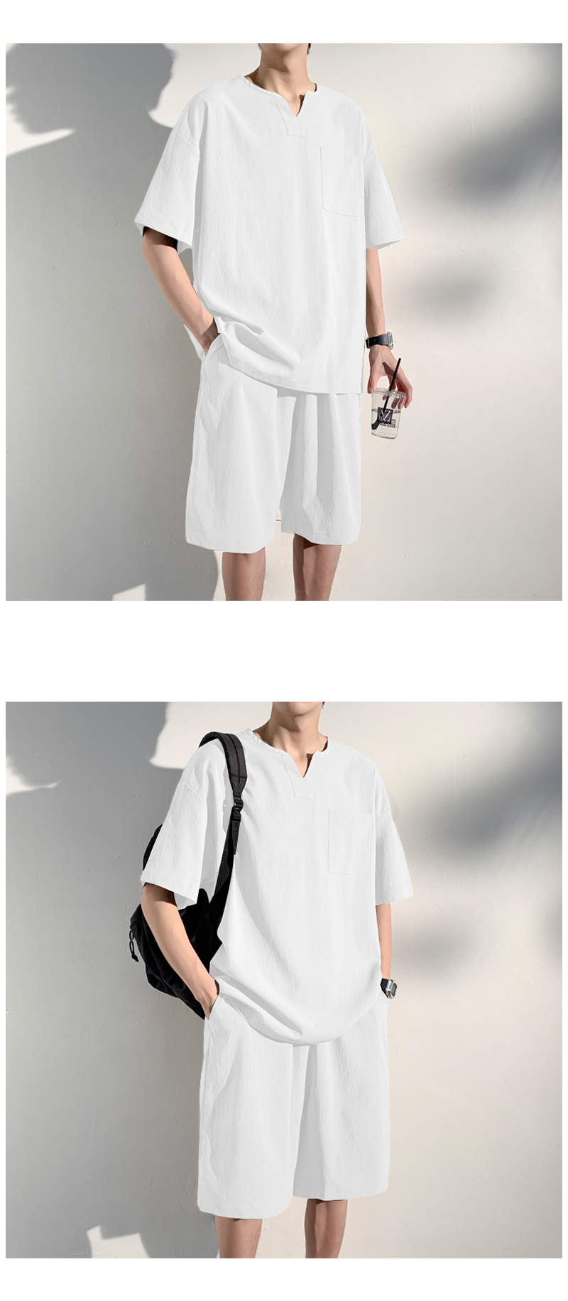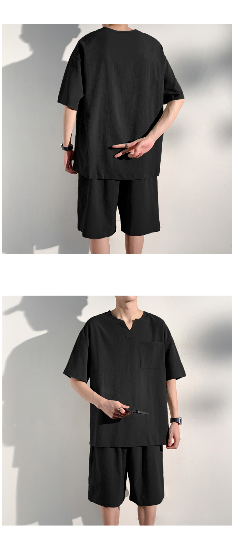 NOXELES夏季男士休闲冰丝套装,凉感科技纤维,穿在身上比裸奔更凉快【G】