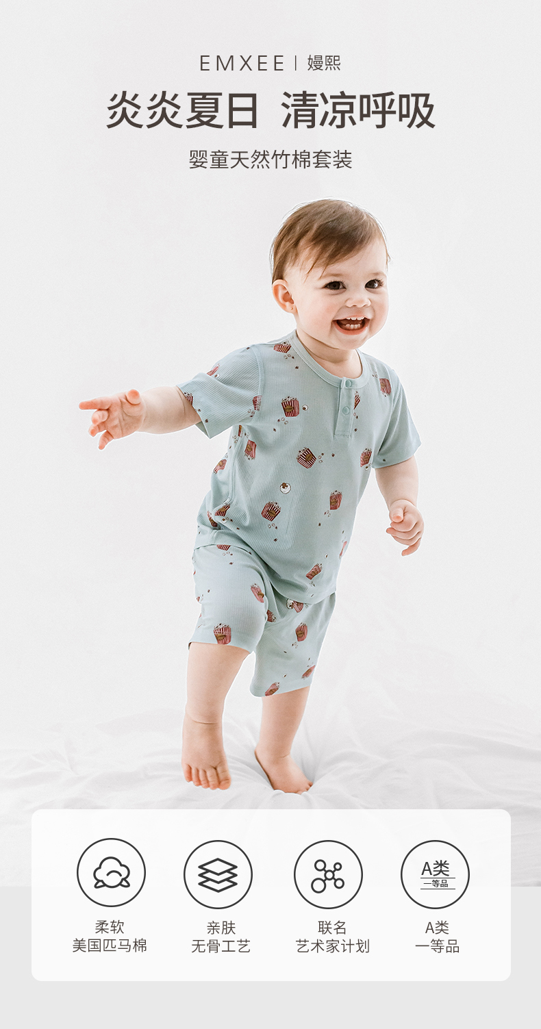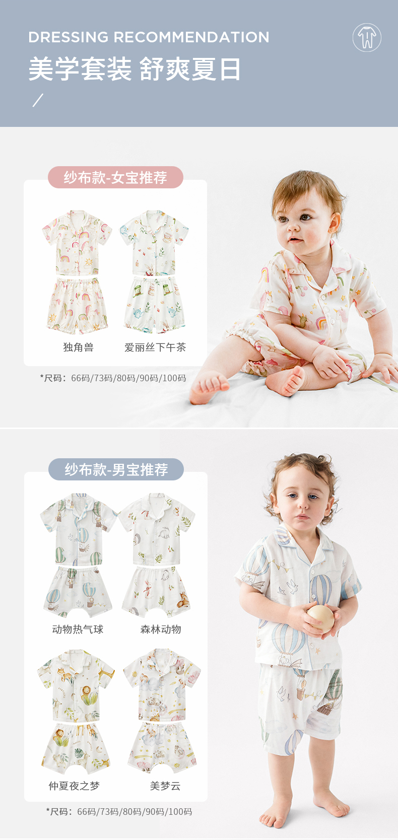【宝宝服饰】嫚熙宝宝家居服薄款短袖夏季婴儿内衣儿童睡衣套装