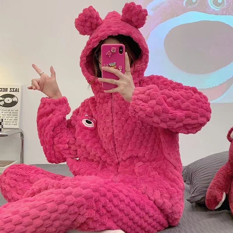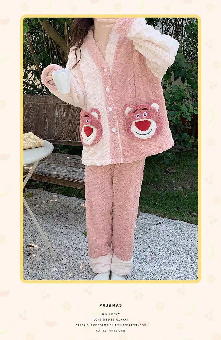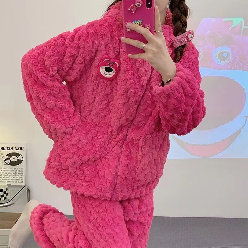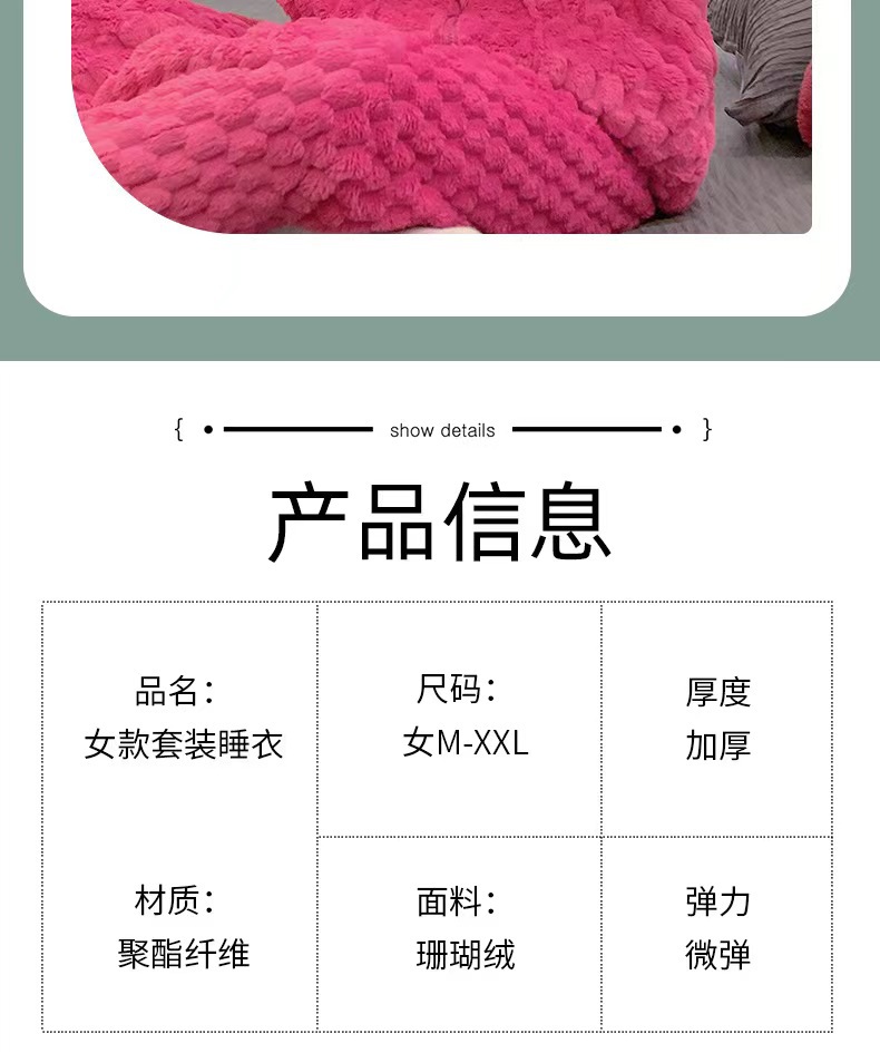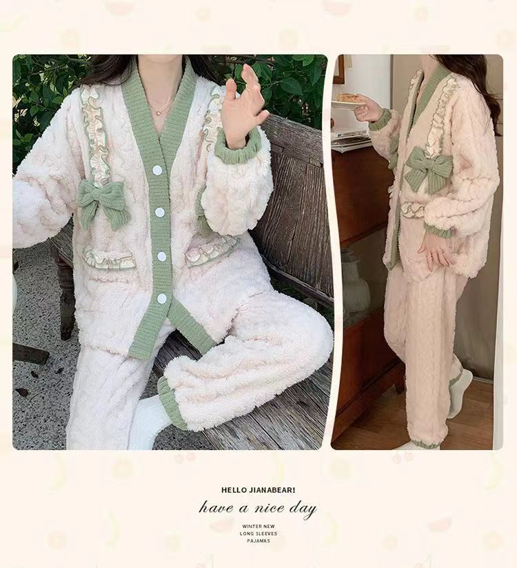 秋冬季珊瑚绒女睡衣加绒加厚法兰绒学生可外穿家居服套装简约休闲