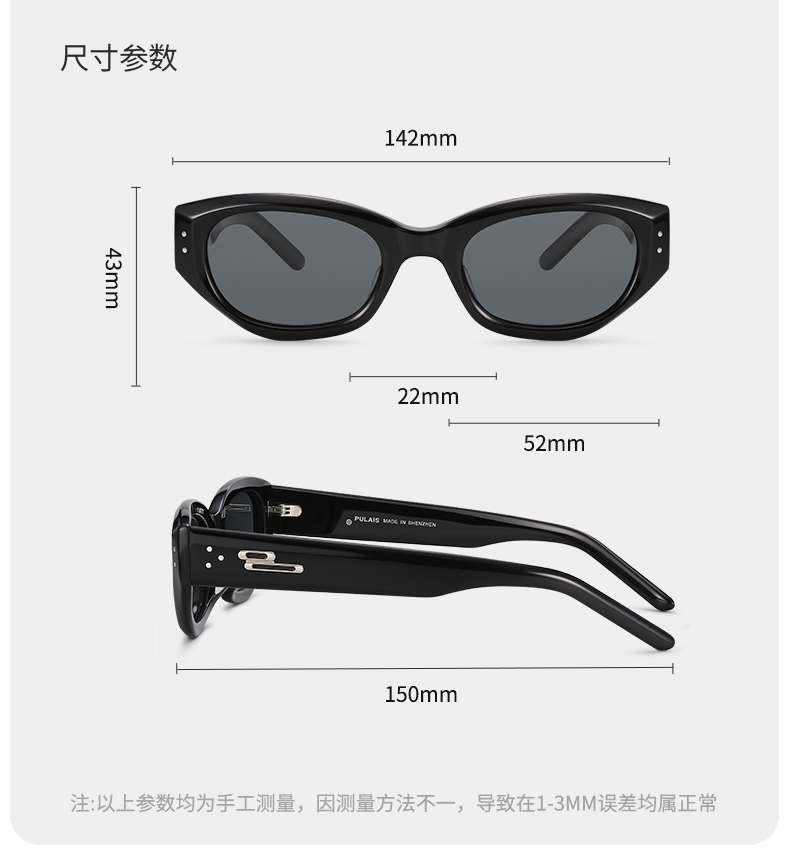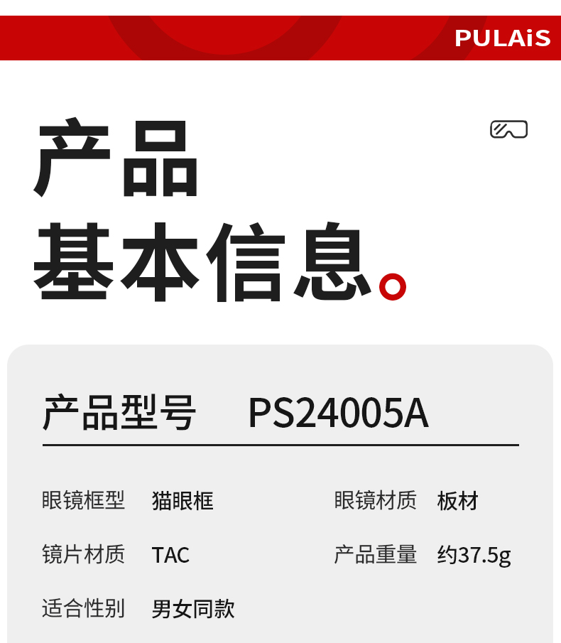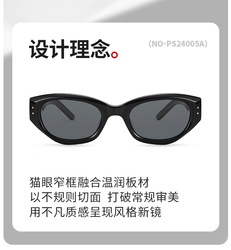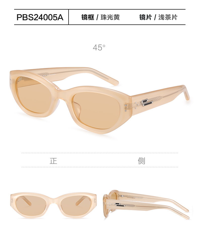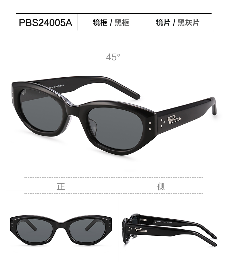 普莱斯新款太阳镜PBS24005A 不规则猫眼窄框 优质板材镜框 TAC偏光镜片 修颜宽边镜腿 男女同款 四色可选
