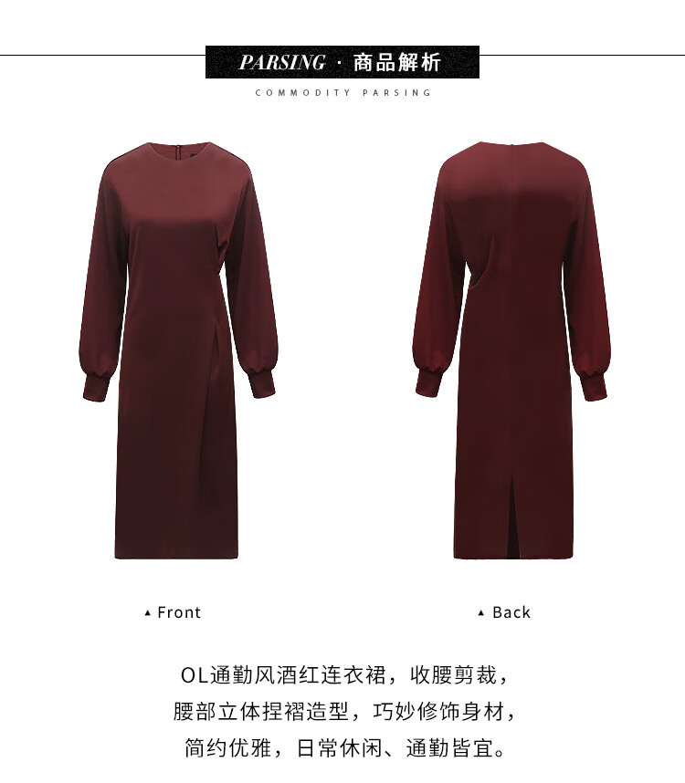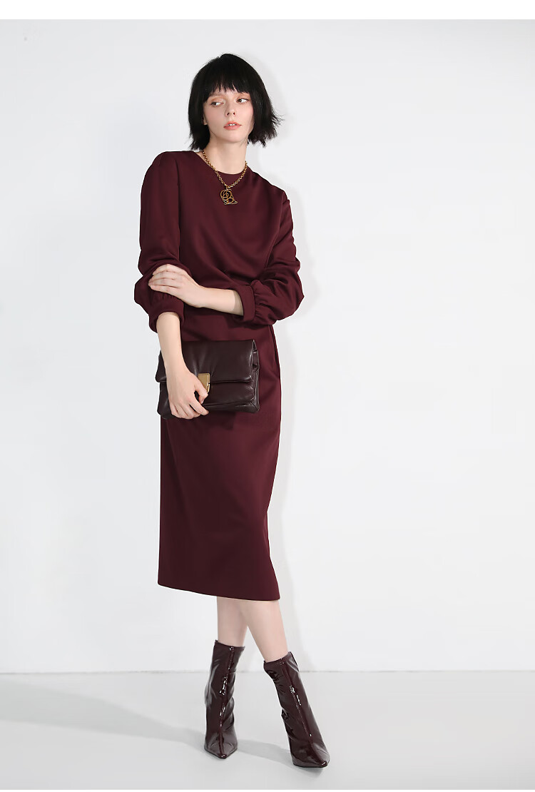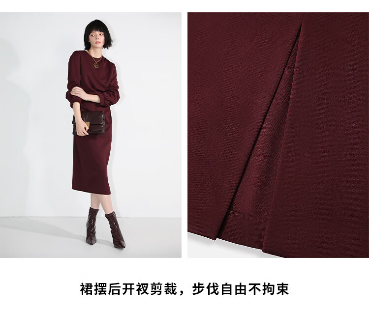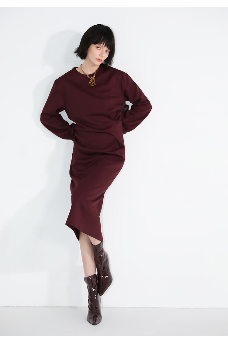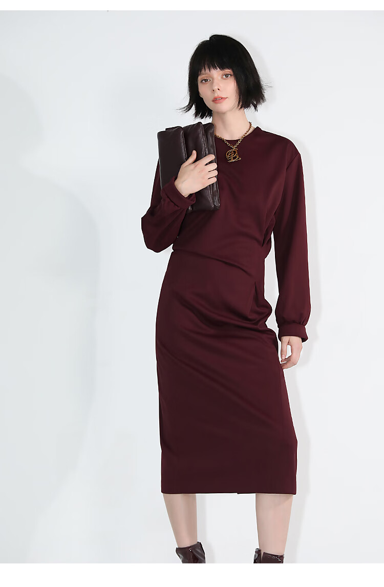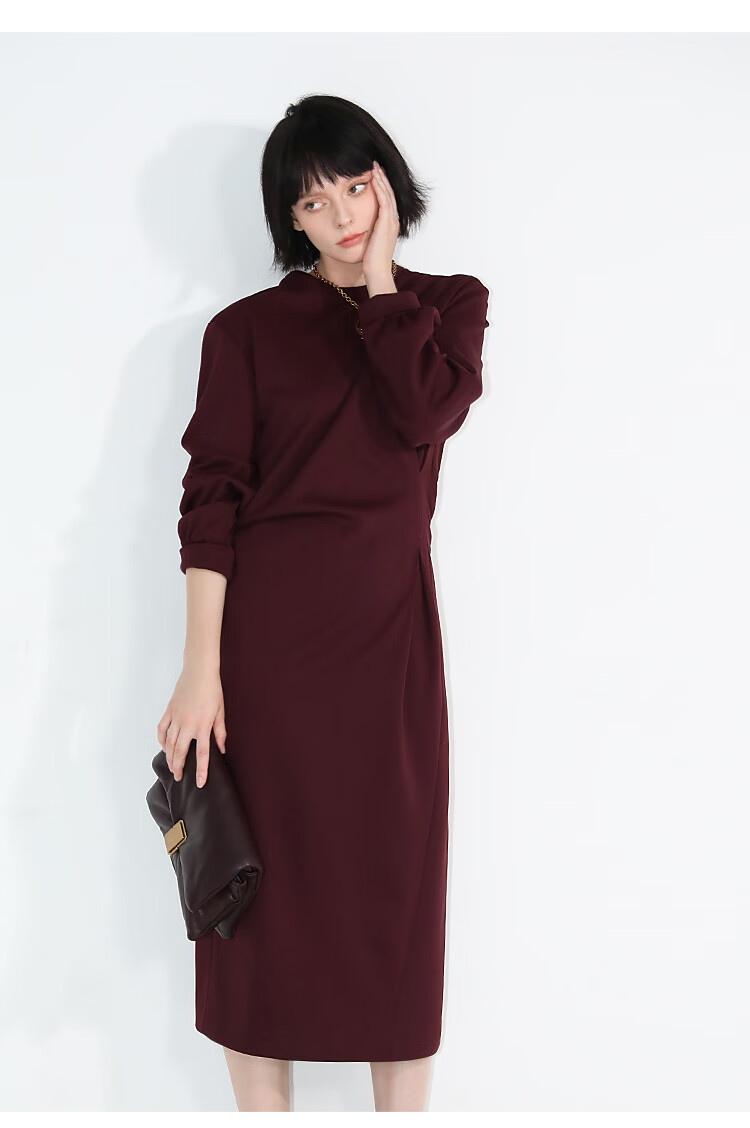 COCOBELLA[安哥拉红]设计感立体捏褶连衣裙女秋冬气质长裙FR935