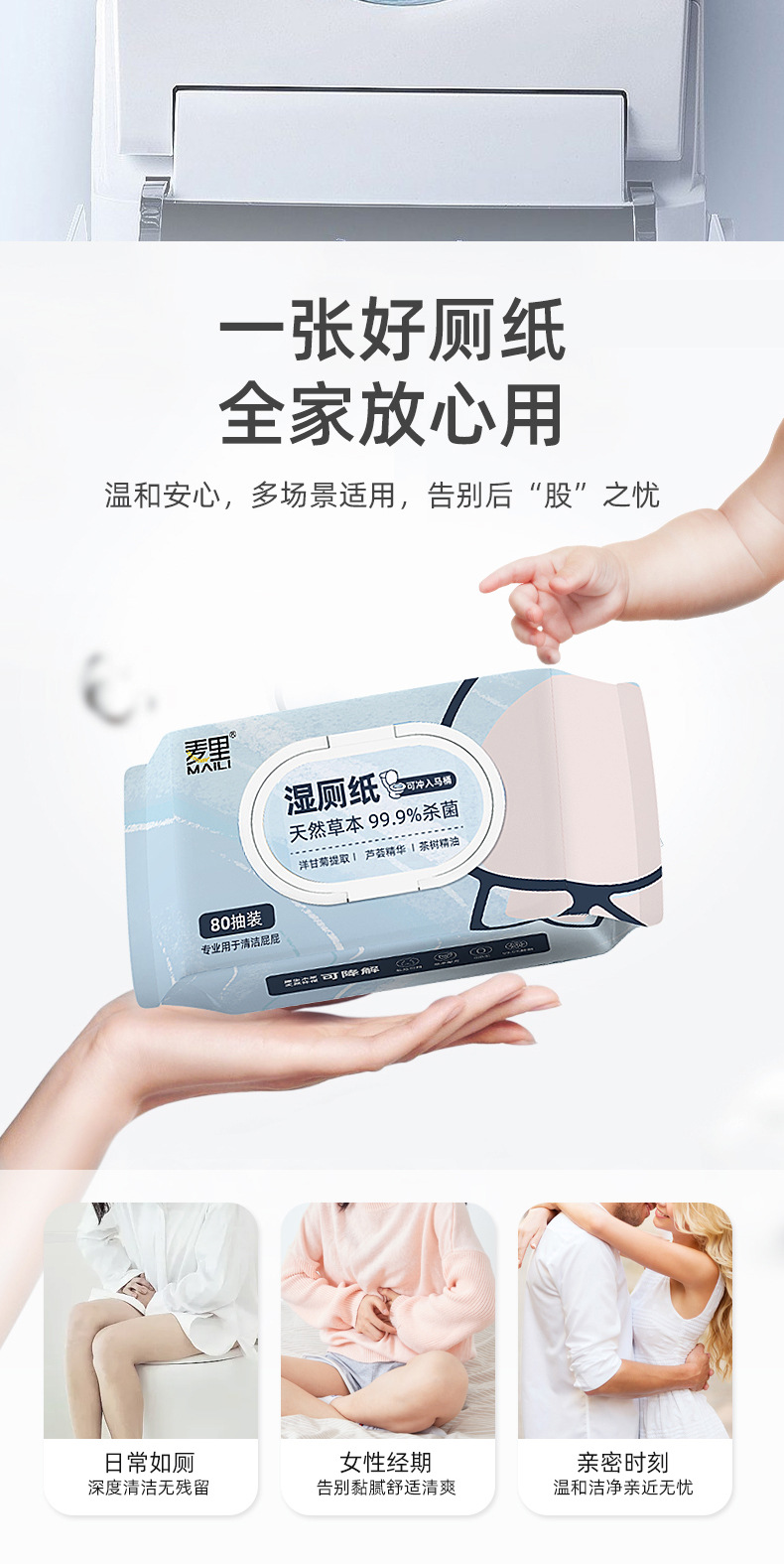「80抽带盖装」湿厕纸80抽带盖大包便携装 孕妇儿童居家日用擦拭可冲湿厕巾