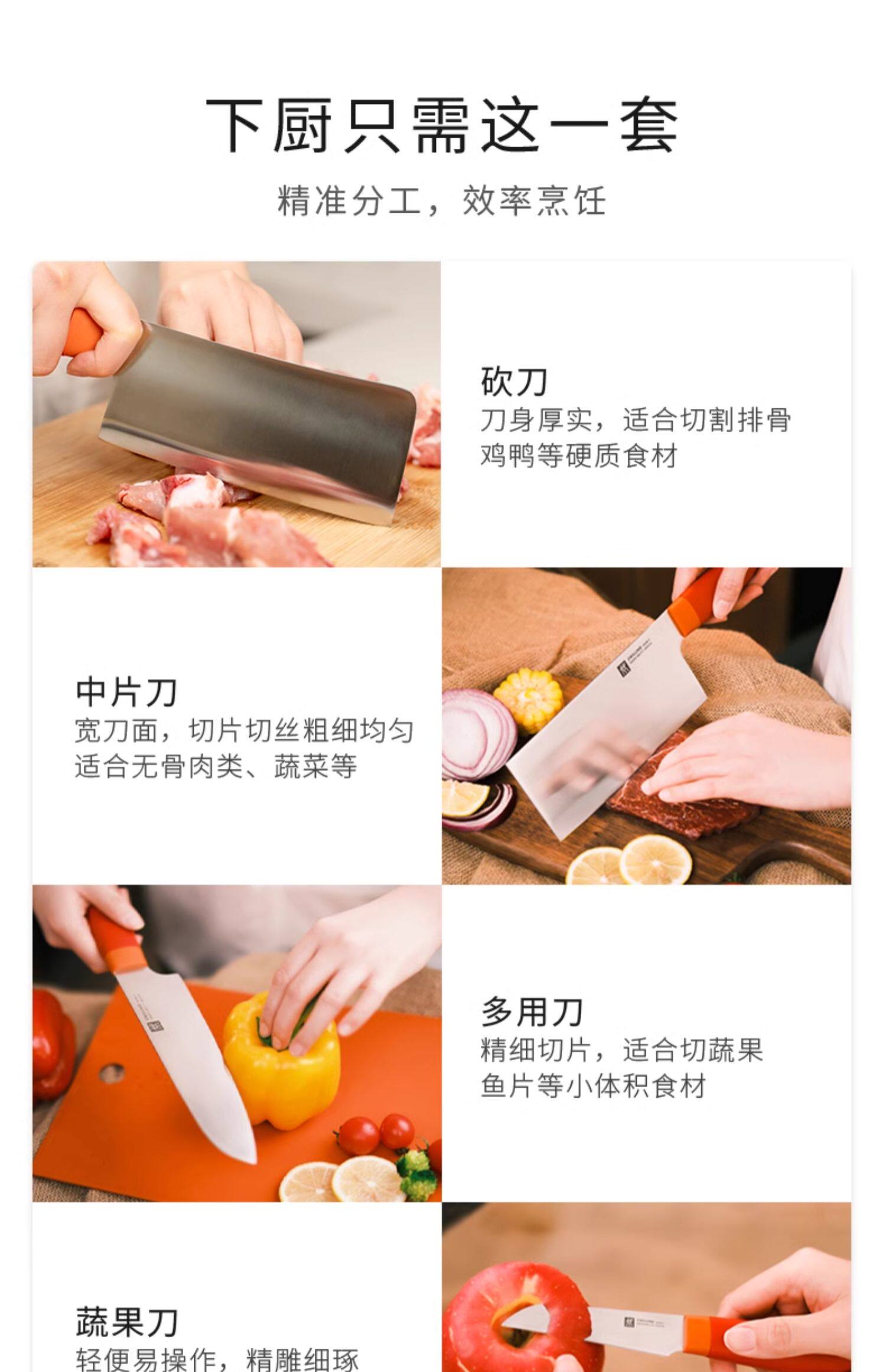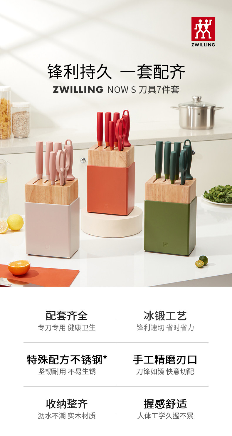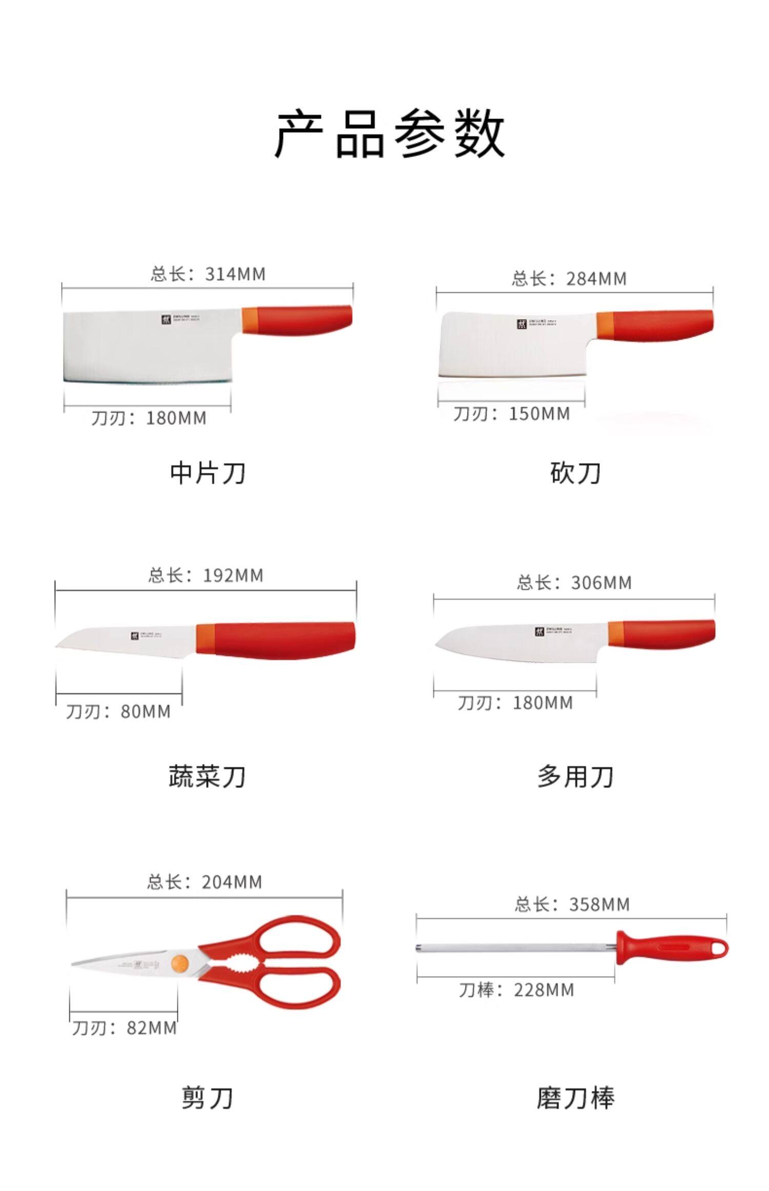 【双立人刀具7件套】德国双立人NOW S刀具7件套不锈钢中式菜刀砍刀多用刀蔬果刀剪刀